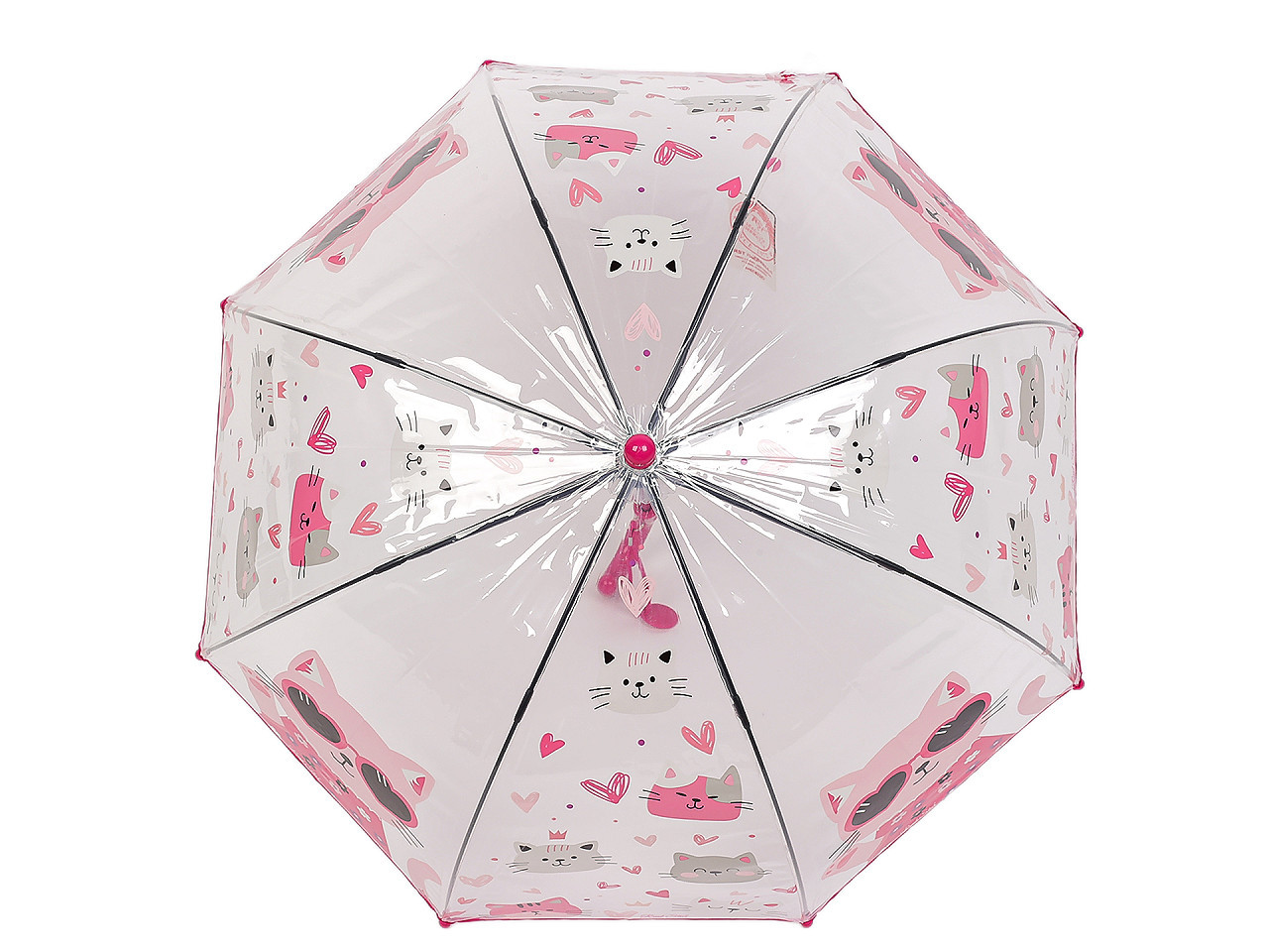 Dětský průhledný vystřelovací deštník s motivem koček – hravá ochrana před deštěm. Hledáte praktický a zároveň veselý deštník pro své dítě? Tento dětský průhledný vystřelovací deštník s roztomilým motivem koček je ideálním společníkem do deštivého počasí. Díky průhlednému materiálu má dítě perfektní přehled o okolí, zatímco hluboká konstrukce (30 cm) poskytuje spolehlivou ochranu před větrem i deštěm.