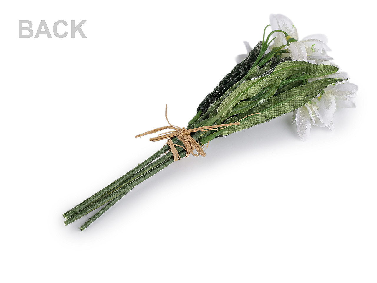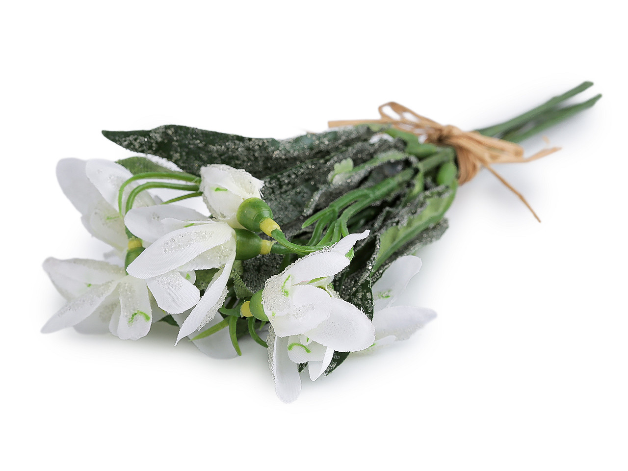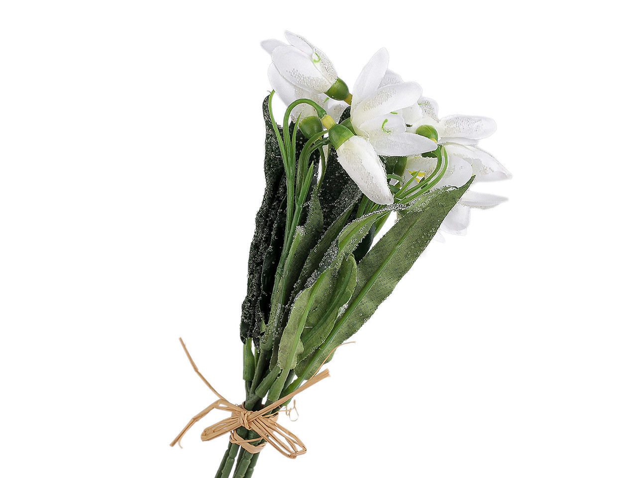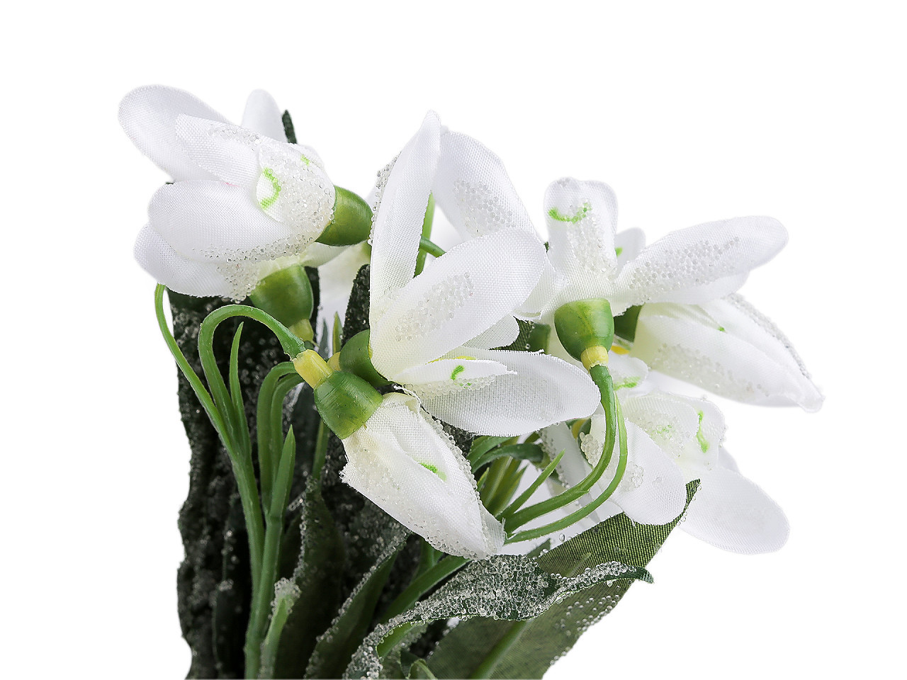 Umělé sněženky s efektem námrazy – dekorace pro vázu i aranžmá. Dodajte svému interiéru nádech jara s elegantními umělými sněženkami, které díky jemným transparentním kuličkám působí jako pokryté ranní námrazou. Svazek sněženek se perfektně hodí do samostatné vázy, do květinových vazeb, věnců i kreativních jarních aranžmá. Ohebné stonky s drátkem uvnitř umožňují snadné tvarování podle vašich představ. Tyto realistické sněženky z kvalitního materiálu jsou ideální volbou pro dlouhodobou dekoraci bez nároků na údržbu.