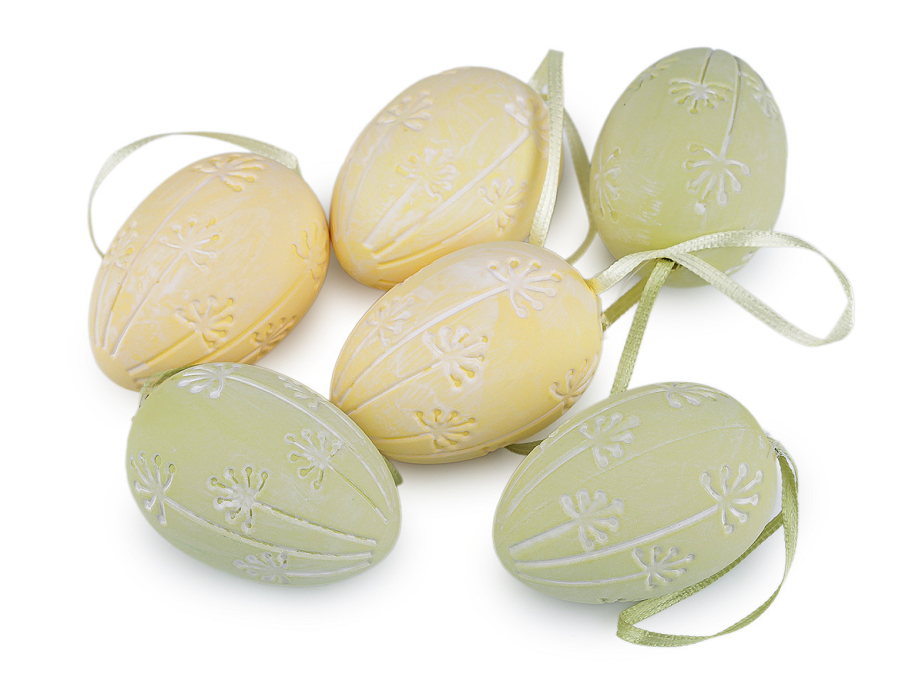 Velikonoční vajíčka k zavěšení s jemně vyrytým motivem. Ozdobte svůj domov originálními velikonočními vajíčky k zavěšení, která díky praktickému poutku snadno umístíte na větvičky, věnce nebo do jarních dekorací. Precizní vyrytý motiv dodá vajíčkům elegantní vzhled a podtrhne kouzlo sváteční výzdoby. Tyto dekorace vnesou do interiéru svěží jarní energii a veselou atmosféru, ideální pro velikonoční období.