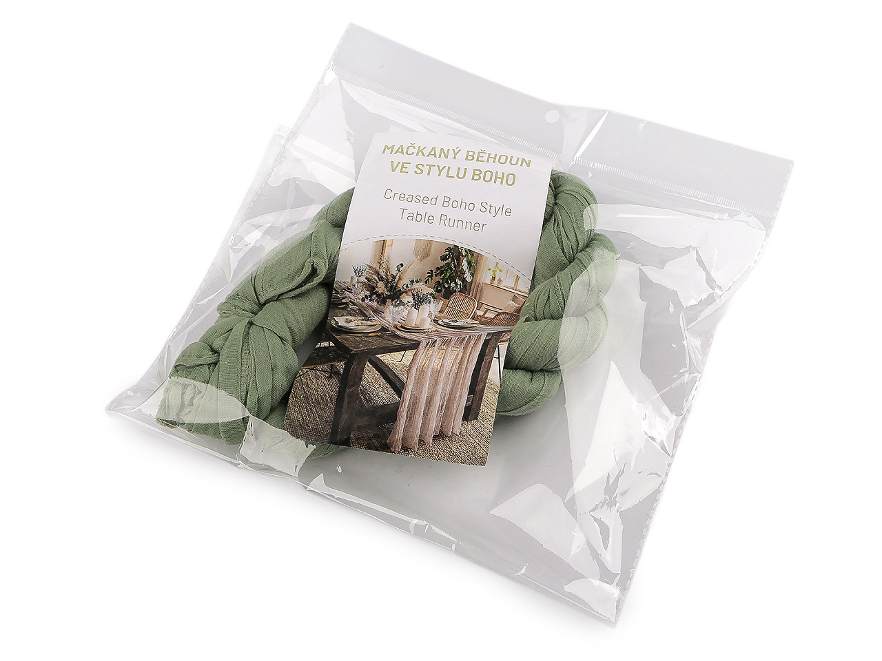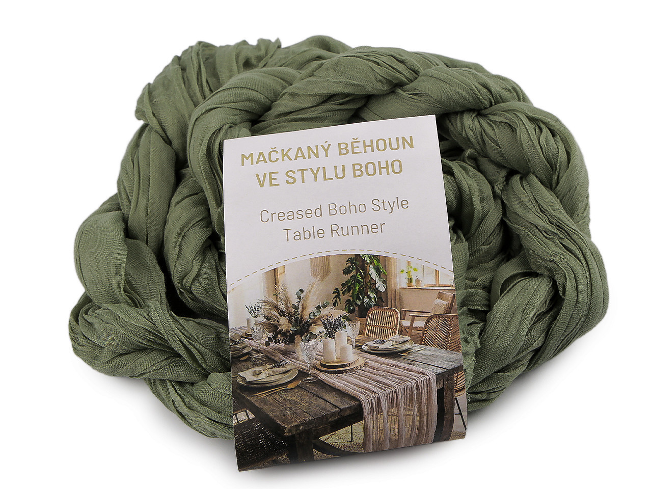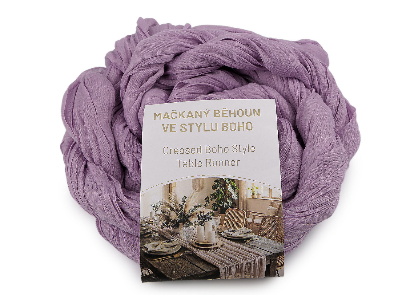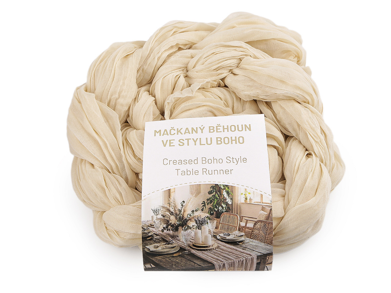 Mačkaný běhoun ve stylu boho – elegantní dekorace pro svatby a oslavy. Dodáte svému stolu šmrnc a lehkost s naším mačkaným běhounem v oblíbeném boho stylu. Tento dekorativní prvek je ideální pro svatební tabule, narozeninové oslavy, zahradní party i romantické večeře. Jemně průsvitný materiál s přírodními tóny působí vzdušně a harmonicky, perfektně ladí s přírodními doplňky i rustikálním nádobím.