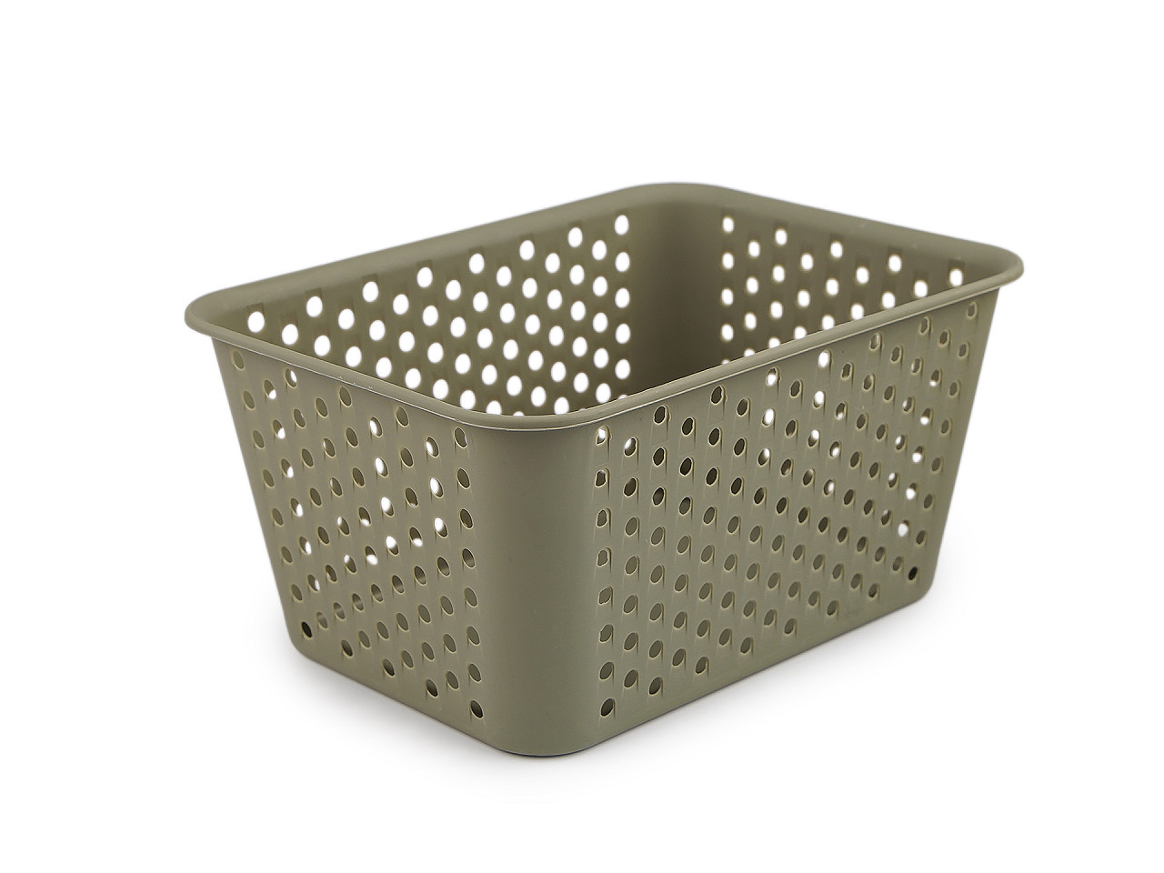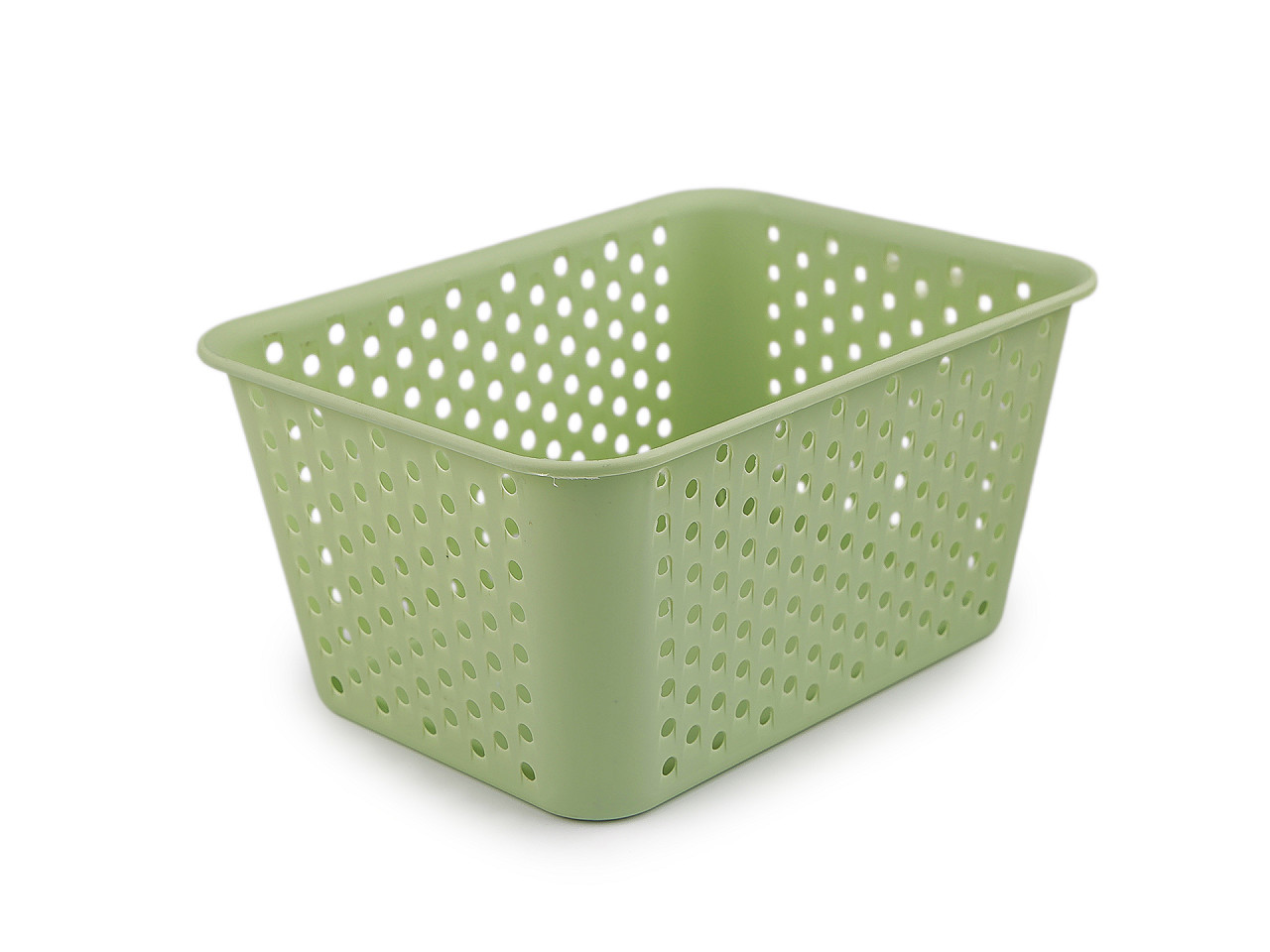Jemná perforace nejen umožňuje cirkulaci vzduchu, ale také poskytuje okamžný přehled o obsahu košíku. Vhodný je i pro prodejny s drobným sortimentem, jako je bižuterie, korálky nebo kreativní potřeby.