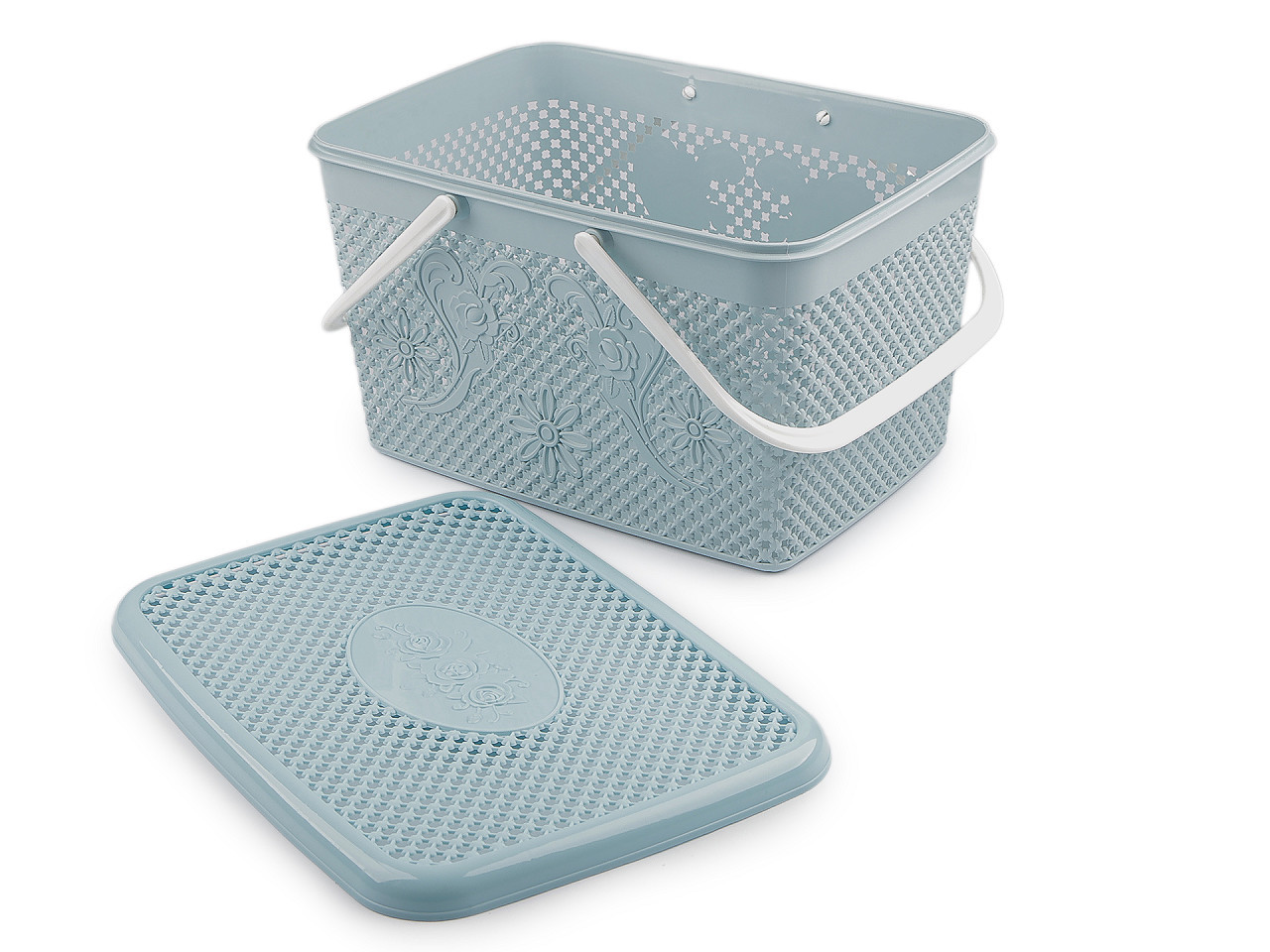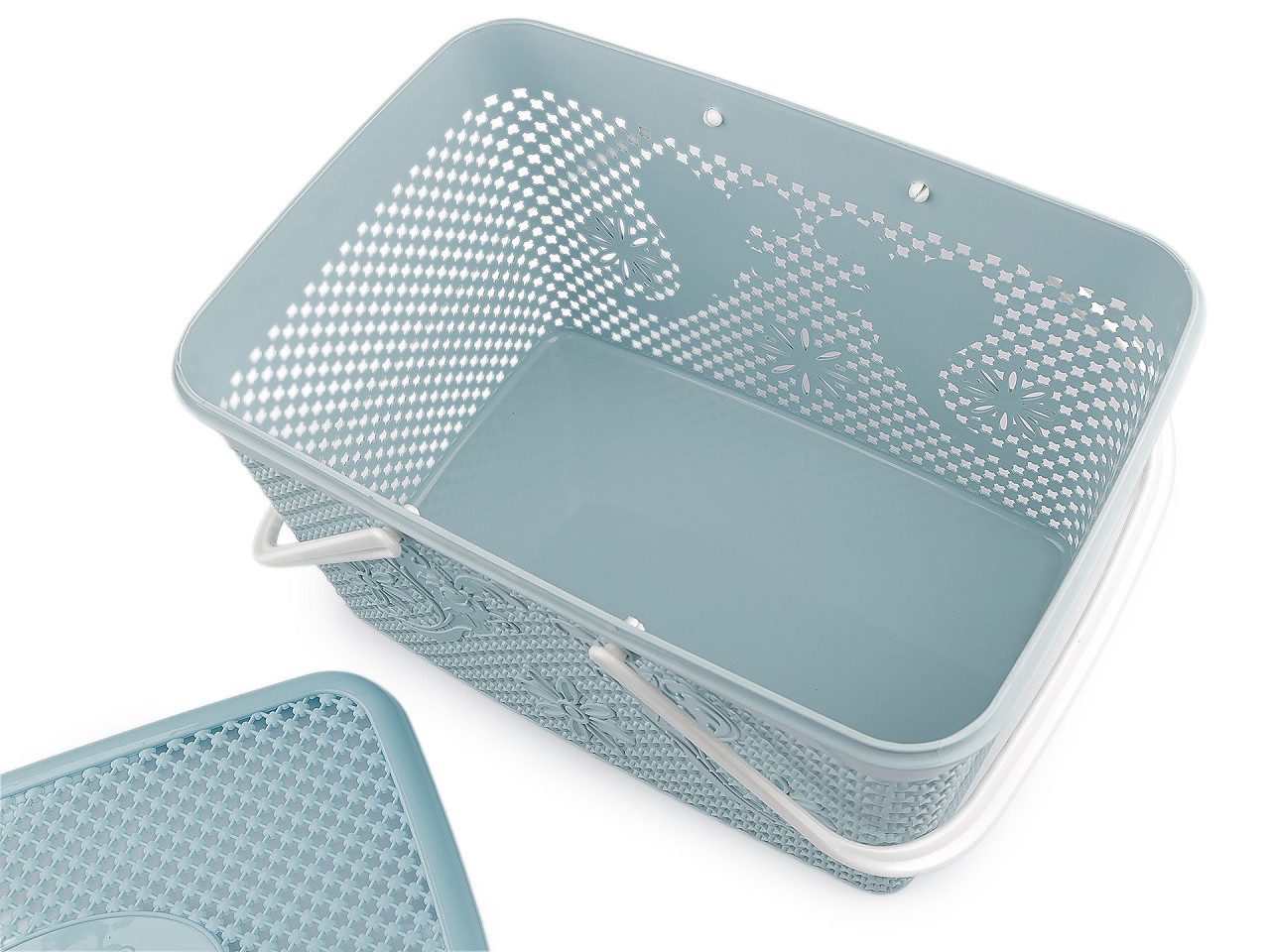 Plastový košík s víkem – praktické řešení pro přehledné ukládání. Udržujte svůj domov dokonale uspořádaný s plastovým košíkem s víkem. Tento univerzální úložný box chrání obsah před prachem a nečistotami, zatímco jemné perforace zajišťují optimální proudění vzduchu a umožňují snadnou kontrolu uložených věcí. Lehké provedení a pohodlné přenášení oceníte při každém přesunu.