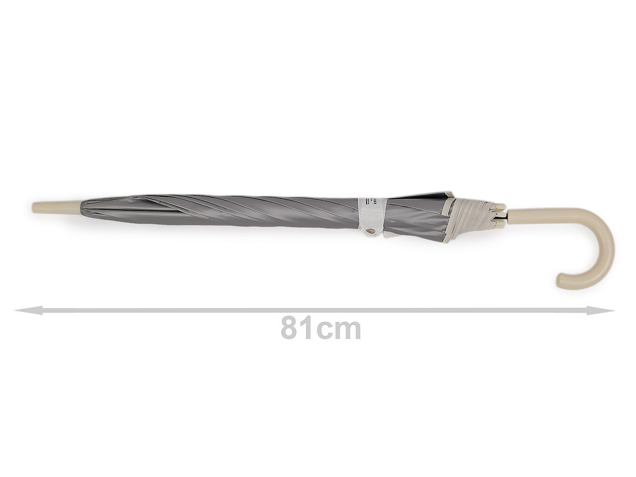 Praktická klasická tyč je zakončena pevnou rukojetí pro pohodlné držení. Uvnitř je deštník elegantně černý, zatímco vnější strana působí jemným a nadčasovým dojmem. Díky integrovanému UV filtru vás spolehlivě ochrání i při slunečném počasí. Hloubka 27 cm poskytuje dostatečné krytí a komfort.
