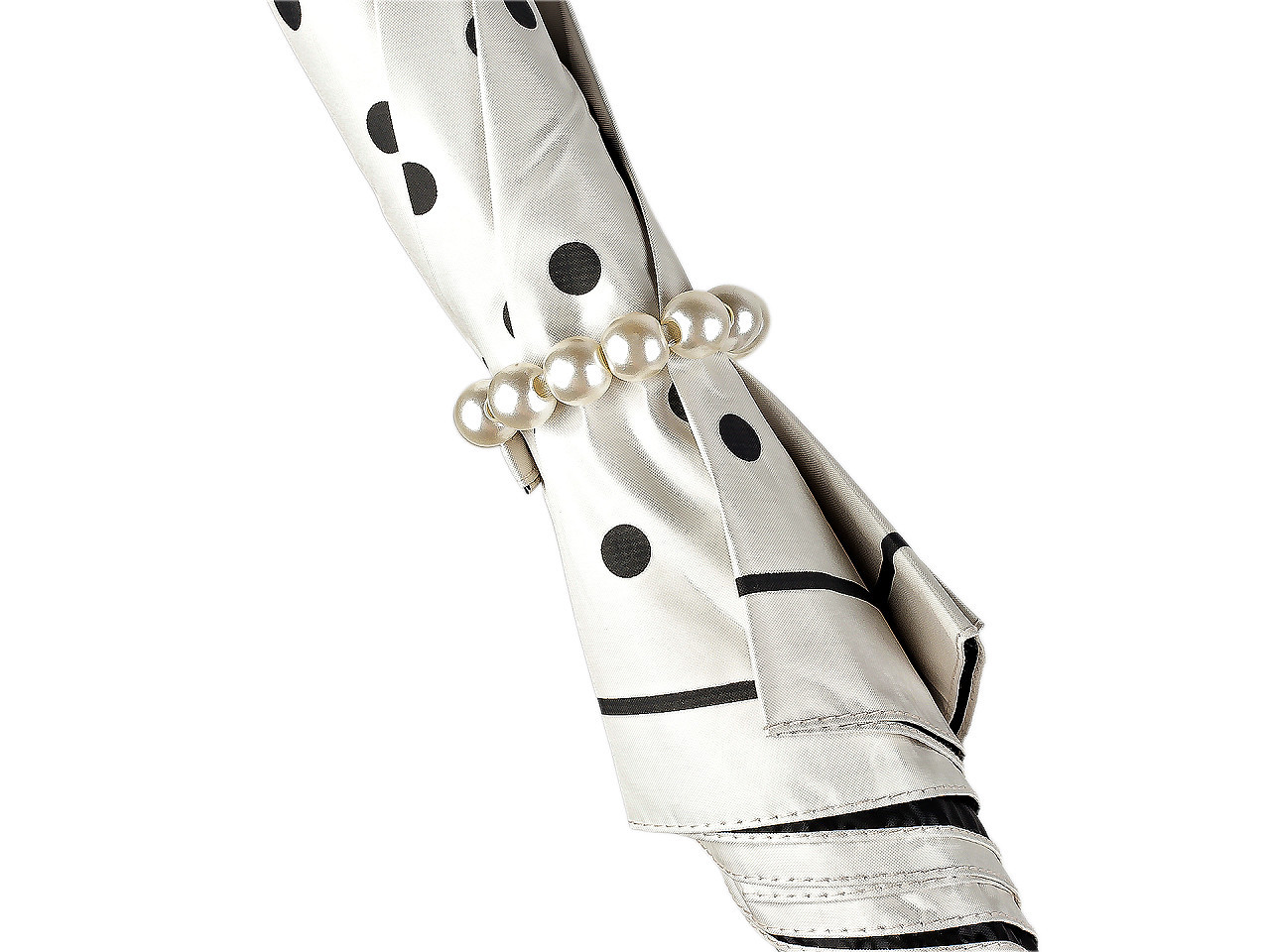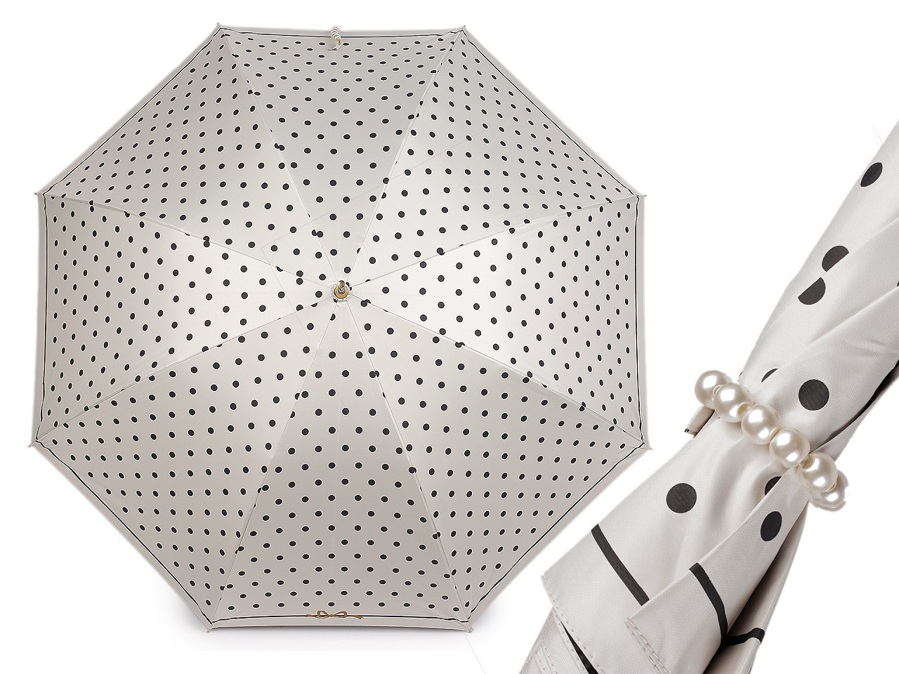 - Dámský vystřelovací deštník s puntíky a perlovým zapínáním