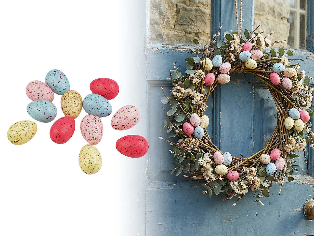 Velikonoční mini vajíčka – pastelový mix pro vaše jarní dekorace. Oživte svůj domov jemnými pastelovými barvami s našimi velikonočními mini vajíčky. Plastová vajíčka inspirovaná křepelčími vzory jsou ideální pro tvorbu svěžích jarních a velikonočních aranžmá. Díky malé dírce ve spodní části je snadno připevníte na věnce, závěsy, či jiné dekorace, nebo je jednoduše nasypete do misky jako stylovou výplň. Perfektní pro kreativní tvoření, které dodá vašemu interiéru kouzlo Velikonoc.