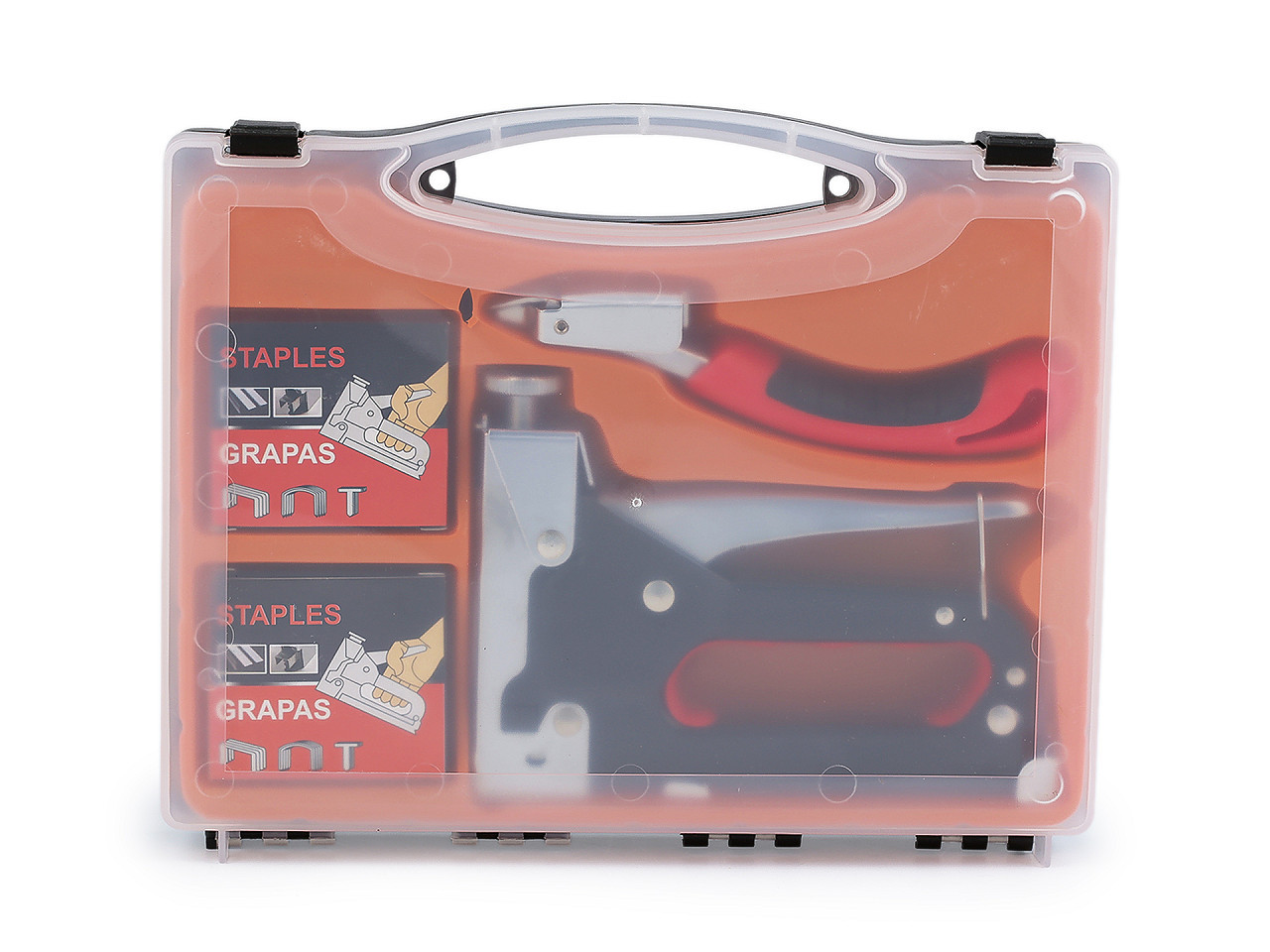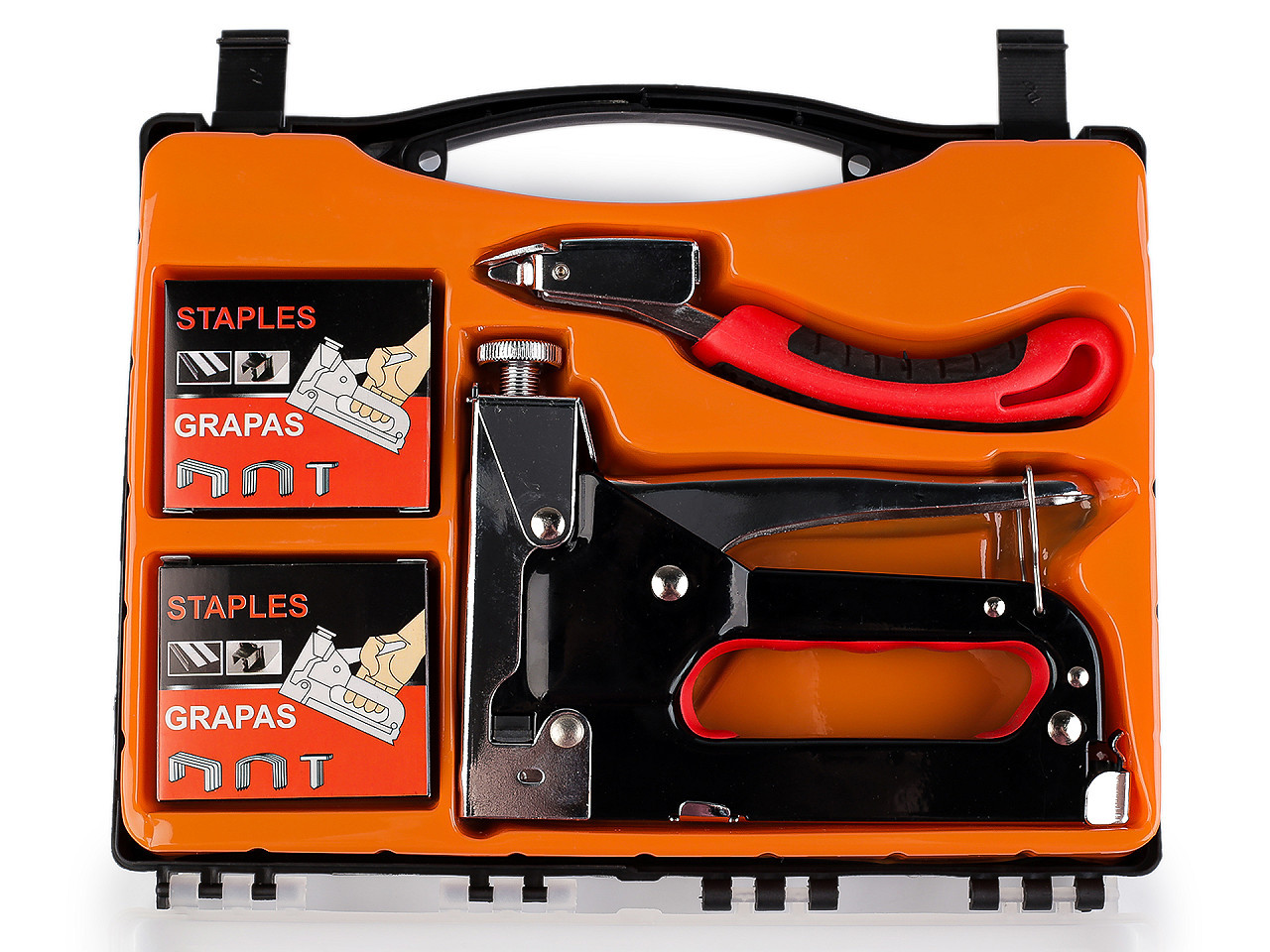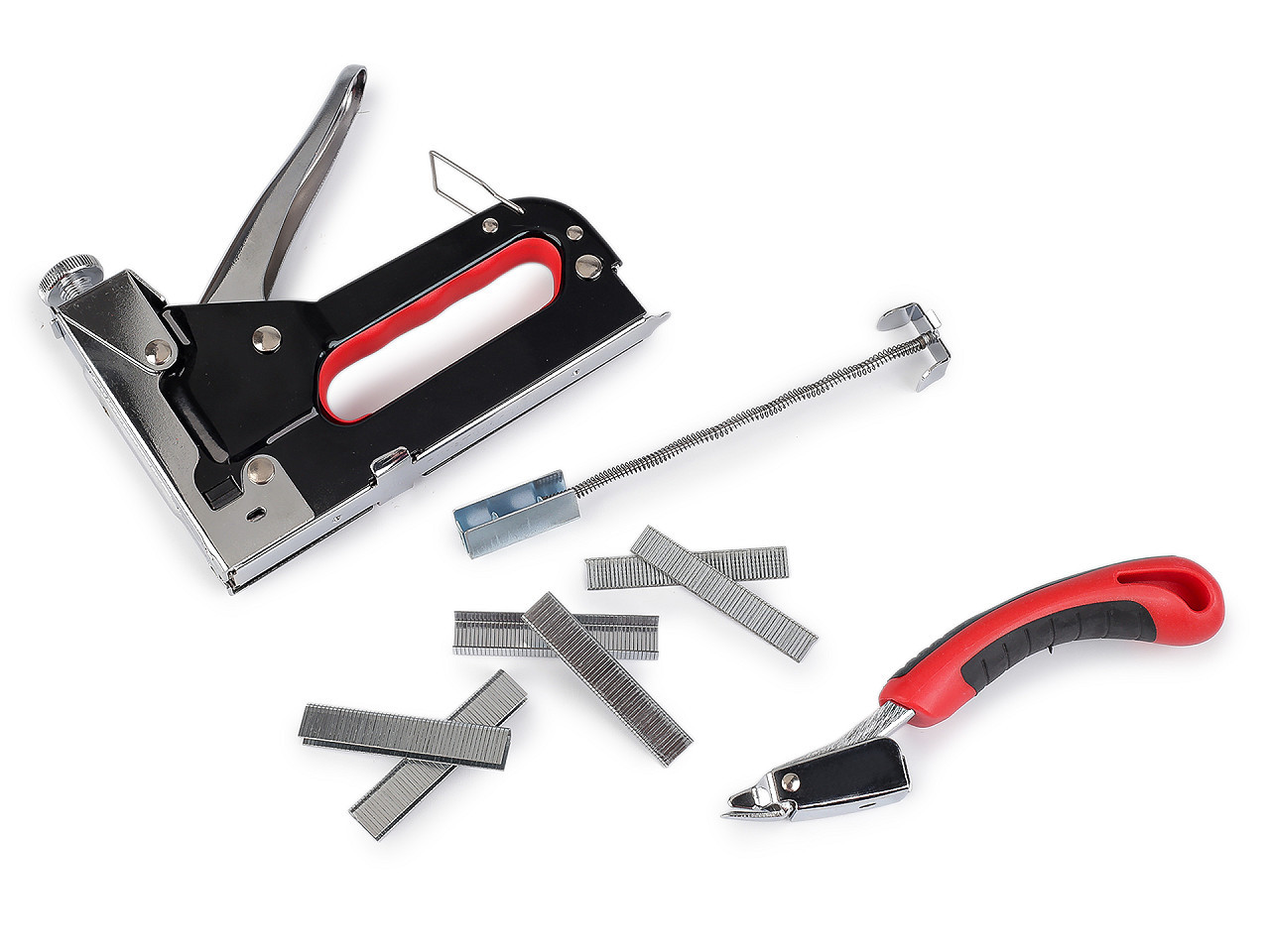 Čalounická sponkovačka s příslušenstvím – univerzální nástroj pro domácí i profesionální použití. Objevte kvalitní čalounickou sponkovačku, která vám usnadní práci při čalounění, opravách nábytku i kreativních projektech. Robustní kovová konstrukce a ergonomicky tvarovaná rukojeť zajišťují pohodlné a bezpečné používání i při dlouhodobé práci.