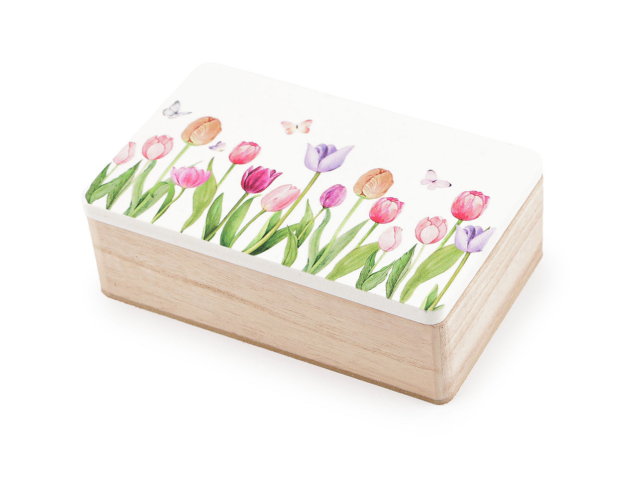 Dřevěná krabička s květinovým motivem – stylové a praktické úložiště pro vaše drobnosti. Elegantní dřevěná krabička s jemným květinovým potiskem je skvělým doplňkem do vašeho domova. Uložíte do ní šperky, sponky, gumičky, klíče nebo drobné suvenýry, které chcete mít vždy po ruce. Odklápěcí víko zajišťuje snadný přístup k obsahu, zatímco kvalitní dřevěné provedení zaručuje dlouhou životnost. Tento unikátní kousek dodá vašemu interiéru svěží a útulný vzhled, a zároveň udrží vaše poklady bezpečně uložené.