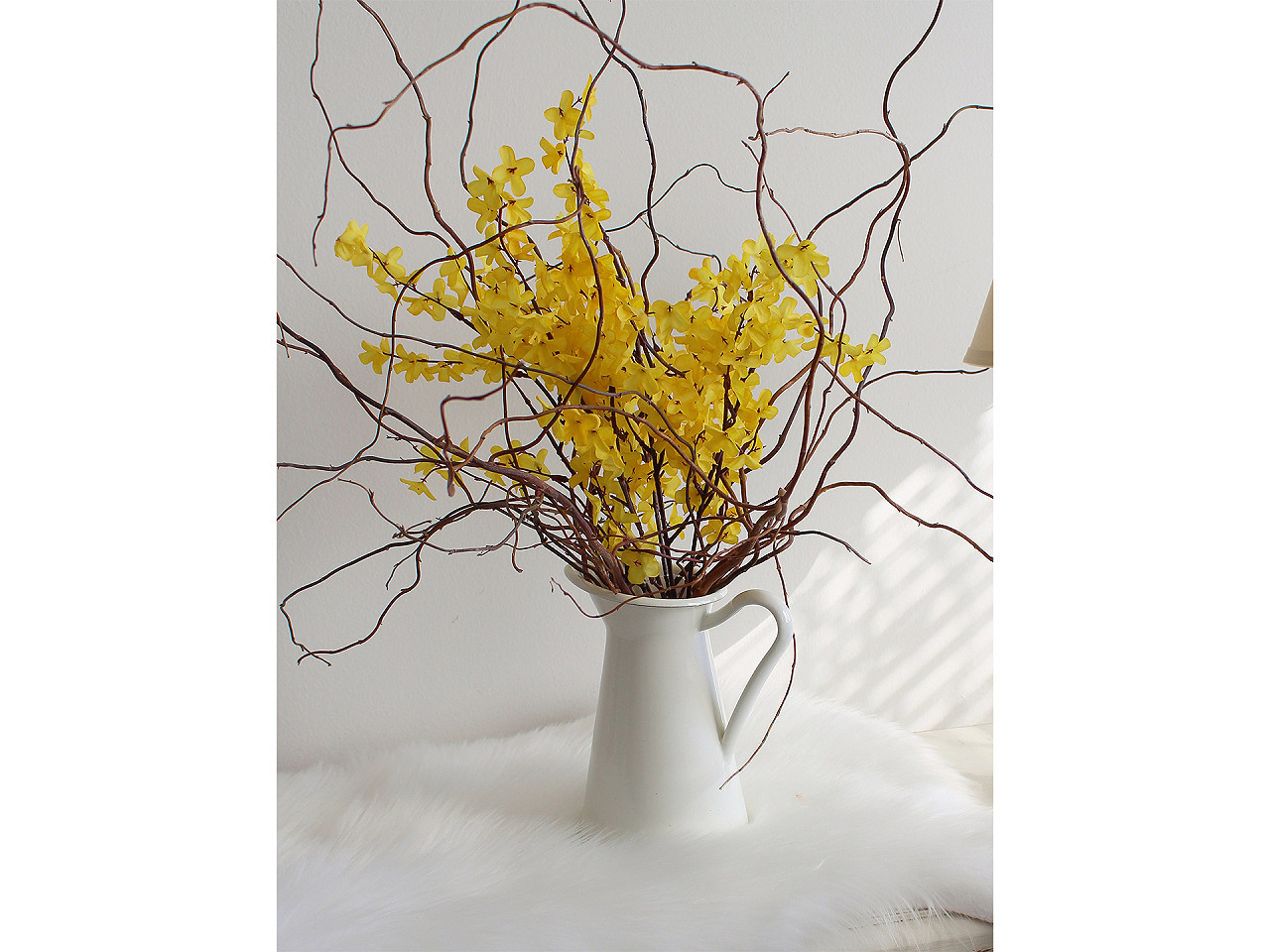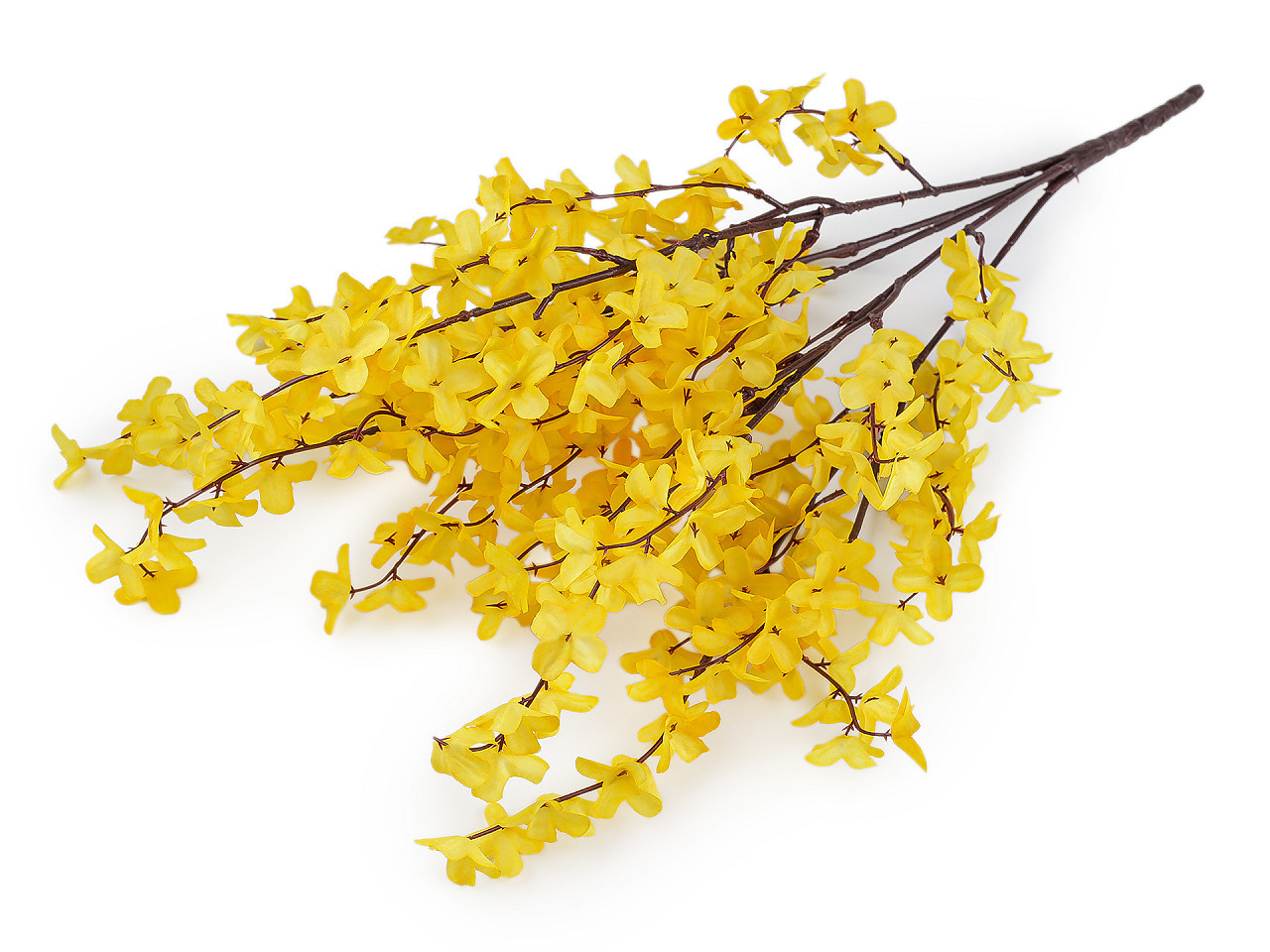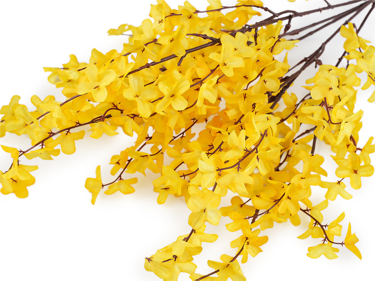 Umělá kytice – větvička zlatého deště. Dodáte svému domovu nádech jara po celý rok s elegantní umělou větvičkou zlatého deště. Realistické provedení s pěti bohatými stonky plnými zářivě žlutých květů rozjasní každý interiér. Díky drátku uvnitř lze stonky snadno tvarovat a přizpůsobit je různým aranžím – od velikonočních dekorací, přes tvorbu věnců až po originální ikebany.