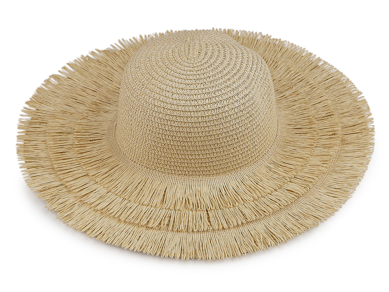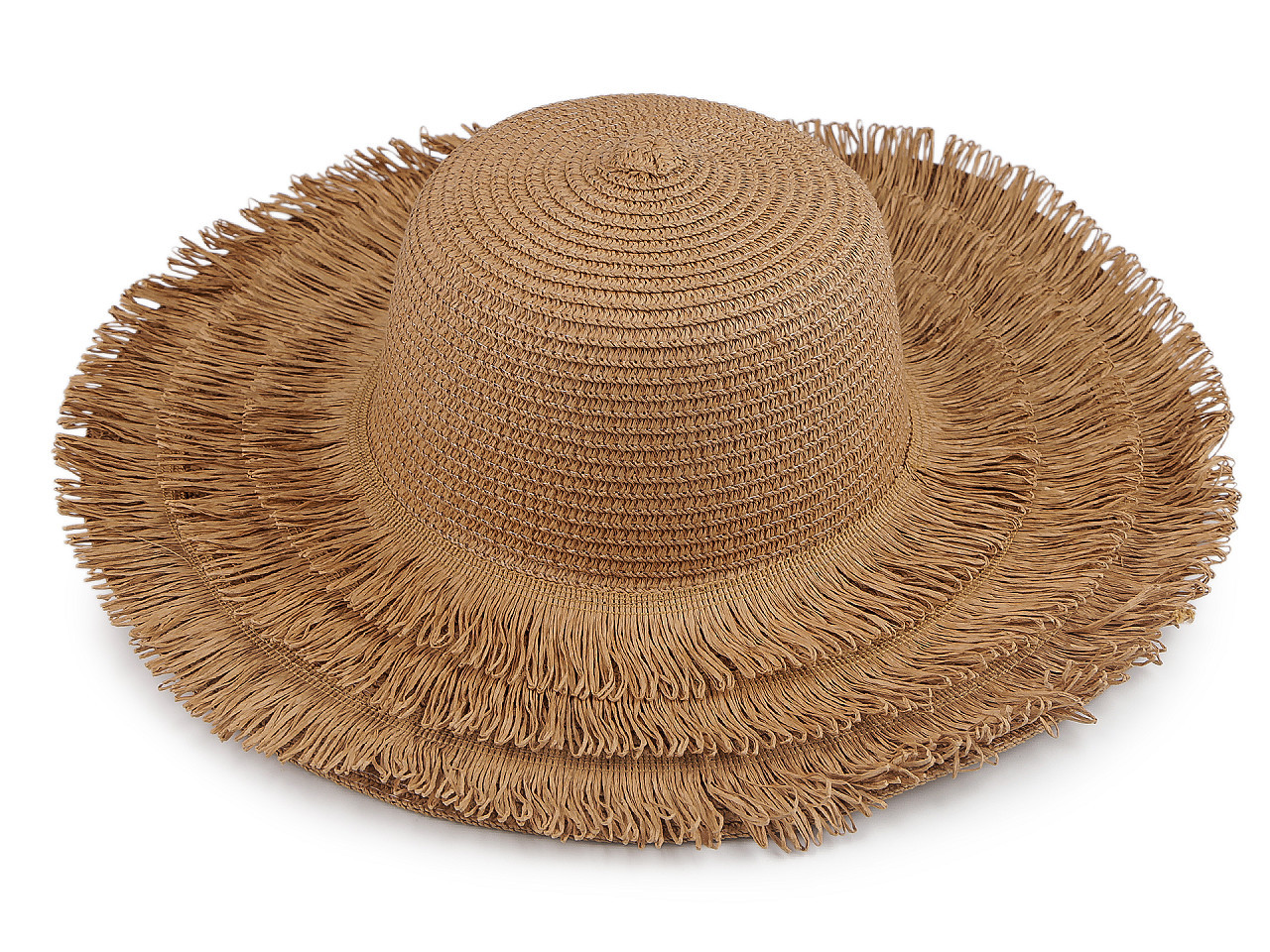 Dámský letní slaměný klobouk s třásněmi – stylová ochrana proti slunci. Užijte si léto naplno s elegantním slamákem, který vás zaštítí před slunečními paprsky a zároveň doplní váš outfit. Tento dámský klobouk má širokou krempu (12 cm) ozdobenou třemi řadami pevných třásní, díky čemuž působí stylově a originálně.