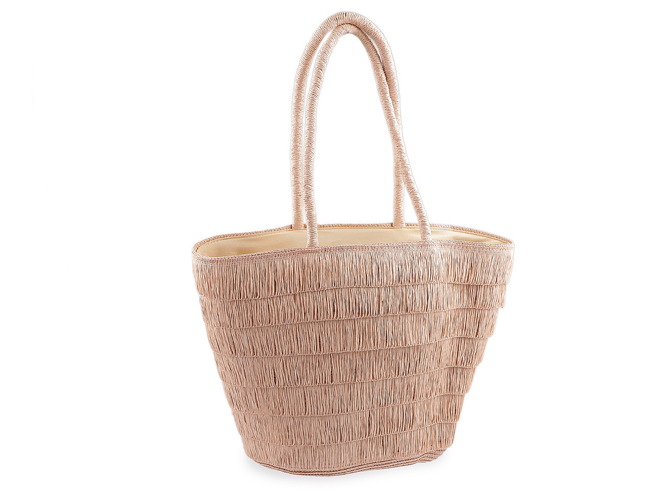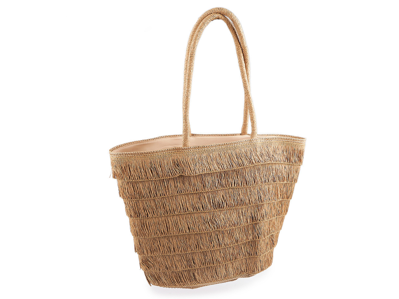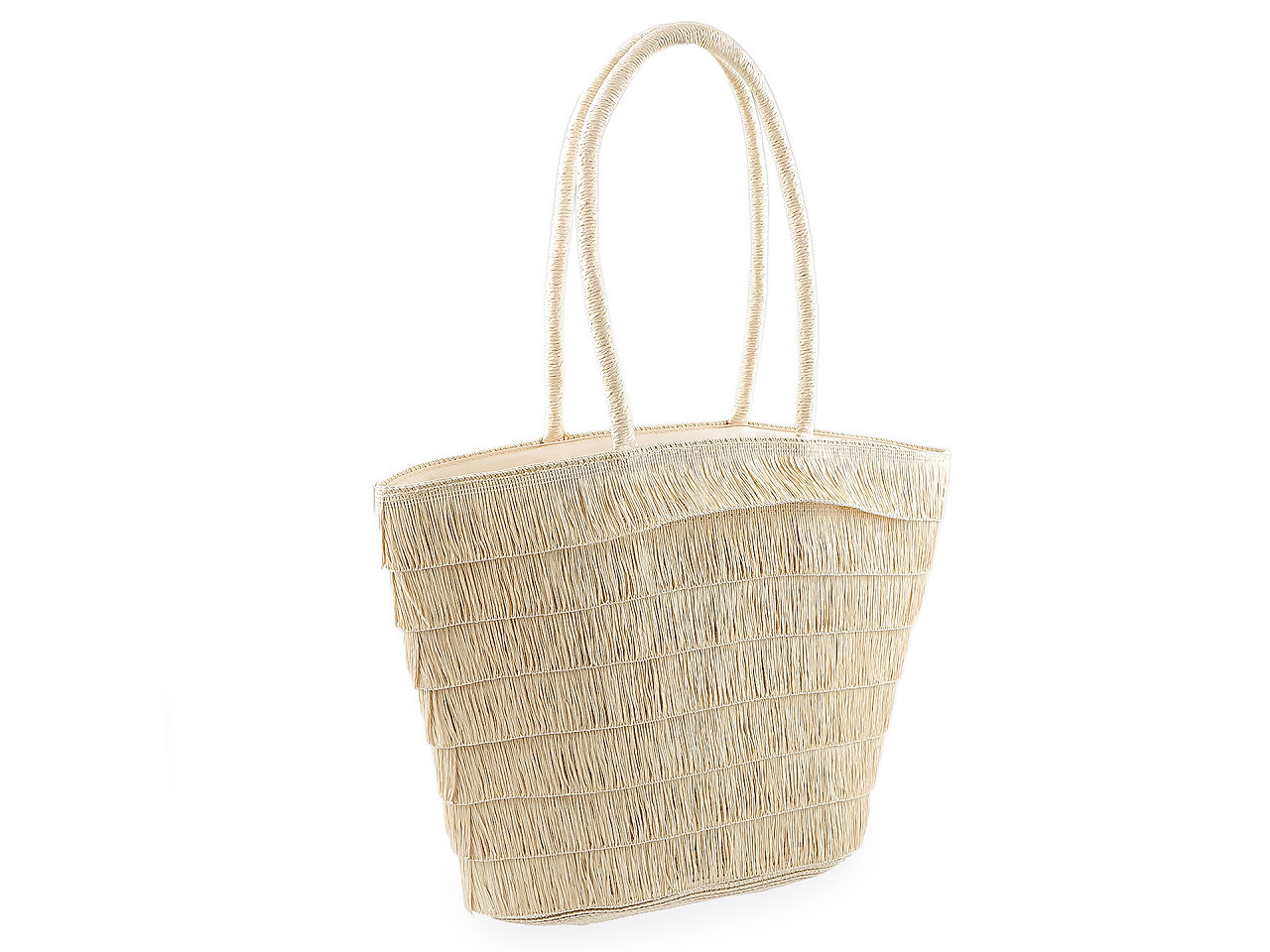 Stylová letní plážová taška s třásněmi – ideální na dovolenou i do města. Objevte praktickou a trendovou letní tašku ve velkém formátu, která se stane vaším nepostradatelným doplňkem pro léto. Originální třásně z papírové příze po obou stranách dodávají tašce moderní vzhled a zajímavou vrstvenou strukturu. Díky kvalitnímu provedení ji využijete nejen k vodě a na pláž, ale také do města, na nákupy či jiné volnočasové aktivity.
