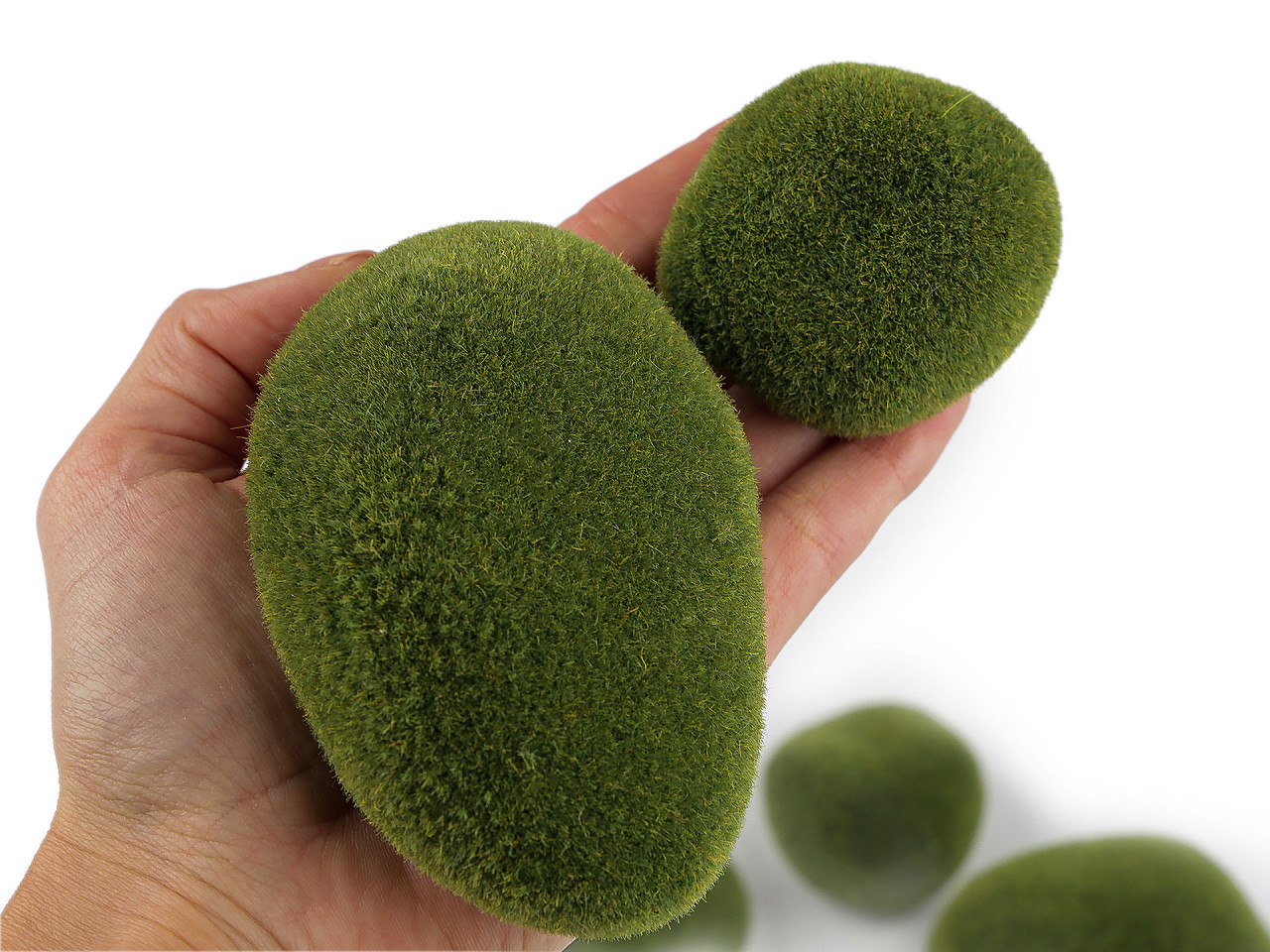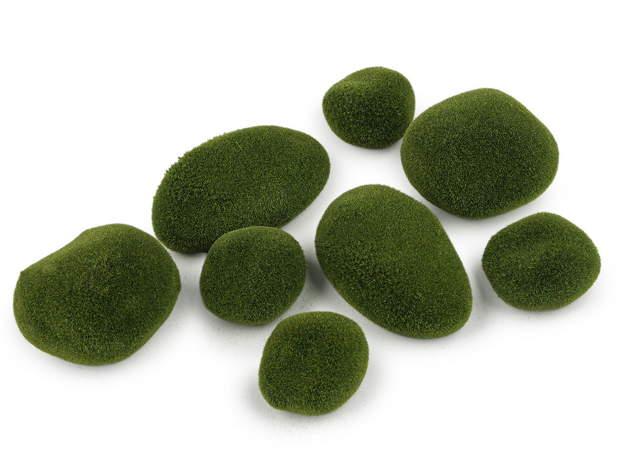 Dekorační mechové kameny – sada 8 kusů, mix velikostí. Vytvořte dokonalé přírodní aranžmá pomocí mechových kamenů v různých velikostech. Sada obsahuje 8 kusů s realistickým vzhledem mechu, které dodají vašemu interiéru či výloze svěží, přírodní atmosféru. Díky polystyrenovému jádru lze do kamenů snadno zapichovat dekorace, květiny nebo jiné doplňky. Hodí se pro domácí dekorace, svatební výzdobu, sezónní aranžmá i reklamní instalace. Různorodé velikosti umožní vytvářet originální kompozice podle vašich představ.