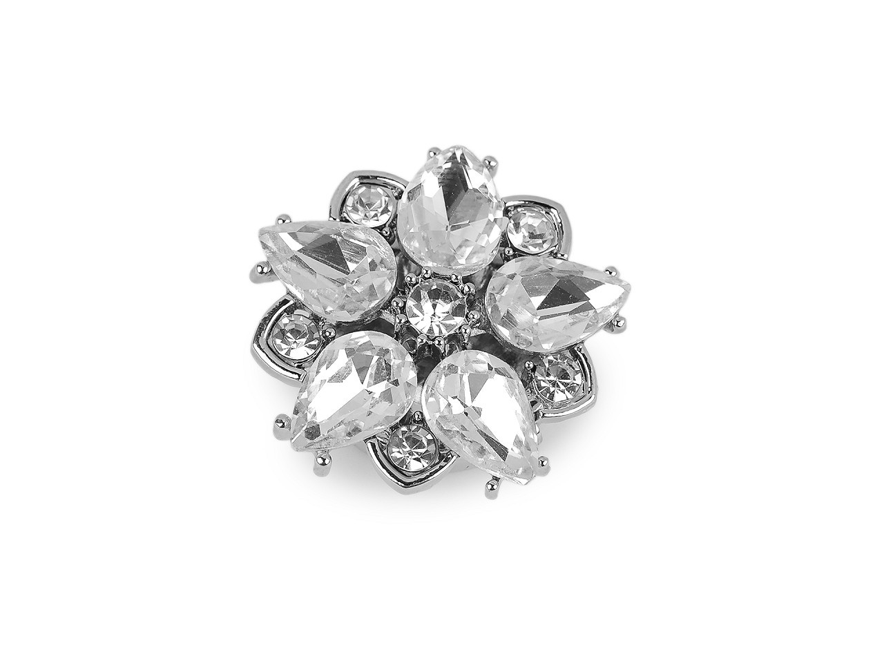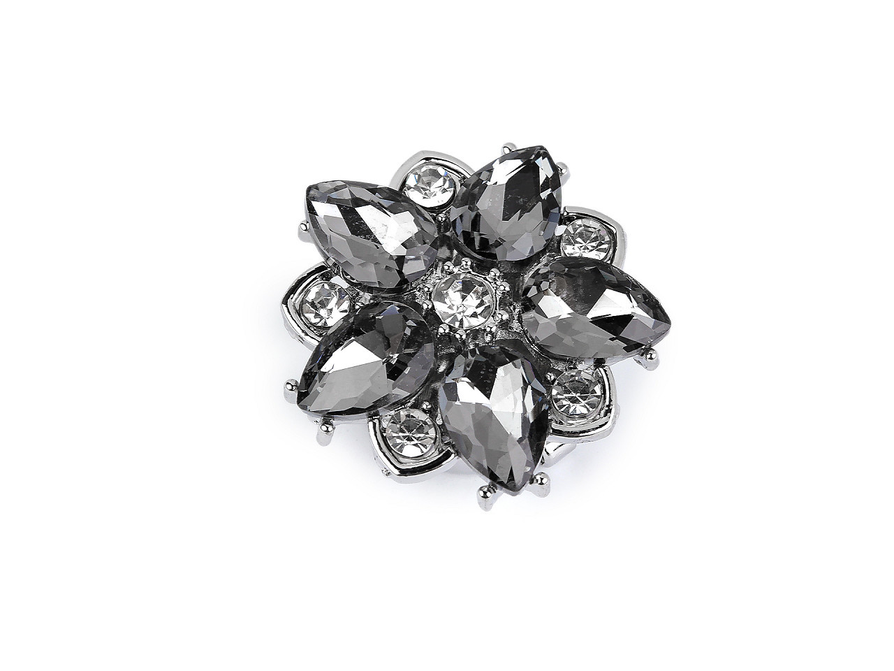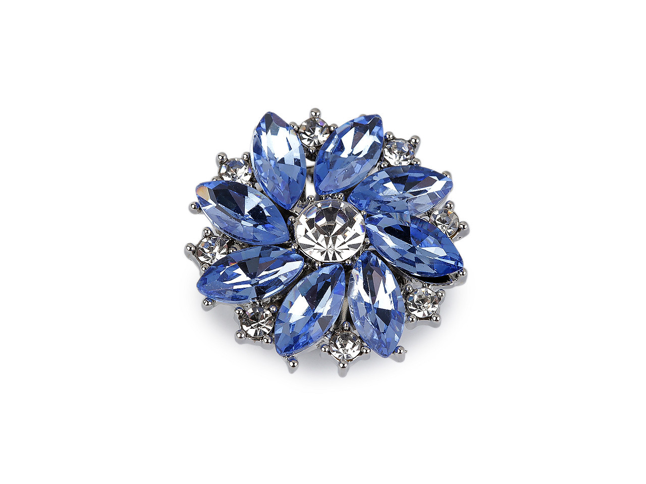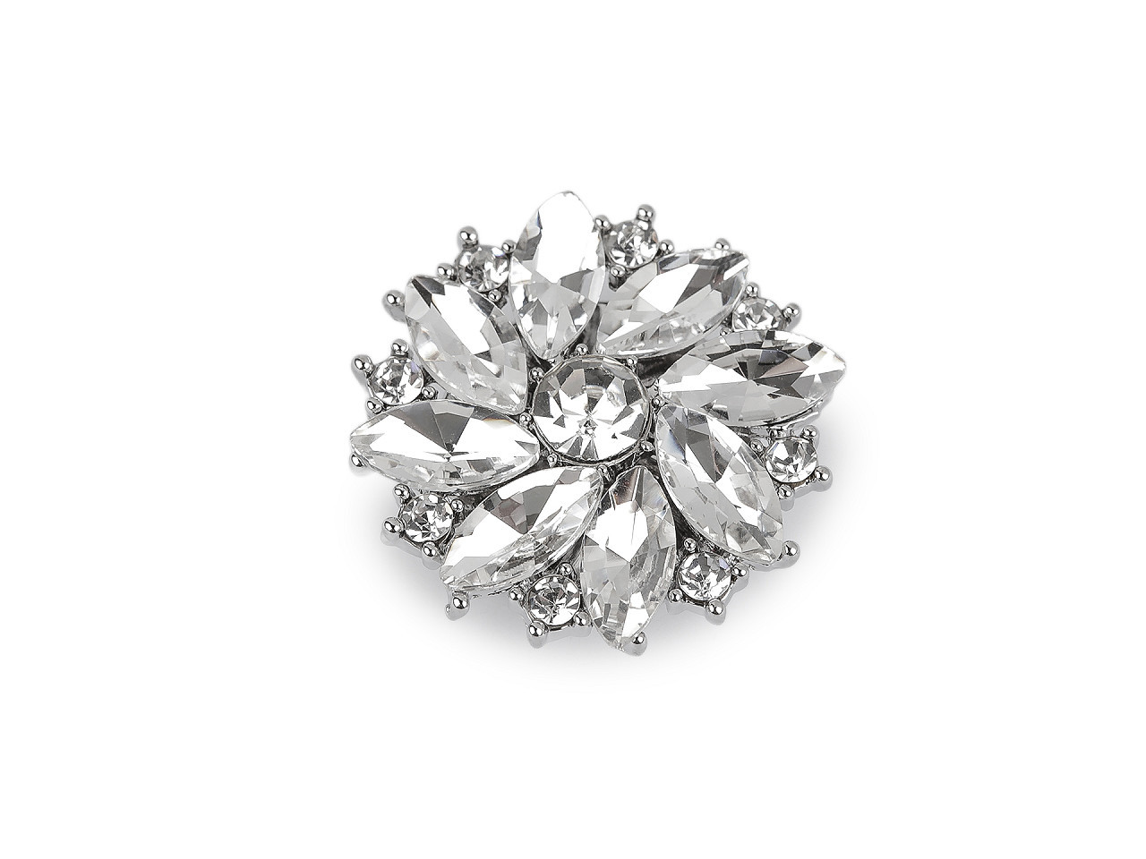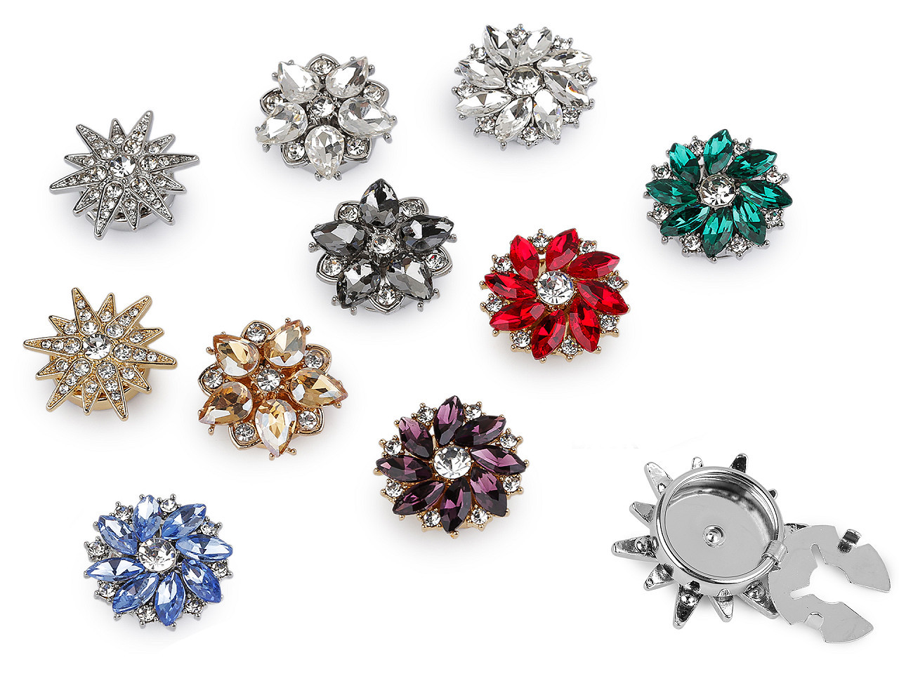 Elegantní ozdoba na knoflík s broušenými kamínky – kulatý design v květinovém stylu. Dodajte svým košilím a blůzám šmrnc s touto luxusní kulatou ozdobou na knoflík. Každý kousek je precizně zdoben broušenými kamínky, které září při každém pohybu a svým tvarem připomínají jemný květ. Ozdoba je vhodná pro knoflíky s průměrem až 1,2 cm a její aplikace je snadná – stačí ji nasadit zezadu na knoflík a zacvaknout.