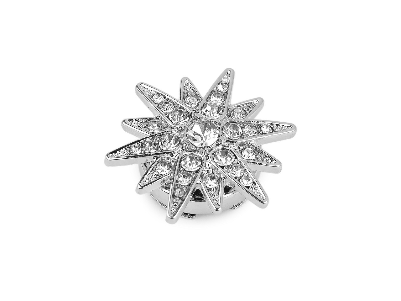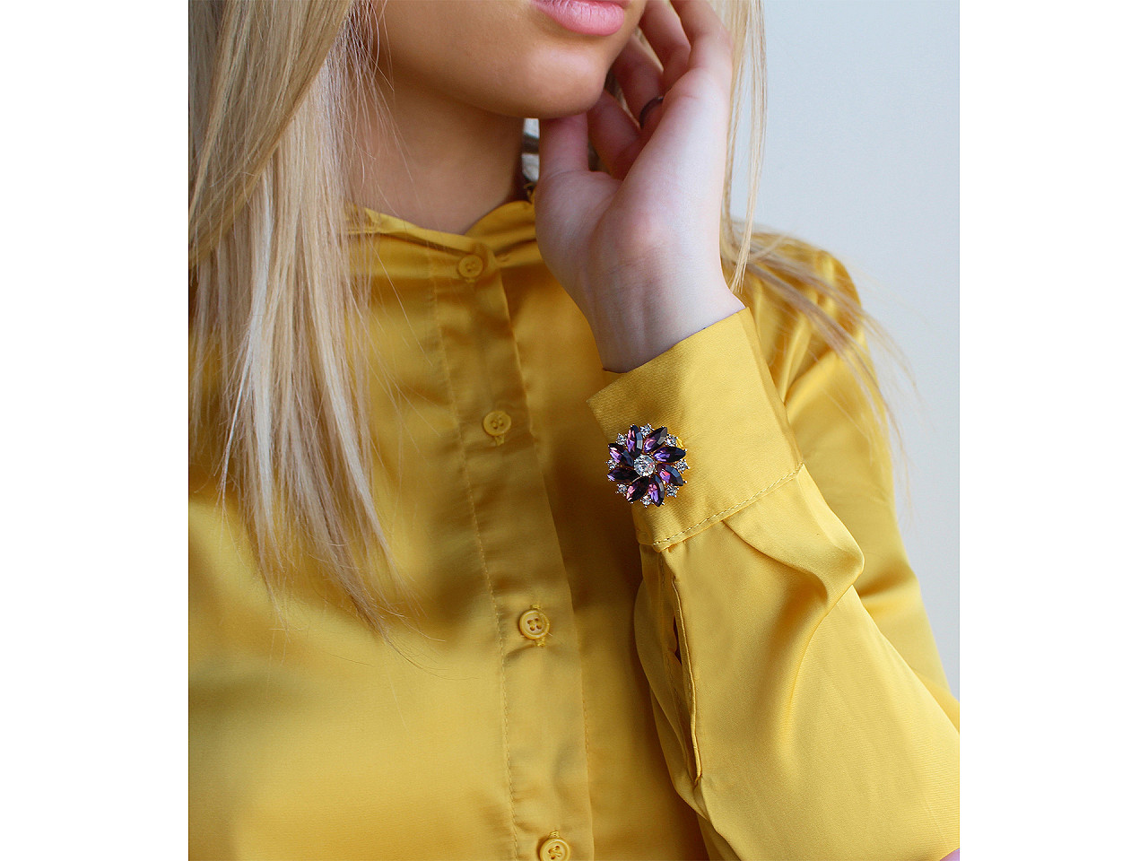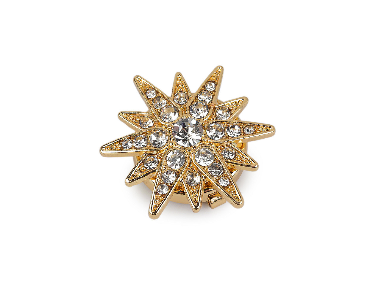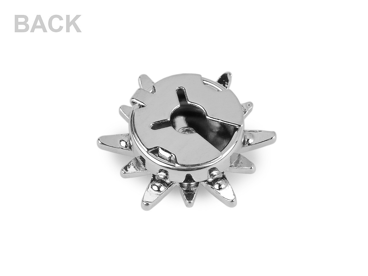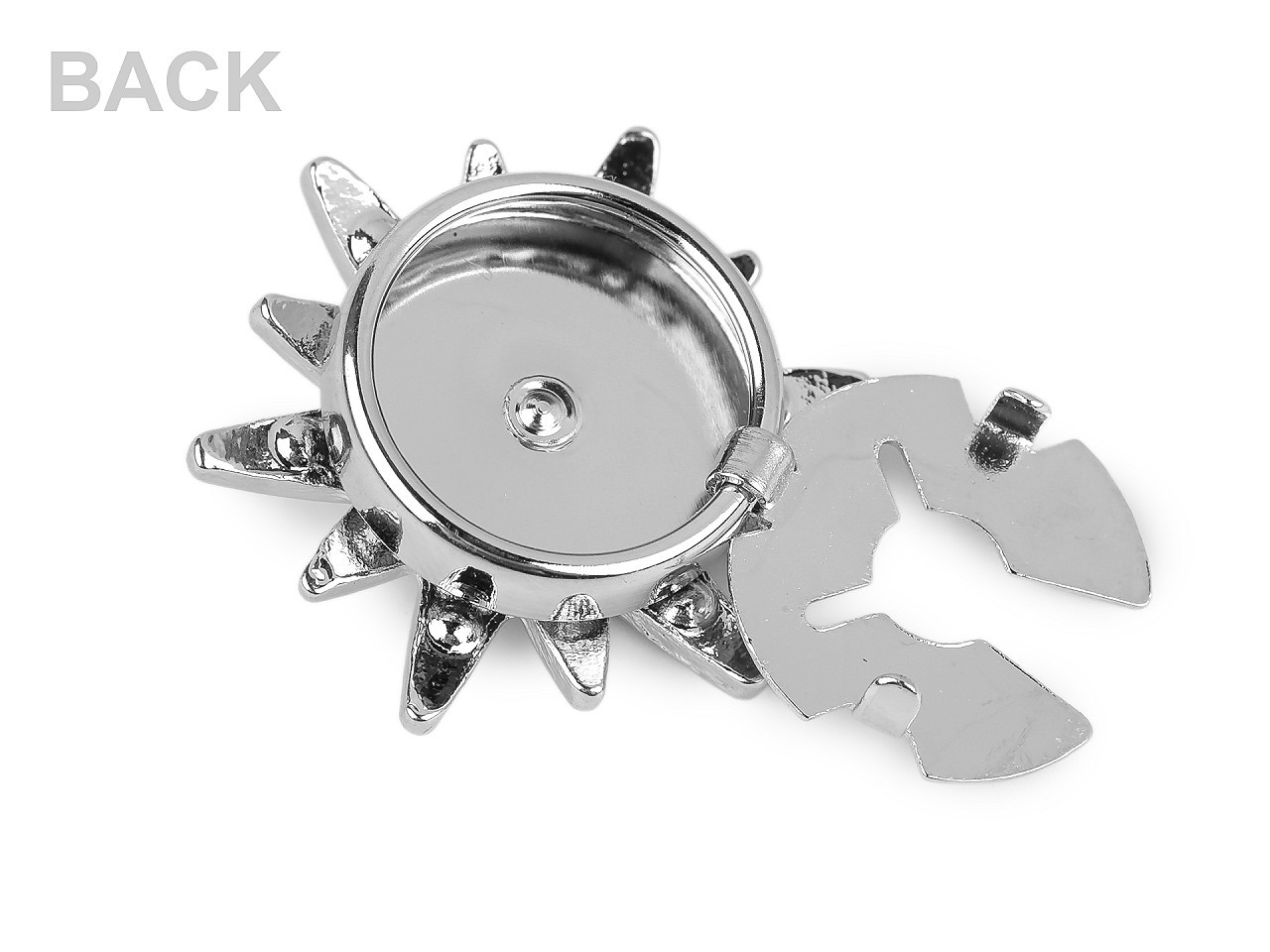 Elegantní ozdoba na knoflík s broušenými kamínky – kulatý design v květinovém stylu. Dodajte svým košilím a blůzám šmrnc s touto luxusní kulatou ozdobou na knoflík. Každý kousek je precizně zdoben broušenými kamínky, které září při každém pohybu a svým tvarem připomínají jemný květ. Ozdoba je vhodná pro knoflíky s průměrem až 1,2 cm a její aplikace je snadná – stačí ji nasadit zezadu na knoflík a zacvaknout.