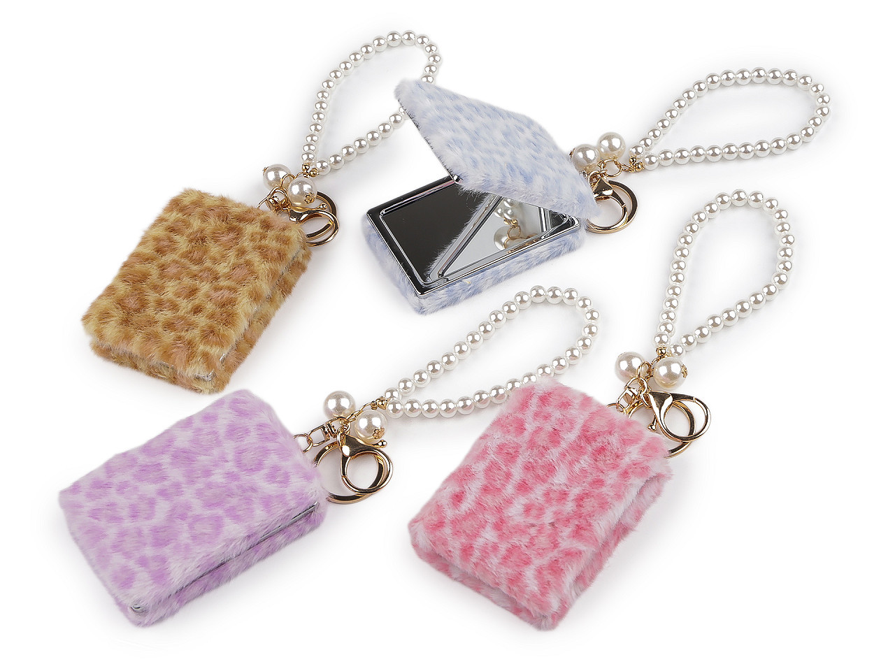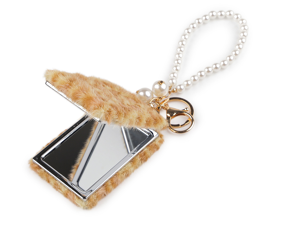Elegantní plyšové kosmetické zrcátko – přívěsek na kabelku s perlami a zvířecím vzorem. Stylový doplněk, který spojuje praktičnost a glamour. Tento plyšový přívěsek s perlovým poutkem a kovovou karabinou se snadno připne na kabelku, batoh či klíče a vždy budete mít zrcátko po ruce. Uvnitř se skrývají dvě kvalitní zrcátka – jedno běžné a jedno zvětšovací – ideální pro rychlou kontrolu vzhledu kdekoliv.