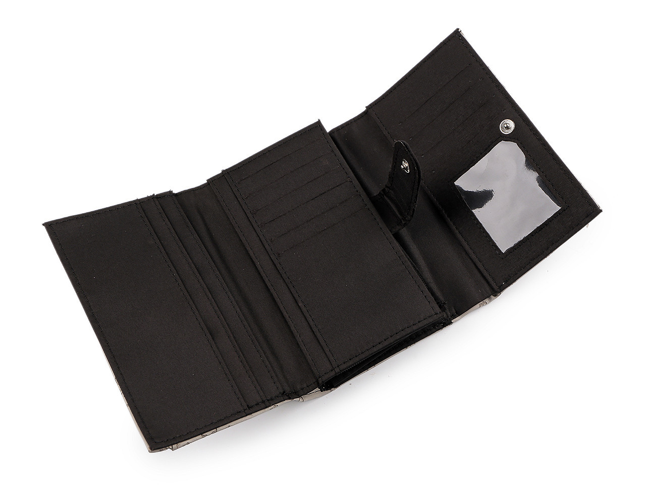 - Část pro karty – 4 přihrádky na platební a věrnostní karty (1 průhledná), plus velká plochá kapsa.