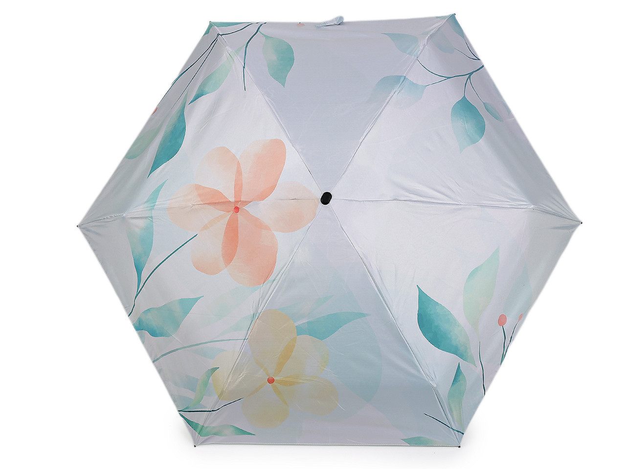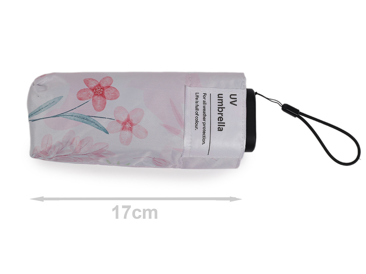 Dámský mini skládací deštník s květinovým motivem a UV ochranou. Stylový dámský mini skládací deštník s barevným potahem a výraznými květinovými vzory je ideální volbou pro ženy, které hledají praktickou ochranu před deštěm i sluncem. Díky kompaktní délce složeného deštníku 17 cm se snadno vejde do kabelky či batohu. Po vložení do ochranného obalu získá plochý tvar, což umožňuje pohodlné skladování.