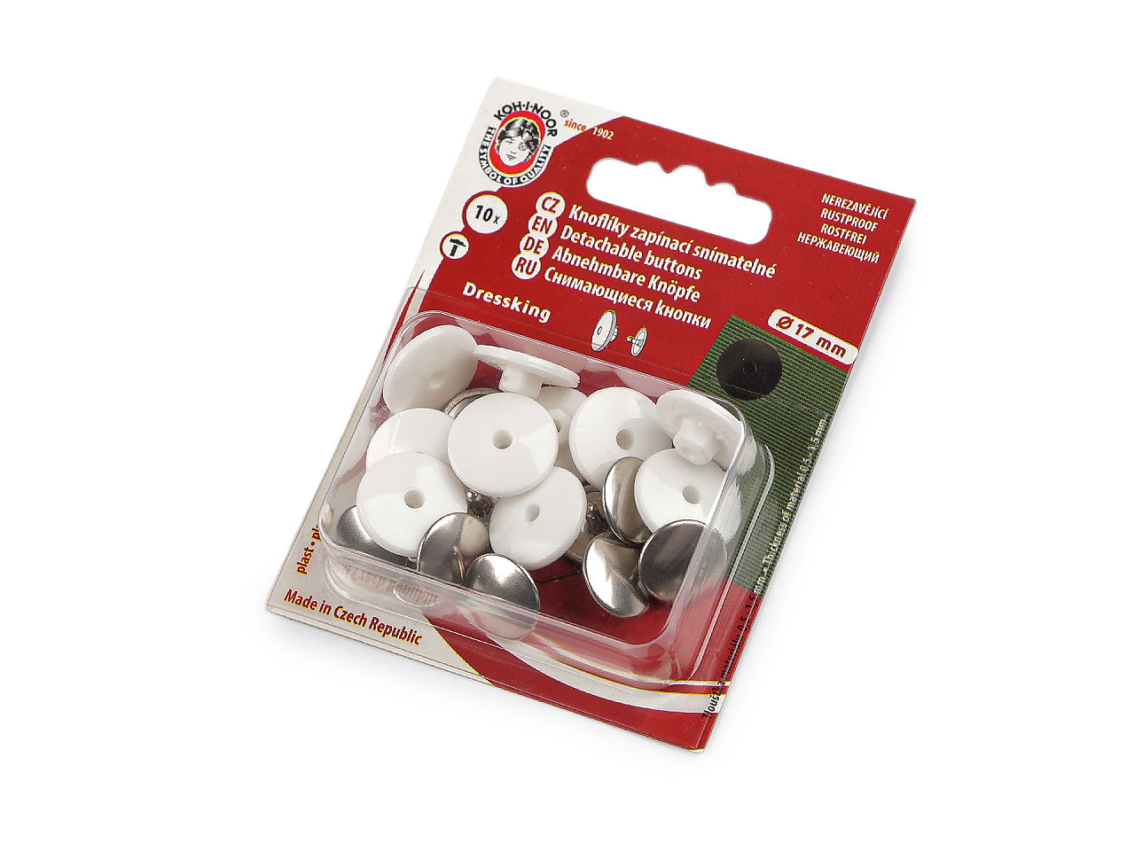 Snímatelný systém umožňuje knoflík kdykoli sejmout nebo přemístit, což oceníte při opravách či úpravách textilií.