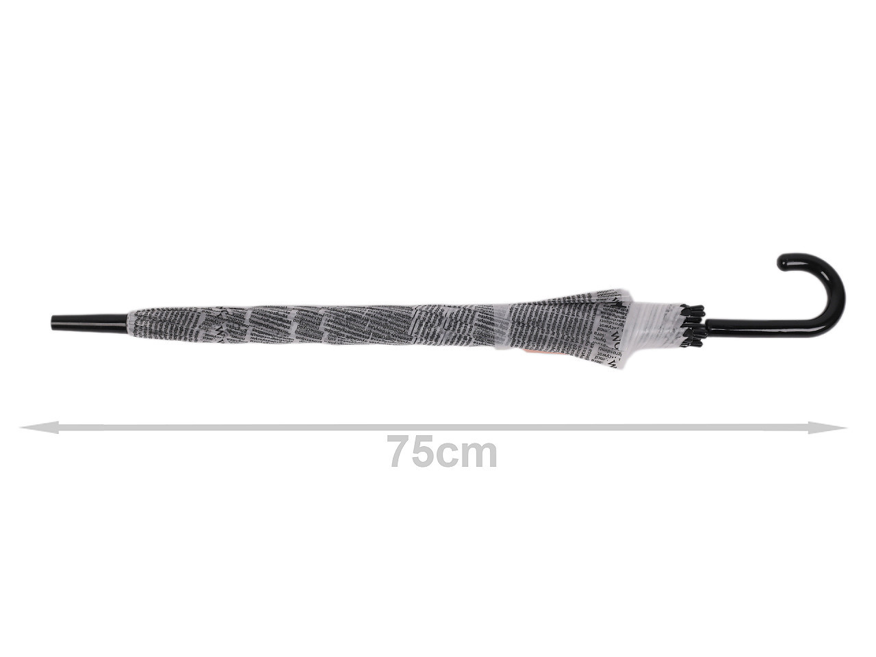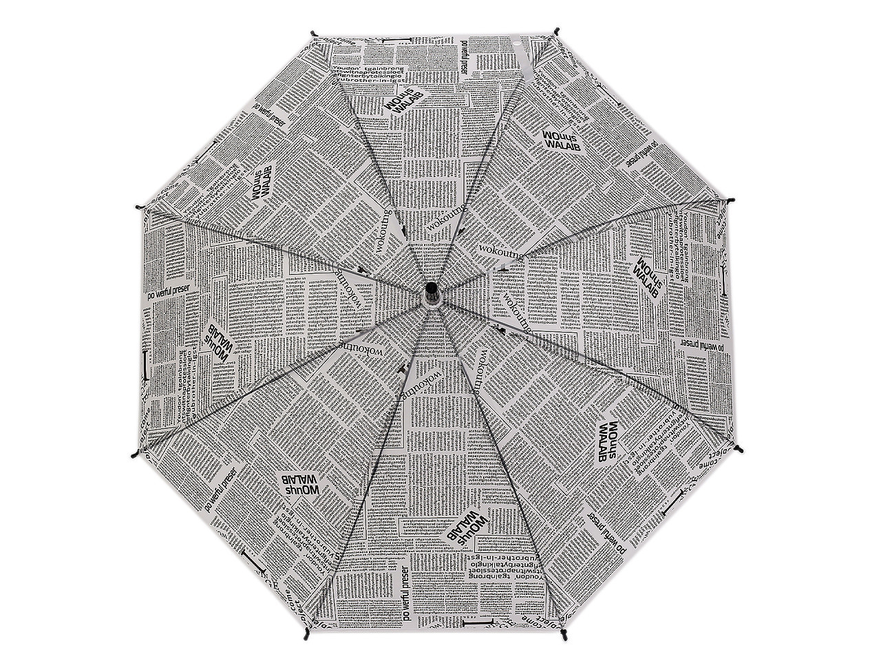 Stylový dámský vystřelovací deštník s motivem novin – módní doplněk, který dodá vašemu vzhledu originalitu a lehkost. Díky průsvitnému designu se snadno kombinuje s různými outfity a módními styly. Robustní kovová konstrukce s pružnými lamelami tvoří osm pevných polí, což zajišťuje odolnost i při silném větru a dešti. Hloubka deštníku 23 cm poskytuje spolehlivou ochranu, zatímco pohodlná pevná rukojeť usnadní držení. Ideální pro ženy a dívky, které hledají funkční a zároveň elegantní deštník.