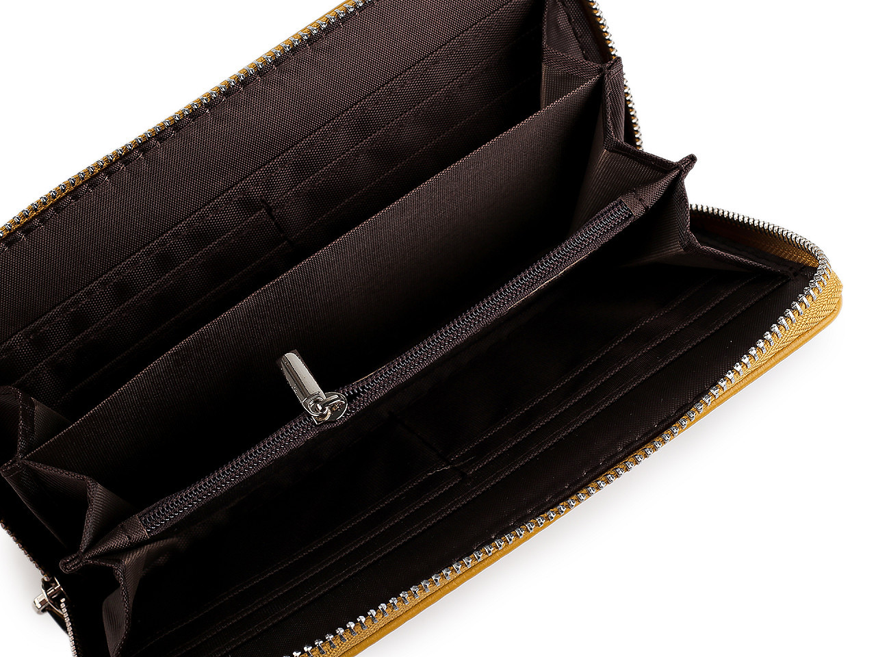 Zapínání na zip zajišťuje bezpečné uložení vašich cenností. Uvnitř najdete tři prostorné přihrádky na bankovky, kapsu na mince se zipem a několik slotů na platební karty či doklady. Díky promyšlenému členění budete mít vždy vše přehledně a po ruce.