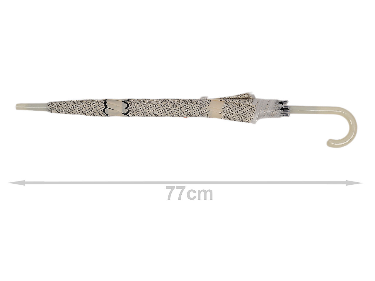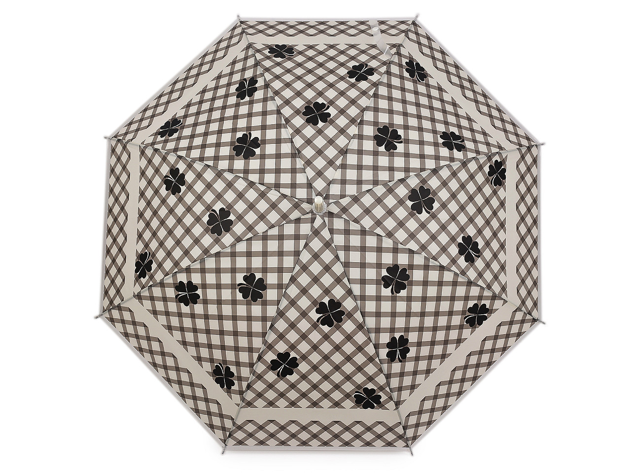 Stylový dámský a dívčí vystřelovací deštník s károvaným potiskem. Buďte v suchu a zároveň stylová. Tento elegantní průsvitný vystřelovací deštník s originálním károvaným vzorem je perfektním doplňkem pro každou ženu či dívku. Díky kovové konstrukci z drátu a pružných lamel tvořících osm polí je mimořádně pevný a odolný – neohne se ani při silném větru. Hloubka 22 cm nabízí dostatečnou ochranu před deštěm, zatímco klasická tyč s pevnou rukojetí se pohodlně drží.