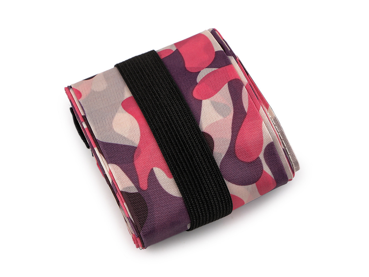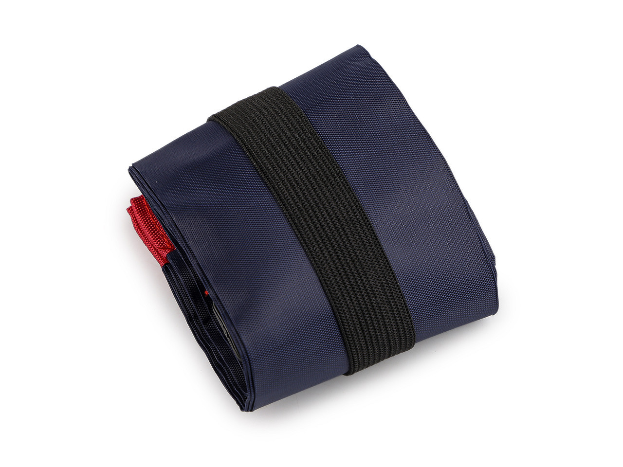 Taška je vyrobena z kvalitního a pevného materiálu, který je odolný a nenáročný na údržbu. Uzavírá se na zip, což zajistí bezpečné uložení věcí. Dvě nastavitelná ucha umožňují pohodlné nošení v ruce nebo přes rameno. Při složení drží taška pohromadě pomocí široké pruženky, takže nepotřebuje žádný obal.