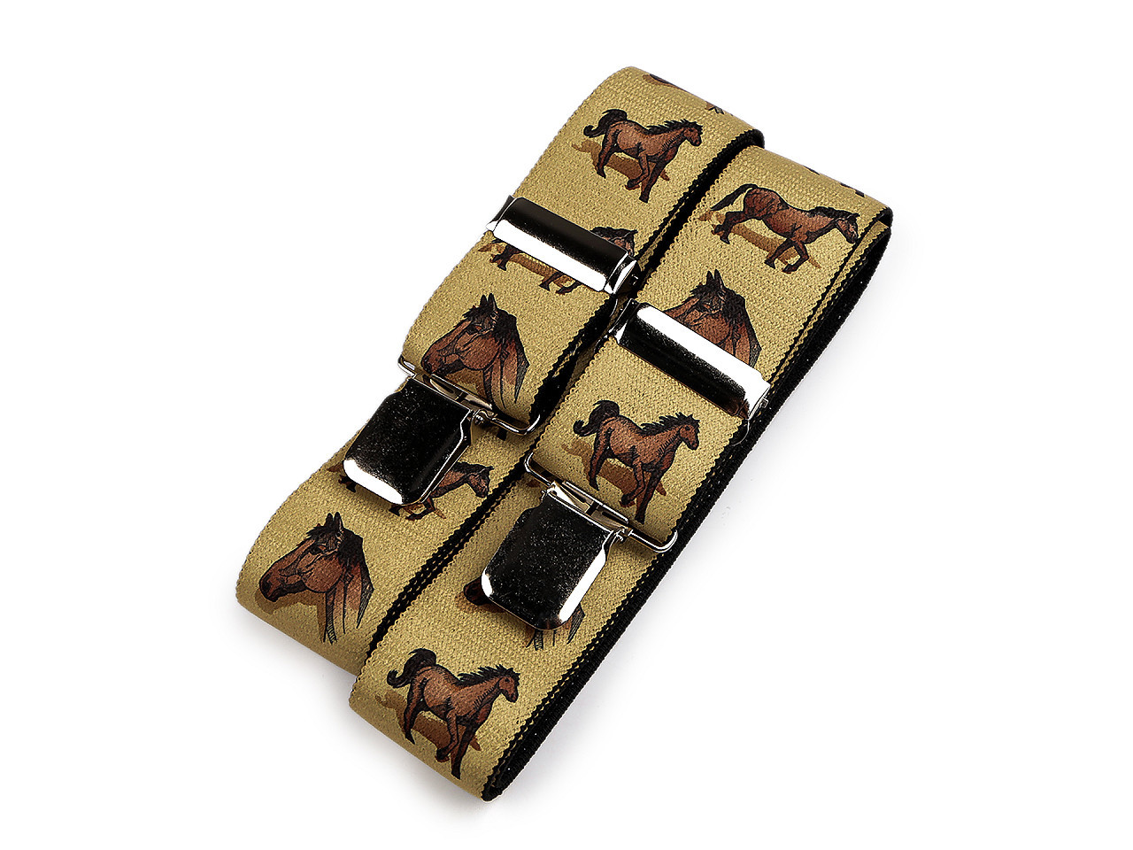 Stylové šle s motivem koní a podkov – česká kvalita, pohodlí a originalita. Dodajte svému outfitu šmrnc s originálními kšandami širokými 4 cm a dlouhými 120 cm (měřeno bez zapínání). Potisk koní nebo podkov podtrhne vaši lásku k jezdeckému stylu, ať už se chystáte na závody, tematickou akci nebo jen chcete zaujmout.