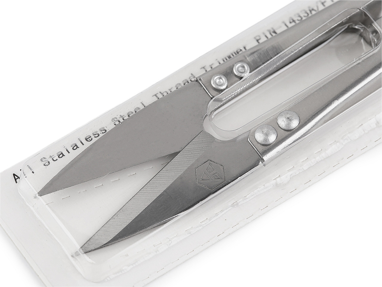Cvakačky PIN – nerezové nůžky pro precizní střih. Objevte nůžky PIN cvakačky vyrobené z prvotřídní nerezové oceli, ideální pro rychlé a přesné odstřižení vyšívacích nitek, vláken či příze. Díky ostré čepeli až po špičku zvládnete i milimetrově přesný střih, například při nastříhávání švových přídavků. Jejich odolná konstrukce zaručuje dlouhou životnost a bezchybný výkon. Pro zachování perfektního stavu jsou nůžky při výrobě ošetřeny ochranným olejem – před použitím doporučujeme jemně otřít.