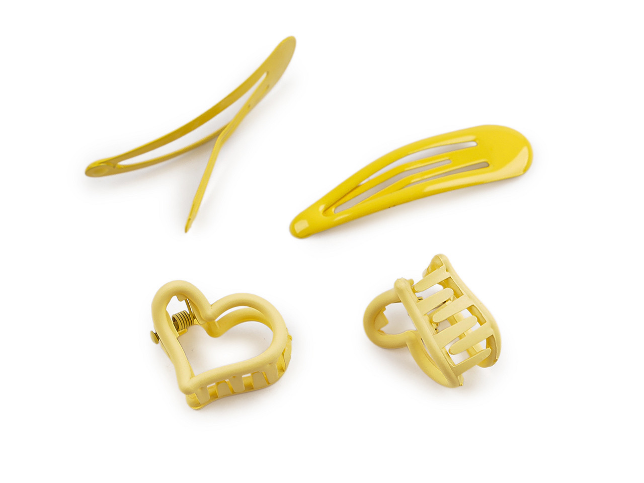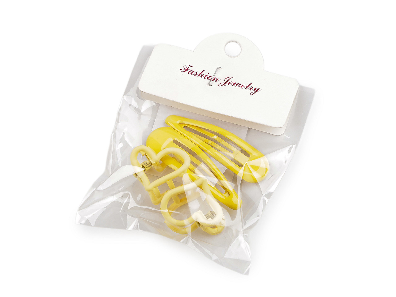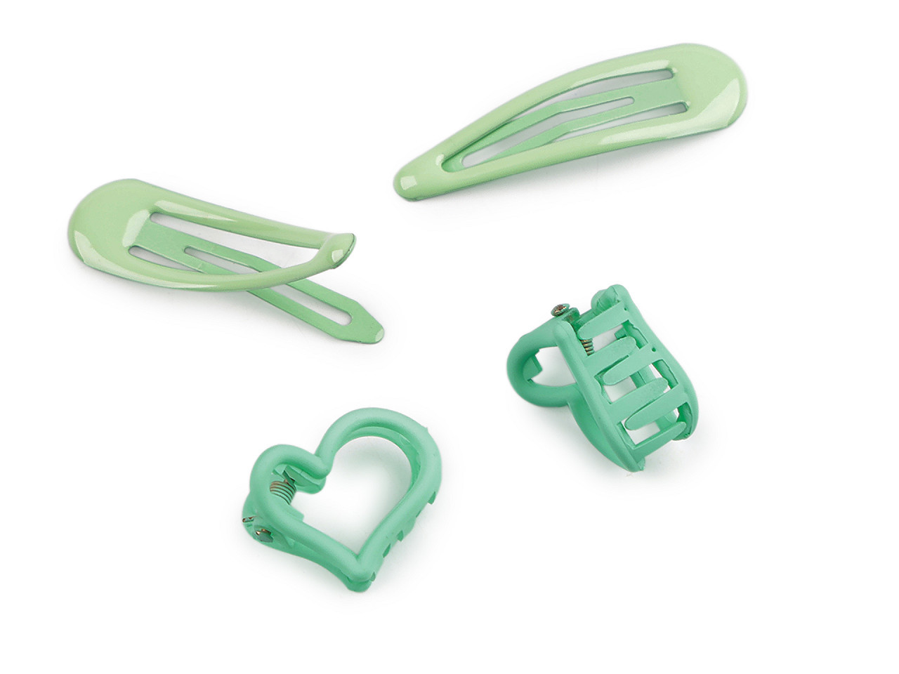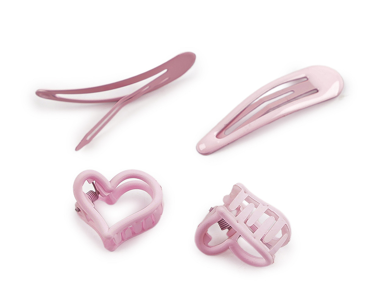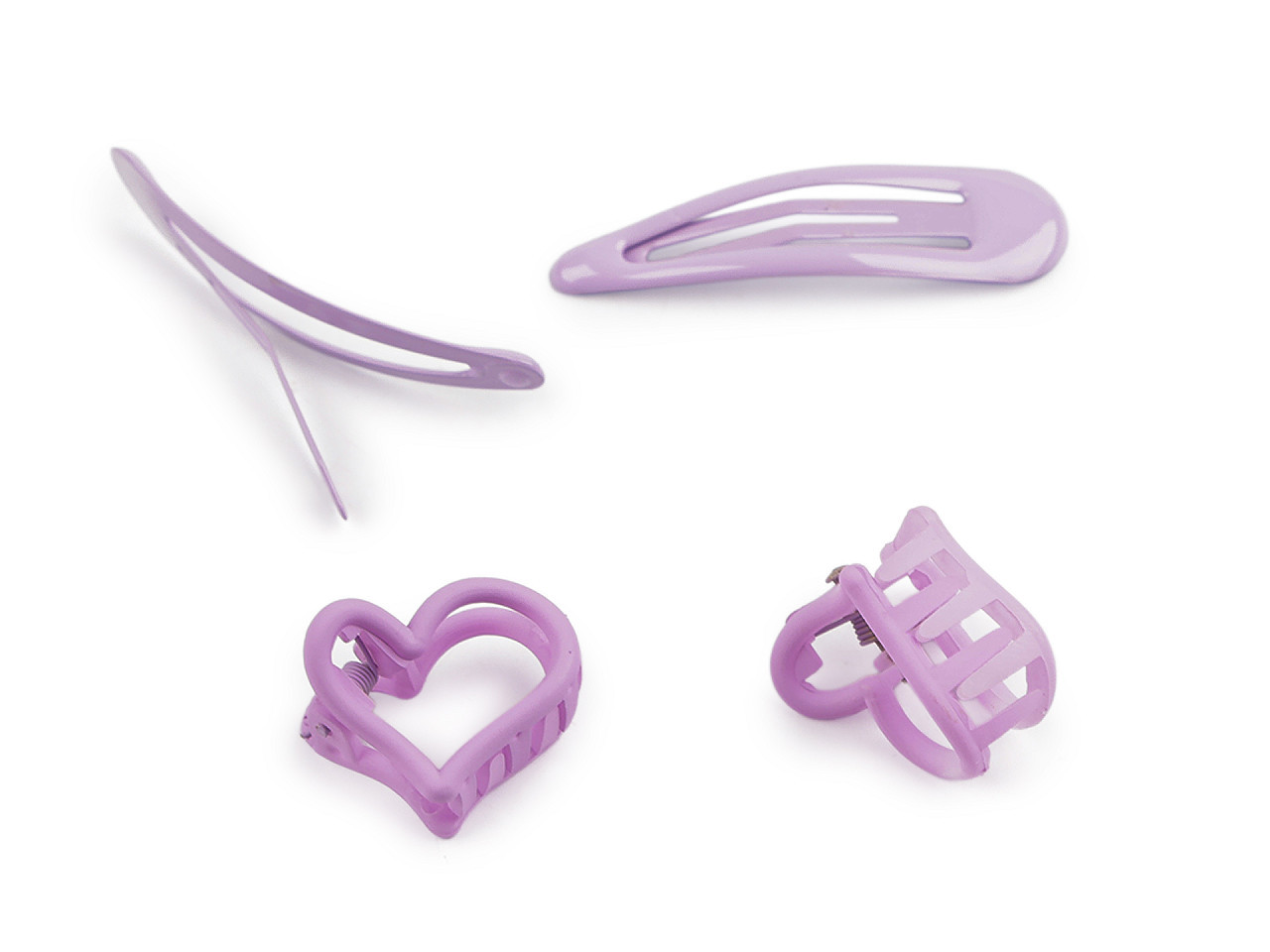 Sada obsahuje 2 matné skřipce se srdíčkovým motivem a 2 lesklé pukačky, které se hodí pro různé typy vlasů. Díky kompaktnímu balení v sáčku s papírovou závěskou je produkt ideální i pro prodej na stojanech.