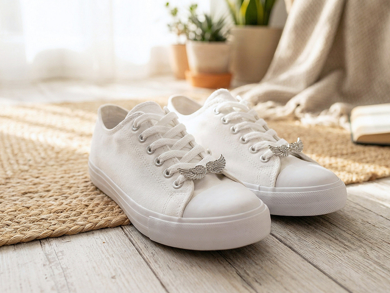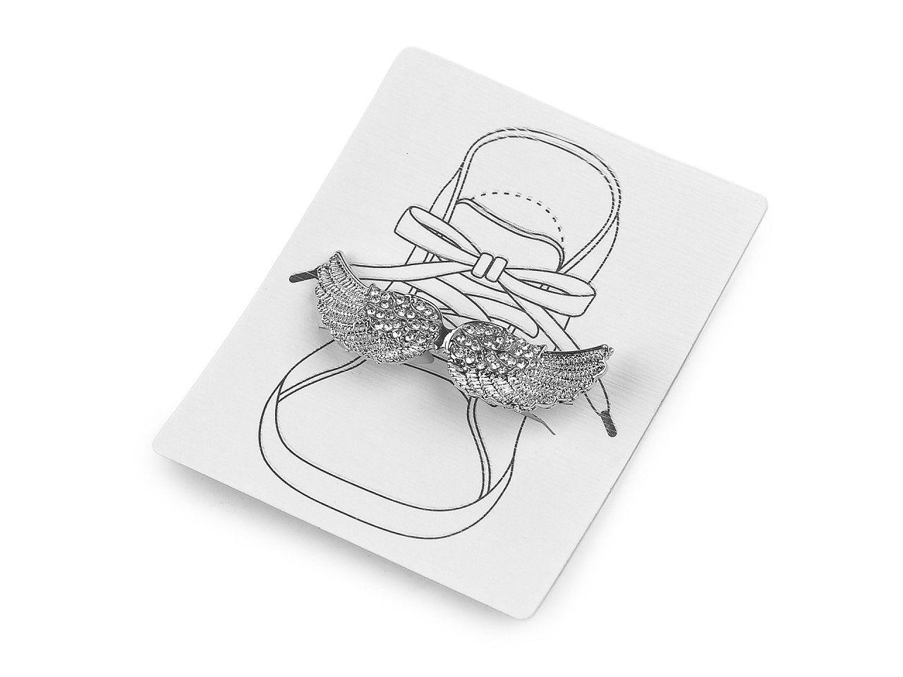 Ozdoba na tenisky – křídla s broušenými kamínky. Proměňte své boty v módní skvost! Stylová ozdoba ve tvaru křídla, zdobená třpytivými broušenými kamínky, dodá vašim teniskám či jiným botám s tkaničkami jedinečný vzhled. Díky čtyřem háčkům na zadní straně se snadno a rychle upevní na šněrování – během pár sekund oživíte svůj outfit.