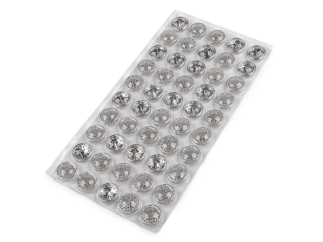 Designový kovový knoflík – elegantní detail pro váš oděv. Dodáte svým šatům, sakům, kabátům či svetrům styl a originalitu díky našim kvalitním kovovým knoflíkům. Kovová konstrukce zaručuje dlouhou životnost a odolnost, zatímco moderní design okamžitě povýší vzhled vašeho outfitu. Ideální pro nahrazení starých knoflíků nebo tvorbu nových módních kousků. Spodní přišívání umožňuje snadnou a pevnou montáž na různé typy látek.