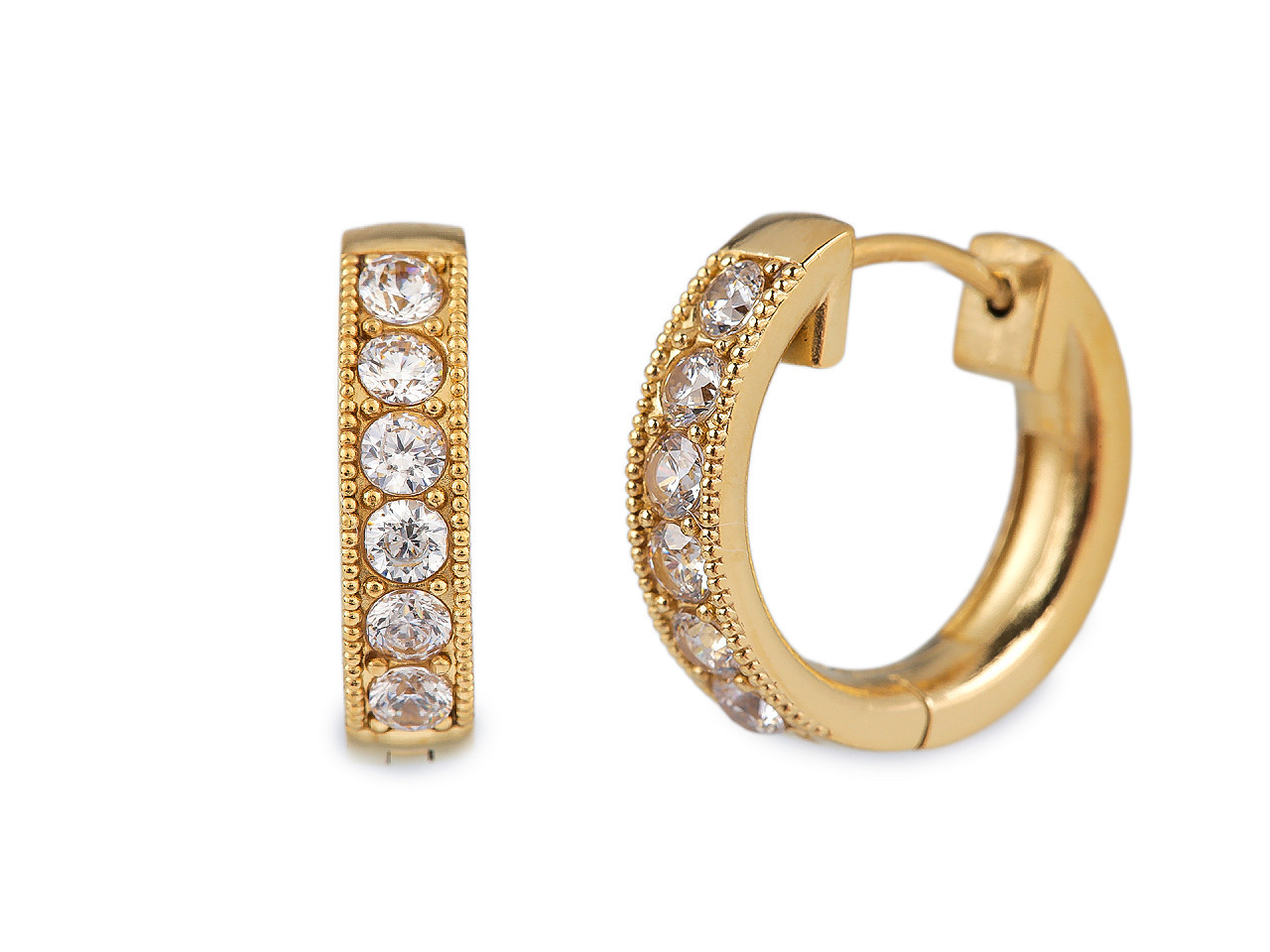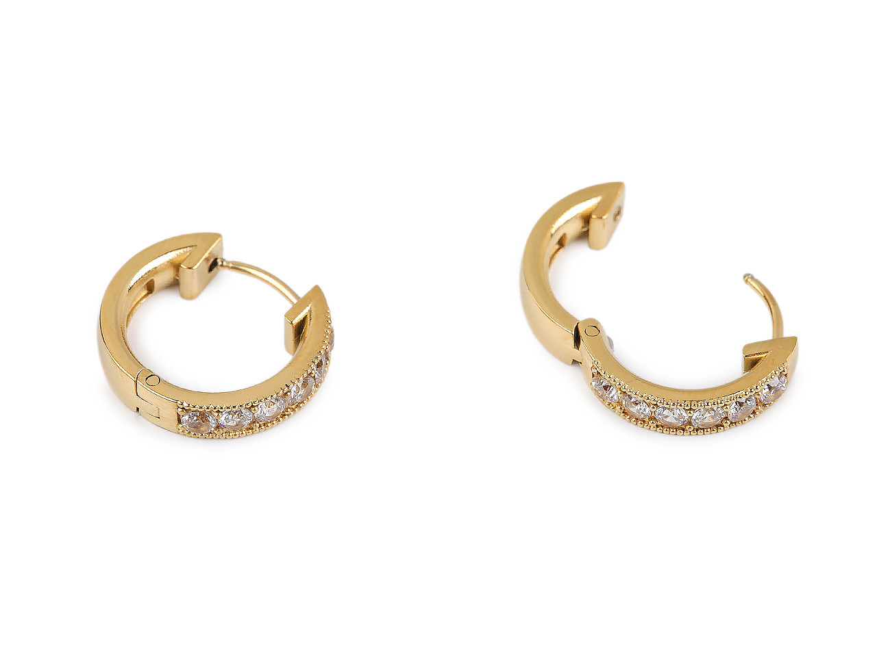 Elegantní nerezové náušnice kroužky s třpytivými kamínky – odolné a hypoalergenní. Objevte krásu a praktičnost našich náušnic z kvalitní nerezové oceli. Stylové kroužky zdobené broušenými kamínky dodají vašemu outfitu zářivý lesk a jsou ideální pro každodenní nošení i slavnostní příležitosti. Kloubové zapínání zajistí pohodlné a bezpečné upevnění po celý den.