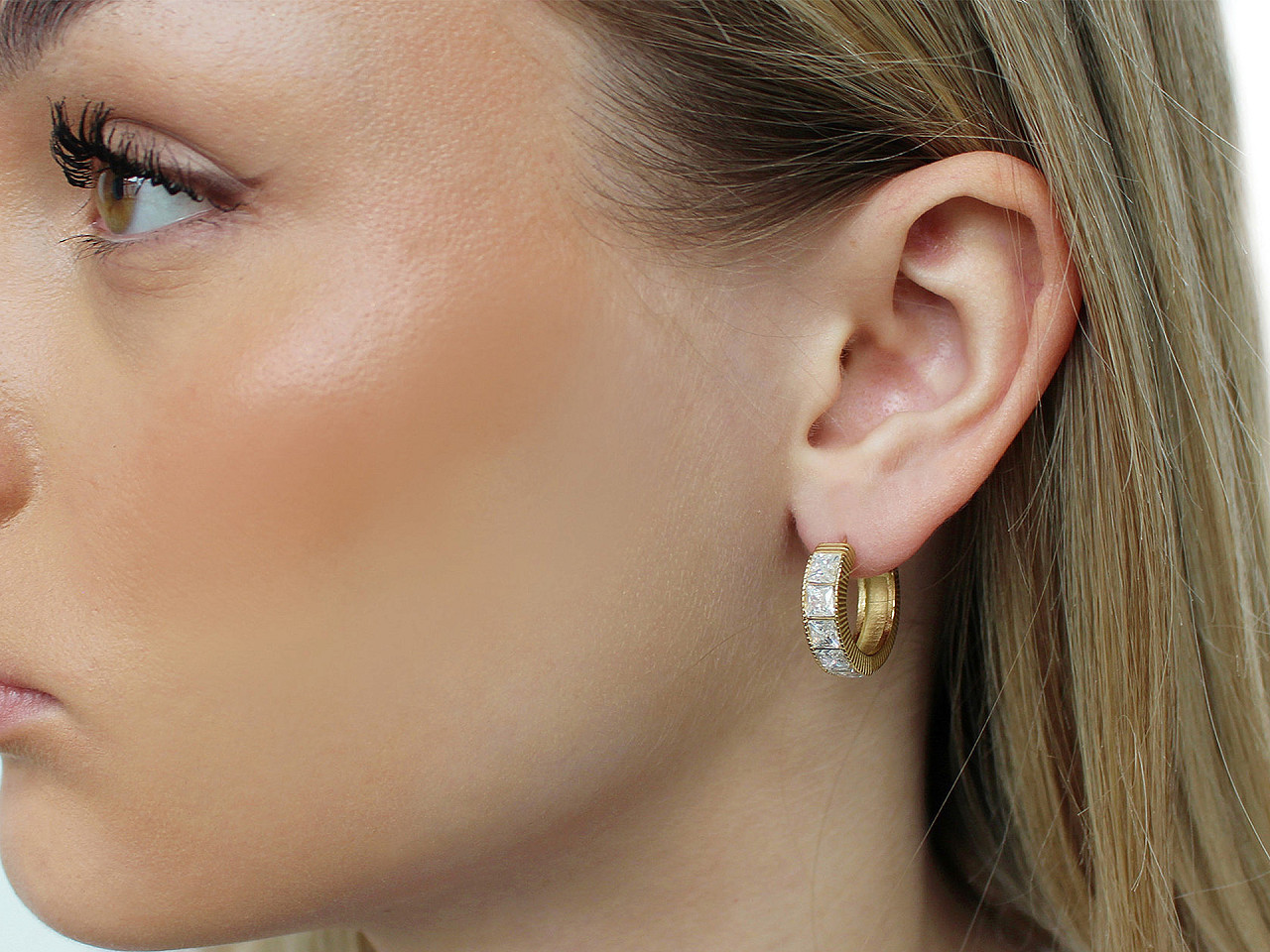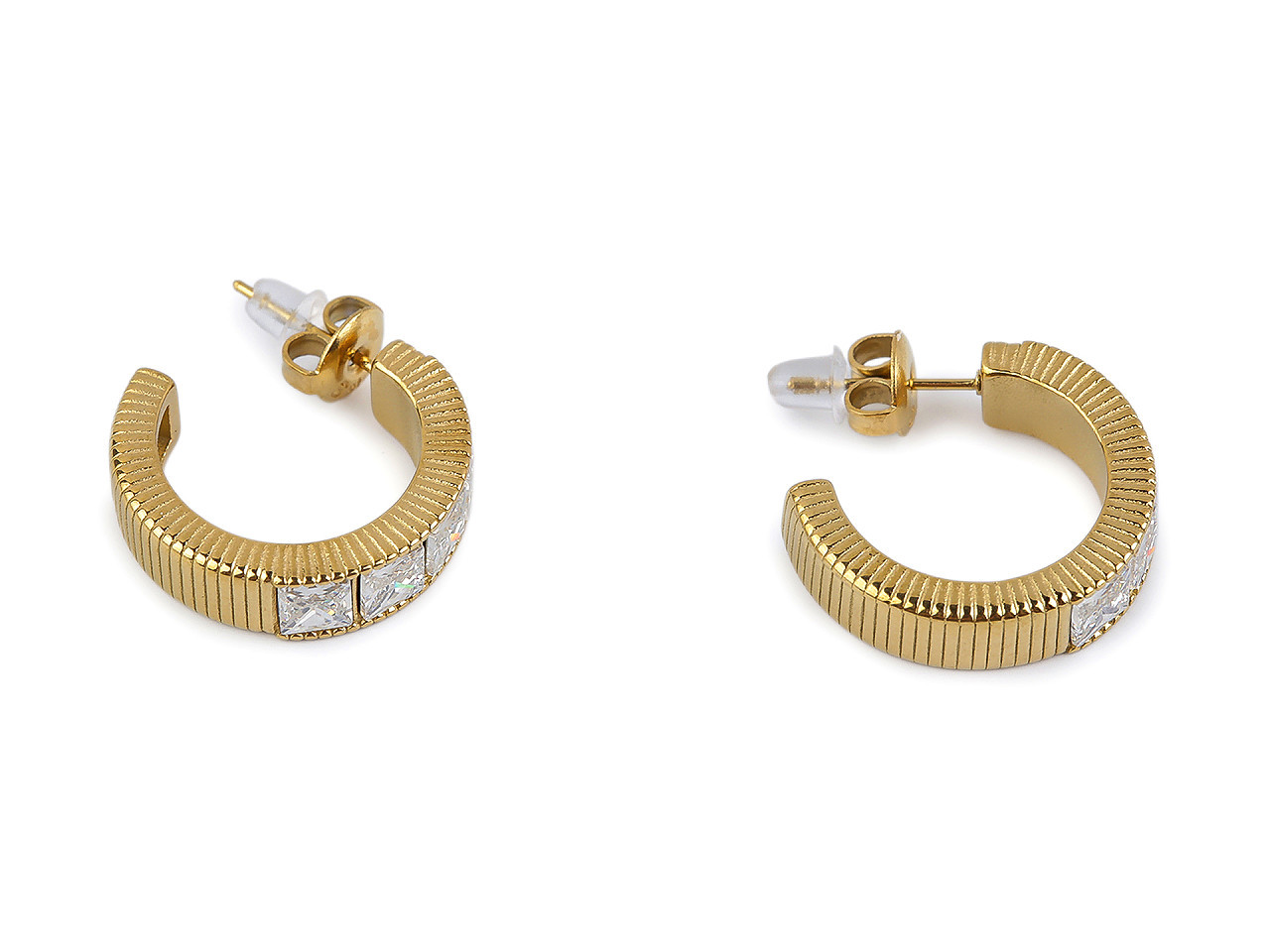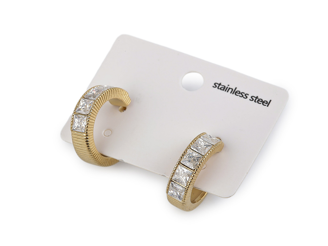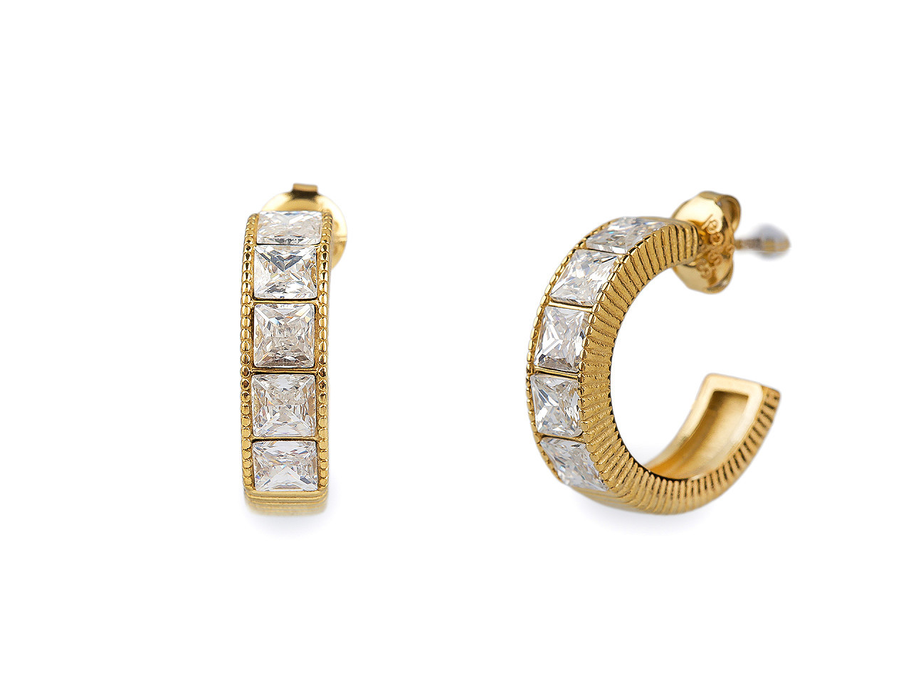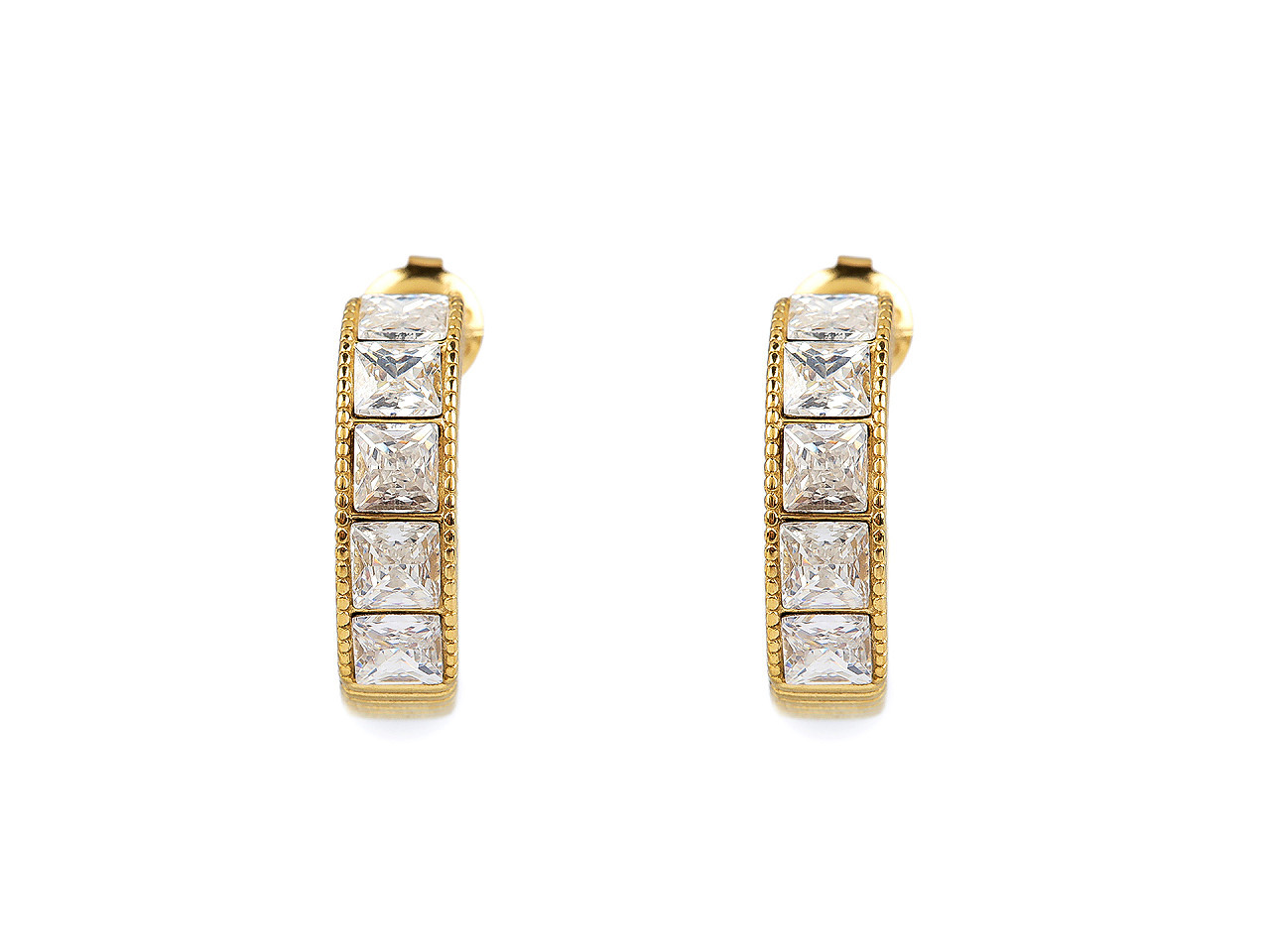Elegantní náušnice z nerezové oceli s broušenými kamínky – kruhový design pro každou příležitost. Dopřejte si šperk, který spojuje moderní minimalismus s oslnivým třpytem. Tyto náušnice z kvalitní nerezové oceli mají na přední straně jemně broušené kamínky ve tvaru čtverečků, které září při každém pohybu. Díky tvaru neuzavřeného kruhu působí lehce a stylově, a skvěle ladí jak s elegantním, tak i ležérním outfitem.