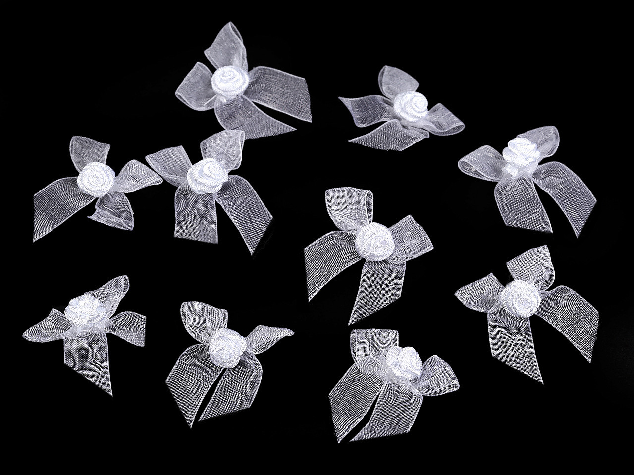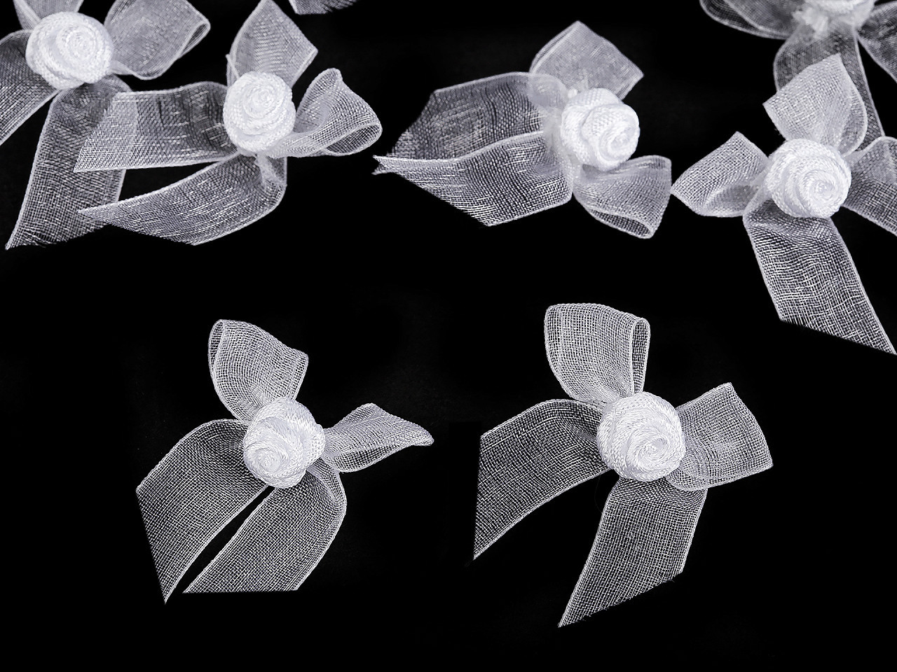 Monofilová mašlička s elegantní saténovou růžičkou. Dodáte svým výrobkům, dekoracím či oděvům jemný a romantický vzhled díky této monofilové mašličce s ozdobnou saténovou růžičkou. Perfektní pro našití na spodní prádlo, košilky, podvazky nebo jiné módní doplňky. Skvěle poslouží při výrobě svatebních vývazků, dekorací pro svatební tabule či zdobení dárků a přání. Vhodná také pro floristické aranžmá a kreativní projekty. Díky univerzálnímu designu je ideální volbou pro každého, kdo hledá detail, který dodá šmrnc a eleganci.