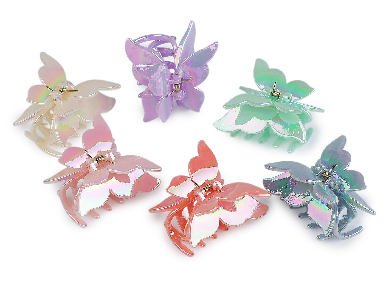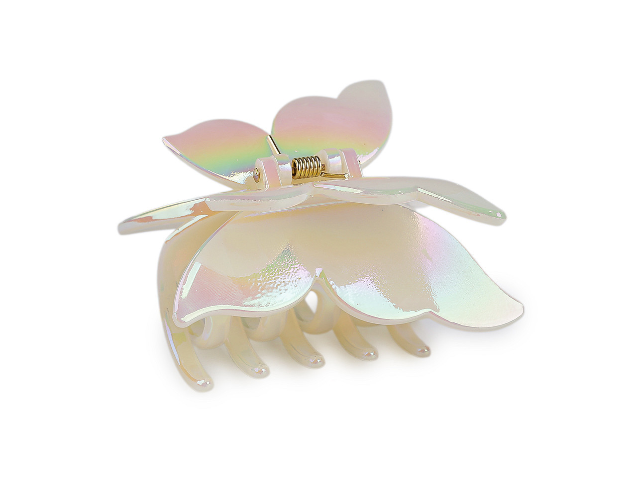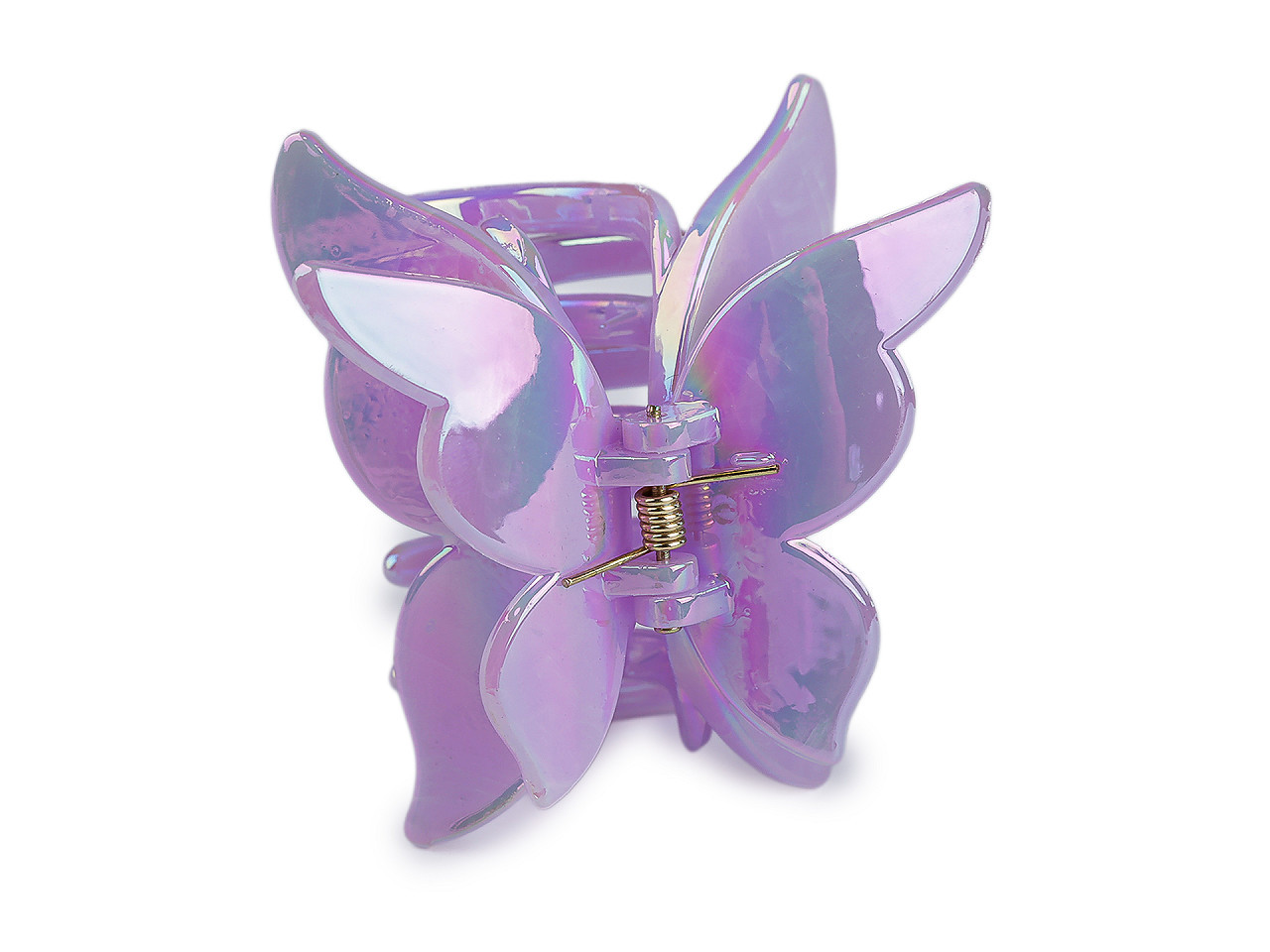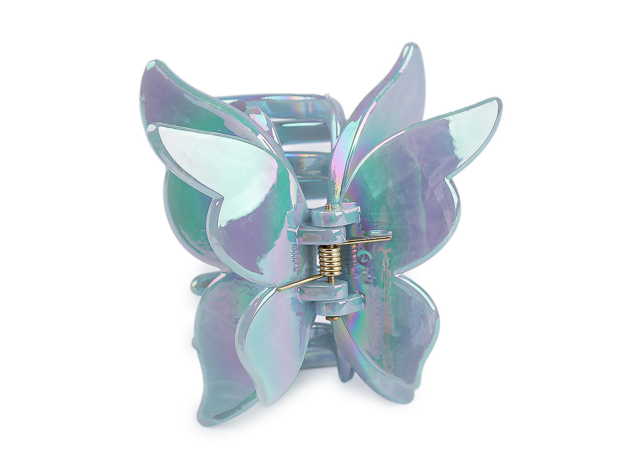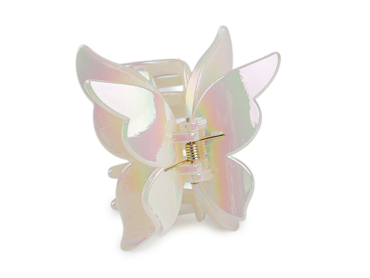 Skřipec do vlasů ve tvaru motýla s perleťovým AB efektem. Dodejte svému účesu kouzelný nádech s elegantním skřipcem do vlasů ve tvaru motýla. Tento stylový vlasový doplněk okouzlí jemným perleťovým AB efektem Aurora Borealis, který se třpytí v různých barevných odstínech podle světelných podmínek. Díky pevnému stisku a dlouhým zubům perfektně drží i husté vlasy, a to bez nutnosti použití gumičky. Ideální volba pro každodenní nošení i speciální příležitosti – během pár vteřin vykouzlíte elegantní účes, který zaujme na první pohled.