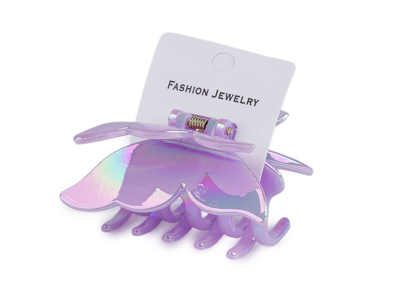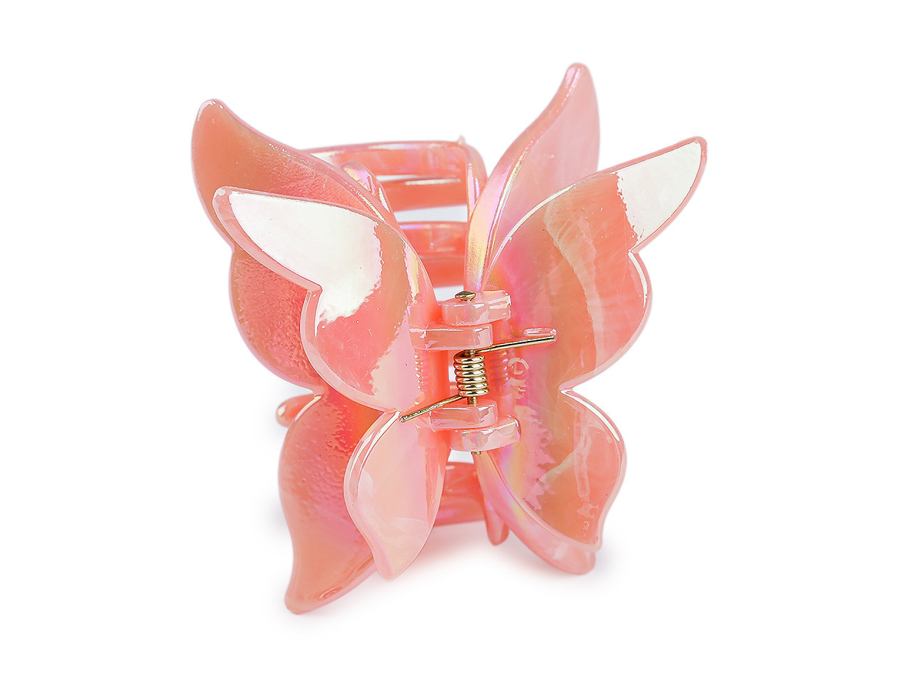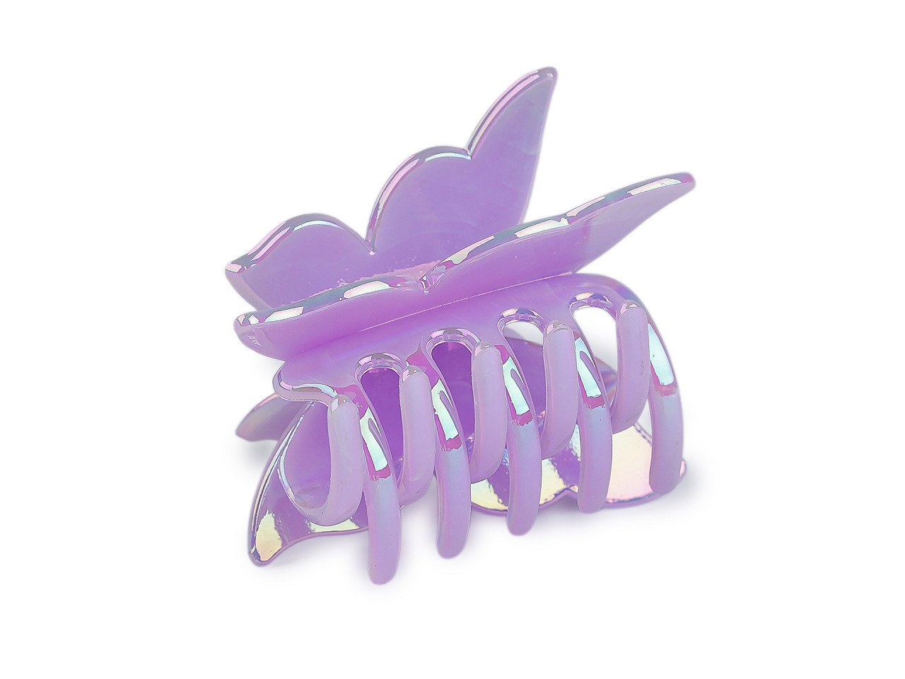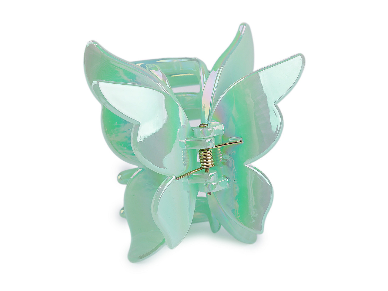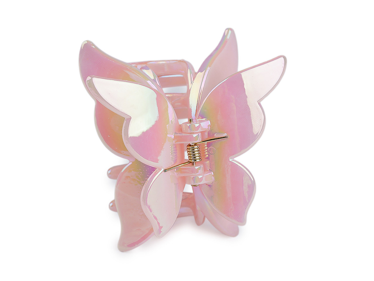 Skřipec do vlasů ve tvaru motýla s perleťovým AB efektem. Dodejte svému účesu kouzelný nádech s elegantním skřipcem do vlasů ve tvaru motýla. Tento stylový vlasový doplněk okouzlí jemným perleťovým AB efektem Aurora Borealis, který se třpytí v různých barevných odstínech podle světelných podmínek. Díky pevnému stisku a dlouhým zubům perfektně drží i husté vlasy, a to bez nutnosti použití gumičky. Ideální volba pro každodenní nošení i speciální příležitosti – během pár vteřin vykouzlíte elegantní účes, který zaujme na první pohled.