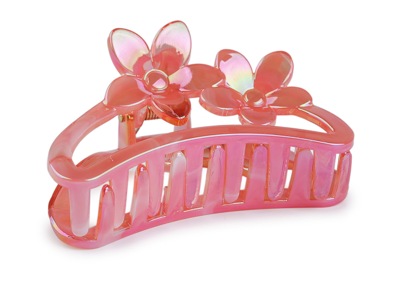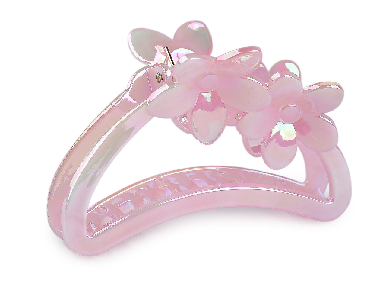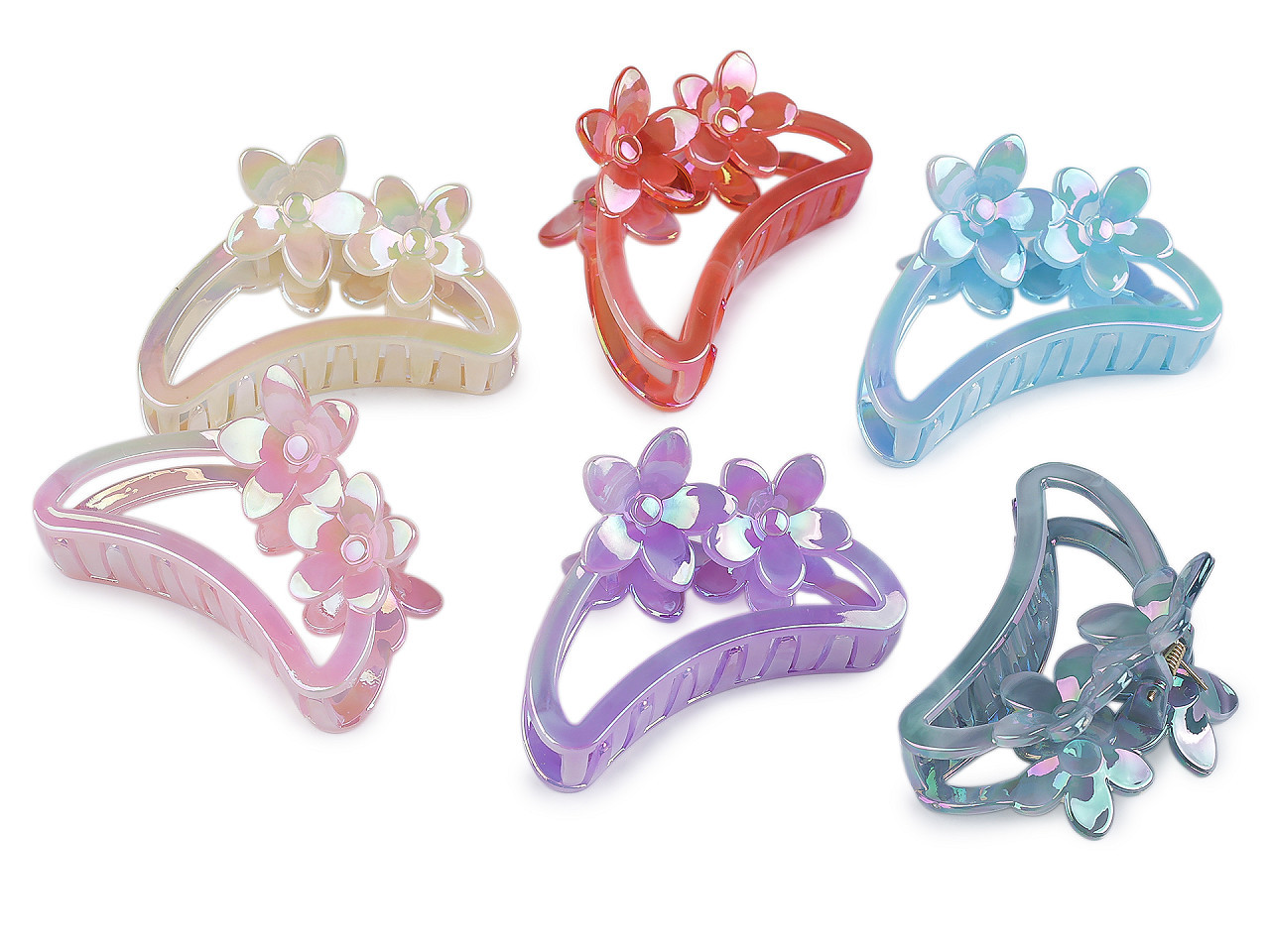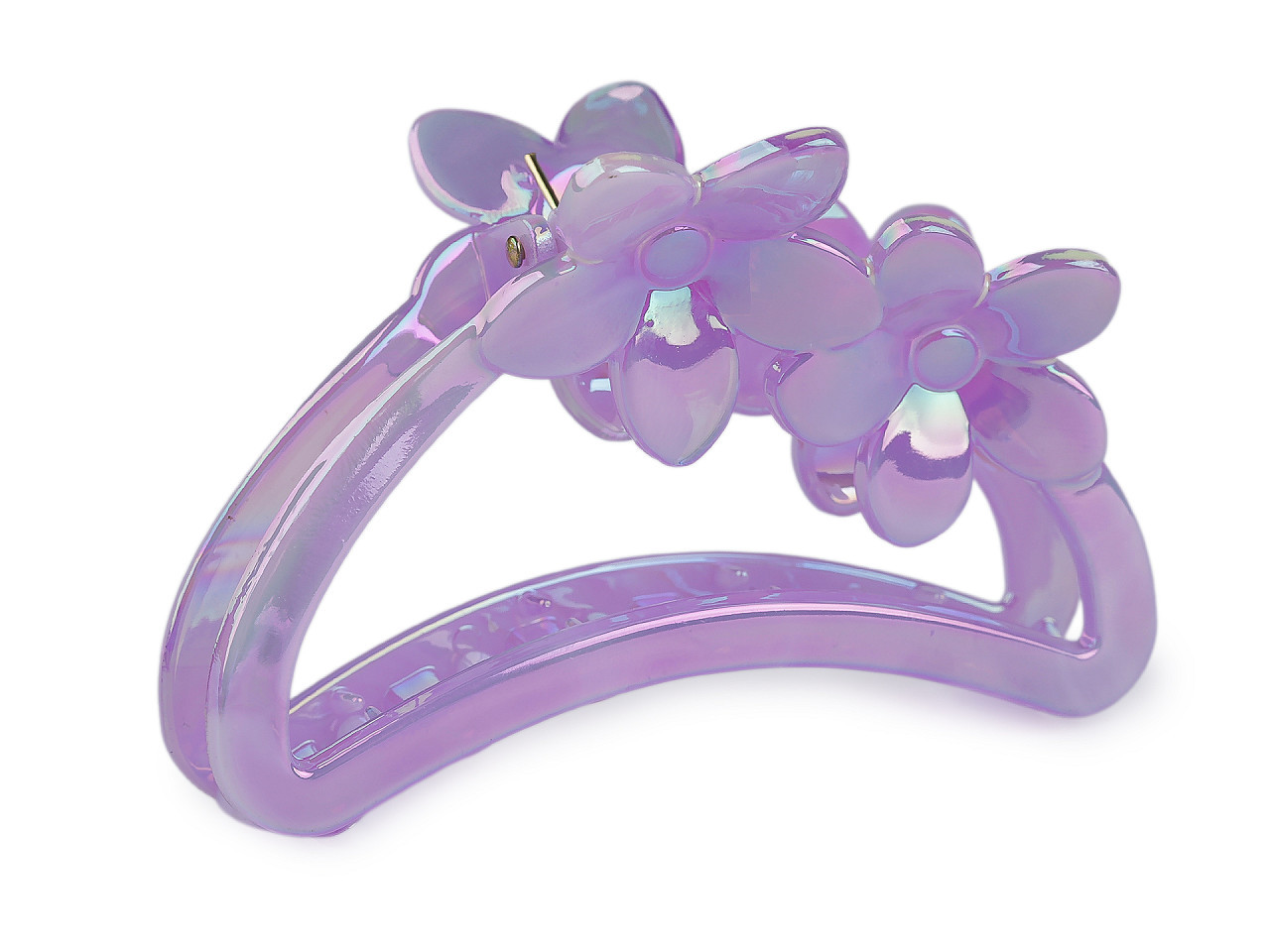 Skřipec do vlasů s květinovým motivem a perleťovým AB efektem. Dodáte svému účesu šmrnc a romantický nádech během několika vteřin. Tento elegantní skřipec do vlasů s jemnými květinami je ideální pro ženy, které preferují praktické a stylové doplňky místo klasických gumiček. Speciální povrchová úprava AB – Aurora Borealis vytváří kouzelné barevné odlesky podle světelných podmínek, takže váš účes bude vždy působit výjimečně.