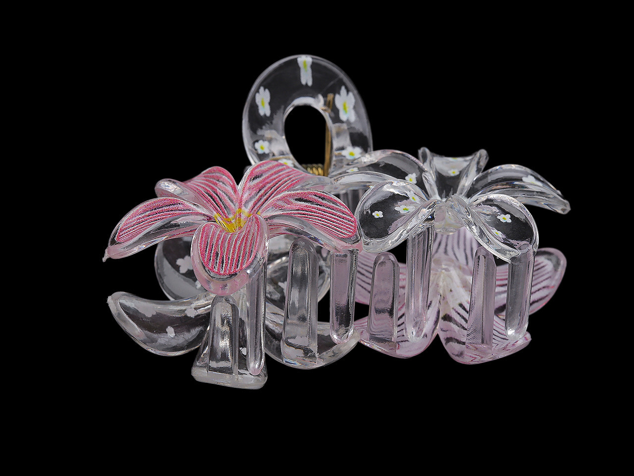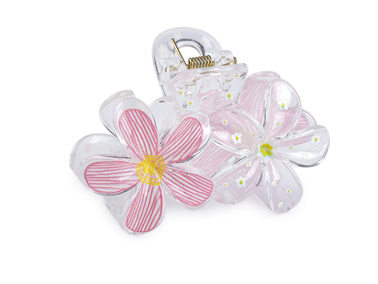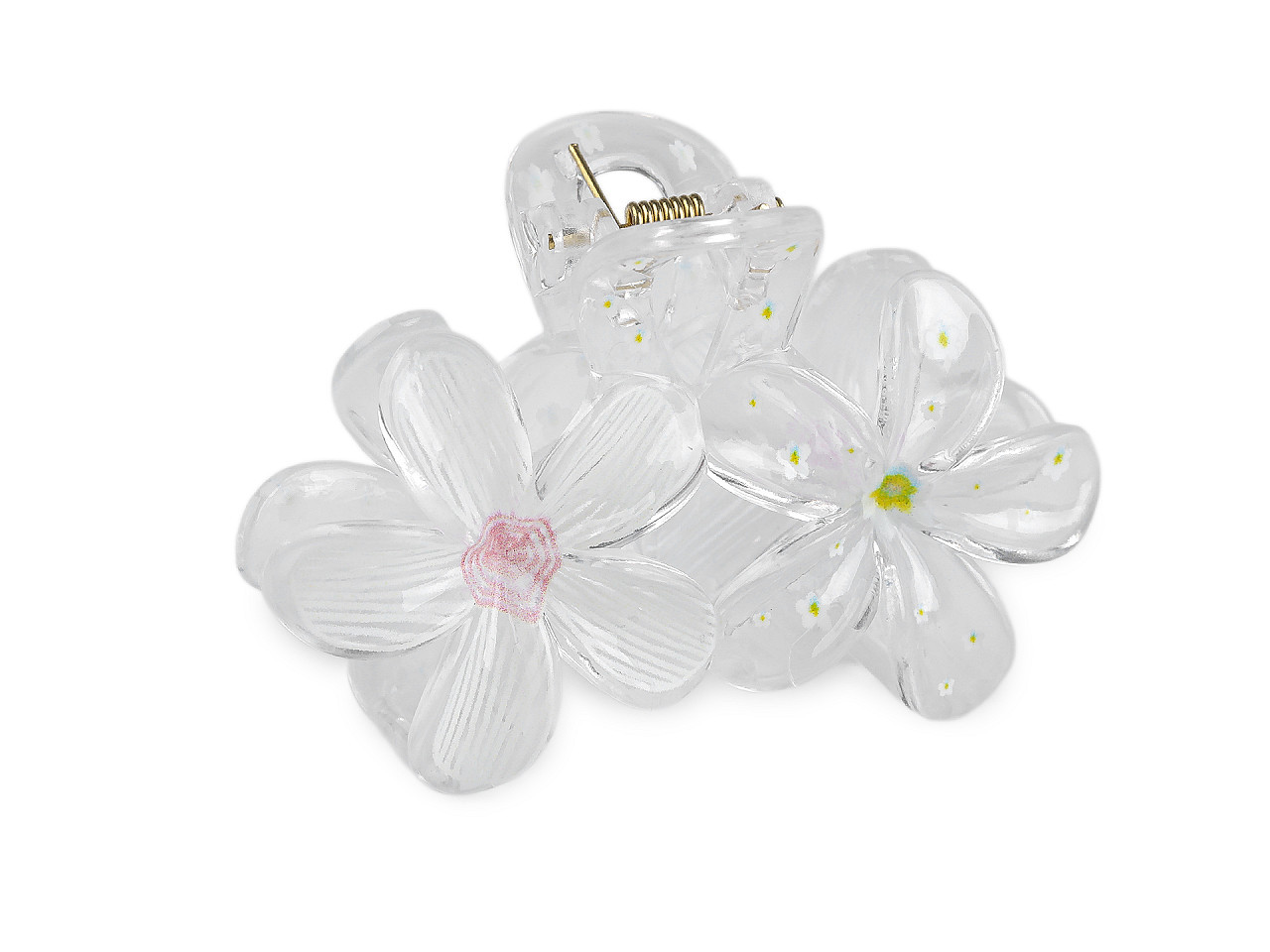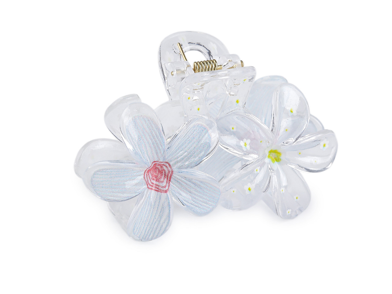 Elegantní skřipec do vlasů s květinovým motivem. Dodejte svému účesu romantický a svěží vzhled díky skřipci do vlasů s jemným květinovým potiskem. Transparentní design s barevnými květy působí stylově a hodí se pro každou příležitost – od běžného dne v práci až po večerní posezení či slavnostní události.