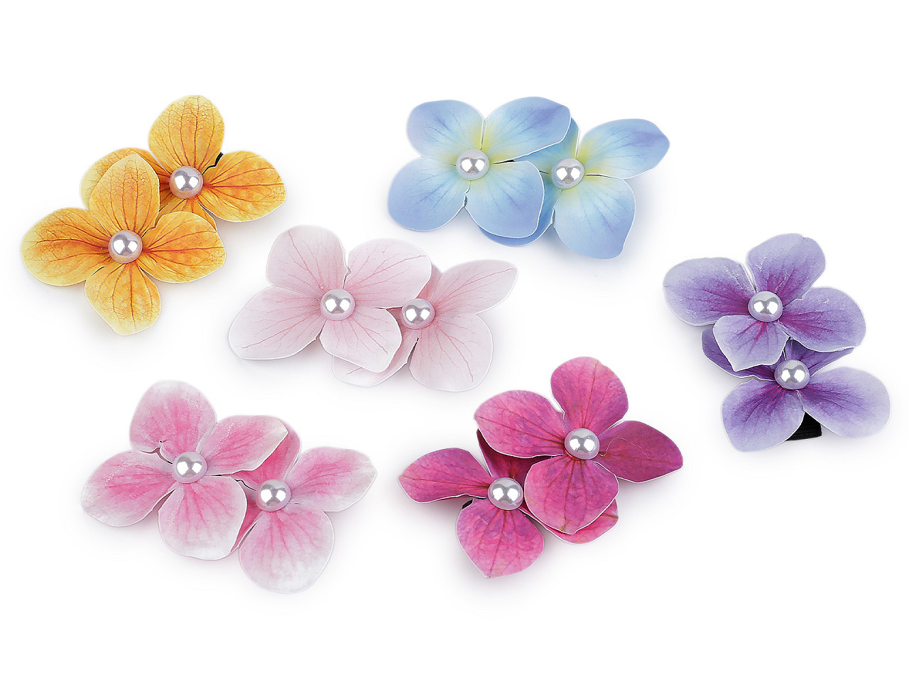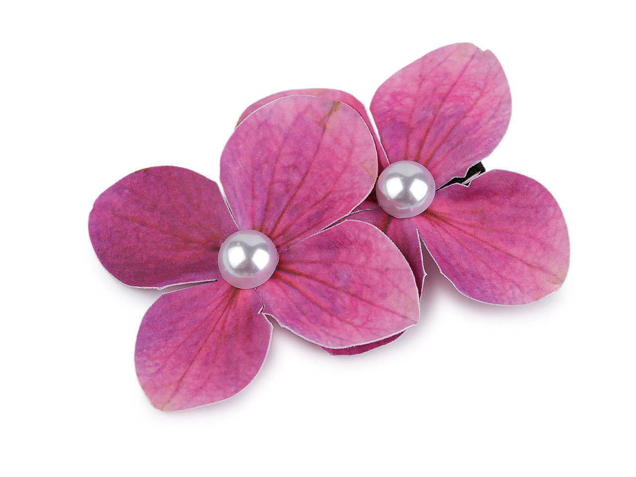 Velká spona do vlasů s květy hortenzie – elegantní doplněk pro každý účes. Dodejte svému účesu kouzlo přírodních květin s touto nádhernou sponou do vlasů. Ručně tvořené kvítky hortenzie z kvalitního, tenkého foamiranu dokonale drží tvar a mají věrně propracovaný potisk, který připomíná živé květy v jejich nejkrásnější podobě. Jemná perlička uprostřed každého kvítku dodává sponě luxusní vzhled.