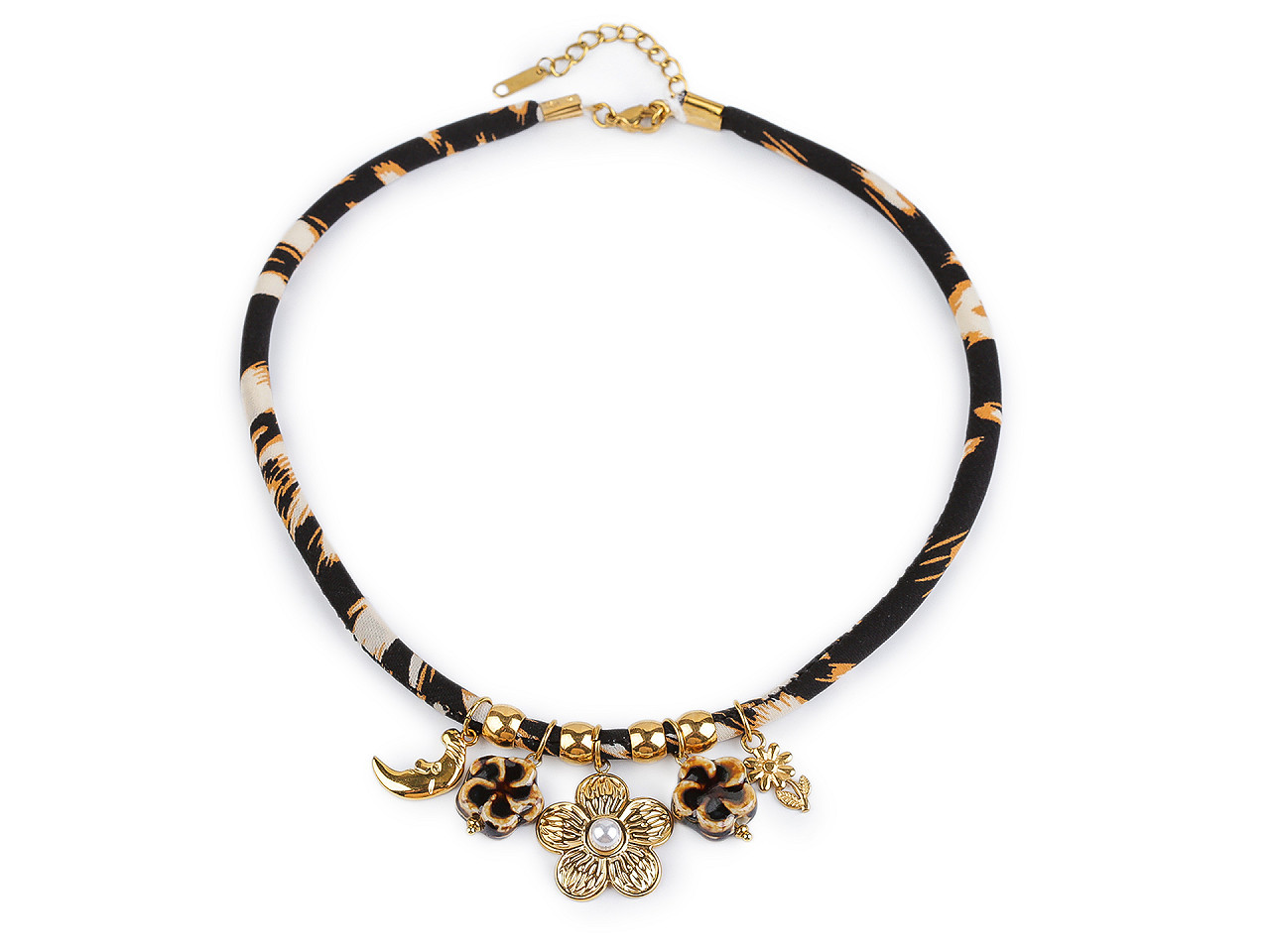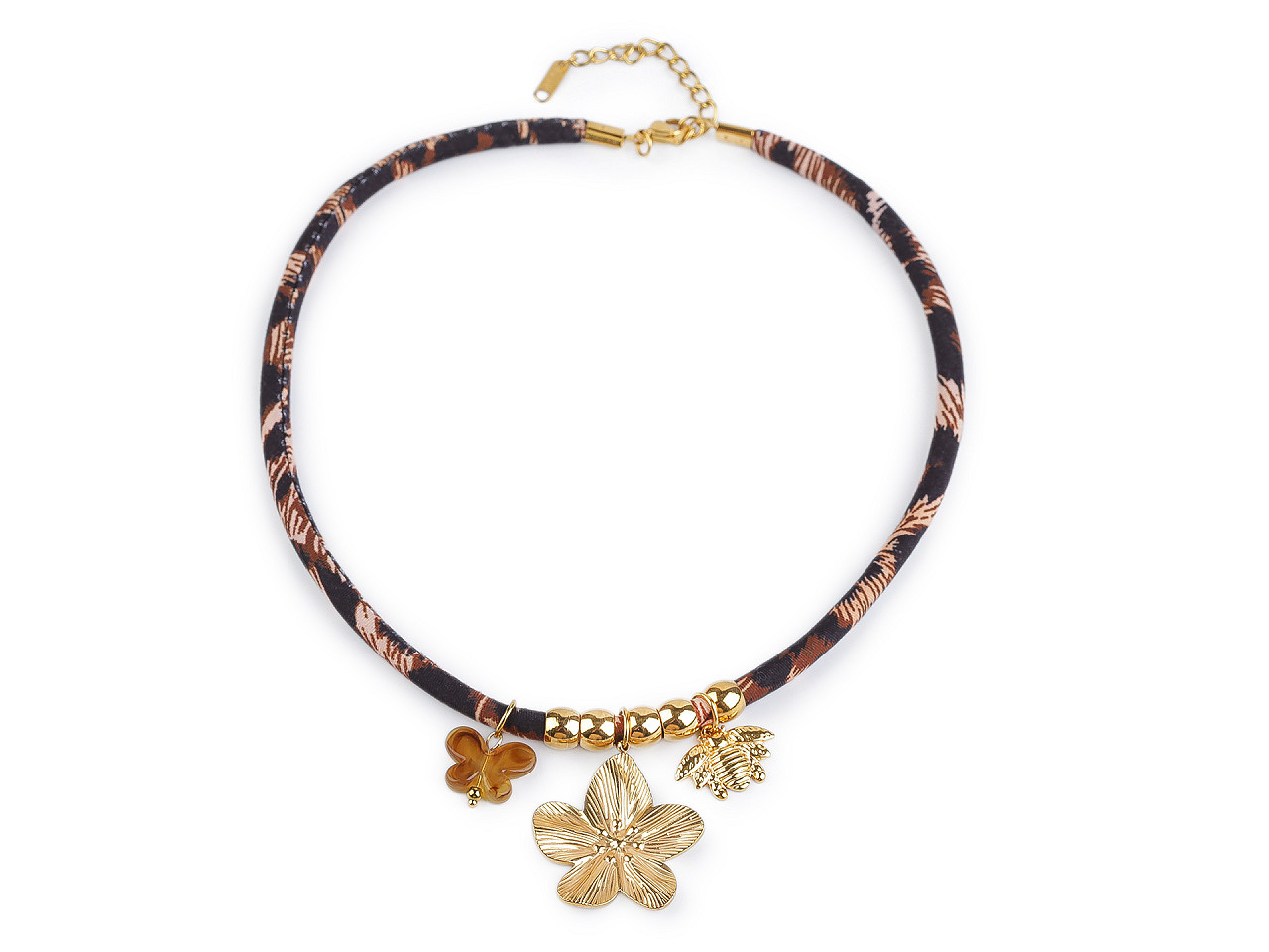 Objevte kouzlo detailně zpracovaného náhrdelníku s květy z nerezové oceli, který spojuje eleganci, odolnost a pohodlí při nošení. Jemná textilní šňůra příjemně obepne krk, zatímco lesklé kovové přívěsky ve tvaru květin dodají vašemu outfitu romantický nádech. Díky karabinkovému zapínání a prodlužovacímu řetízku snadno přizpůsobíte délku podle svých potřeb.