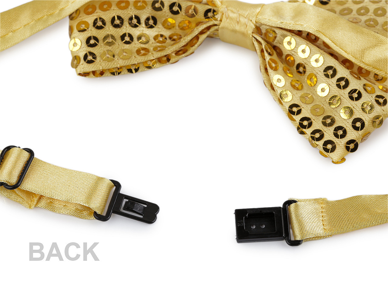 Flitry jsou pevně přišité, takže se nemusíte bát jejich opadávání. Motýlek má nastavitelnou délku až 45 cm, kterou si snadno upravíte pro dokonalé pohodlí. Plastové zapínání zajišťuje jednoduché a rychlé nasazení.