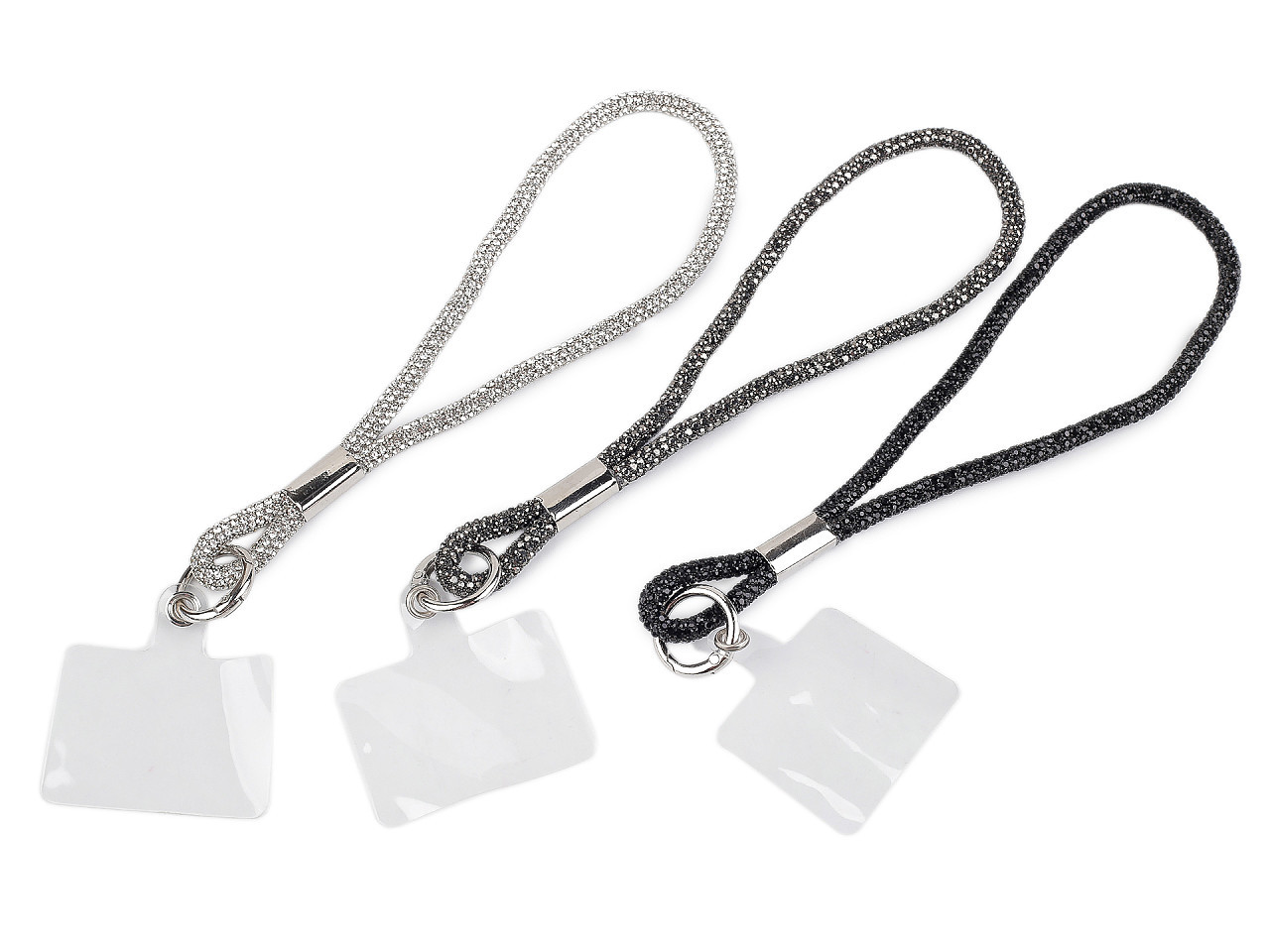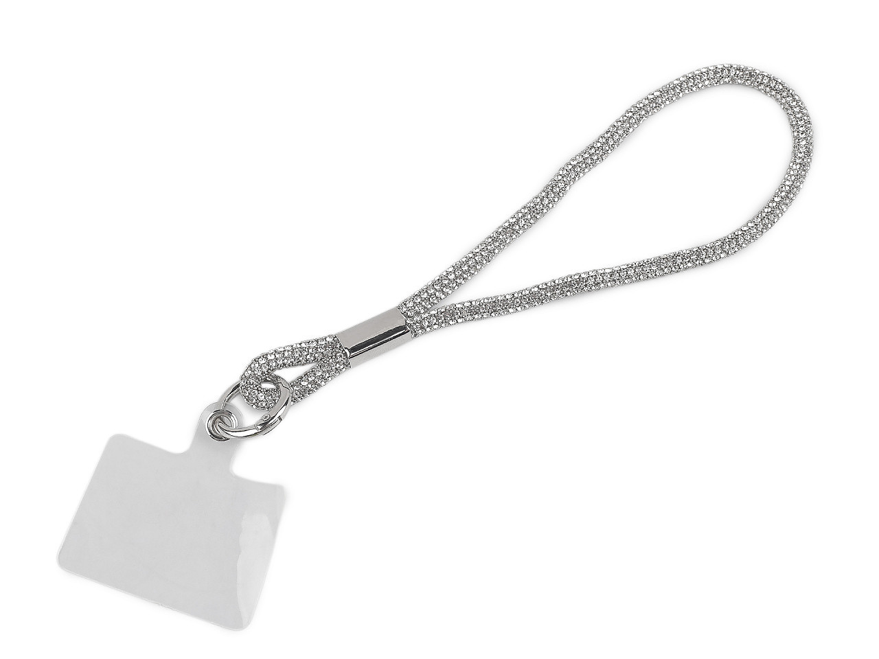 Kamínkový přívěsek – poutko na mobilní telefon nebo klíče. Dodejte svému telefonu či klíčům elegantní lesk díky stylovému kamínkovému poutku s plastovou vložkou. Jemné broušené kamínky vytváří originální design, který zaujme na první pohled. Praktická plastová vložka (4 × 5,5 cm) se snadno umístí pod kryt libovolného mobilního telefonu a zajistí pevné uchycení.
