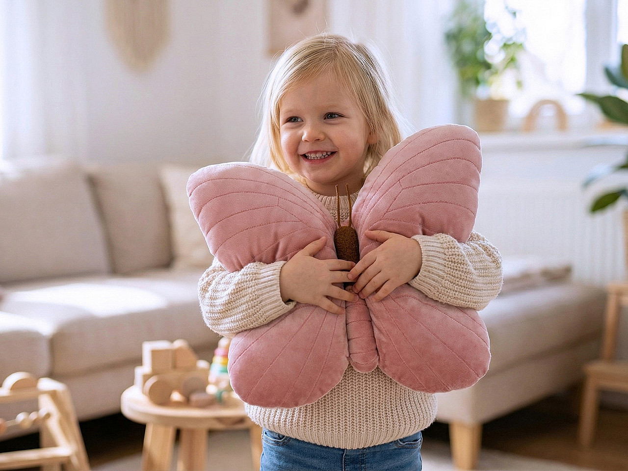 Dekorační polštář motýl – sametový designový doplněk pro váš domov. Vneste do svého interiéru jemnost a eleganci s naším dekoračním polštářem ve tvaru motýla. Tento jedinečný kousek je vyroben z hebkého sametu, který působí luxusně a je příjemný na dotek. Přední strana je ozdobena vyšívanými detaily křídel a doplněna tykadly z kvalitní eko kůže, zadní strana má hladký povrch pro maximální pohodlí.