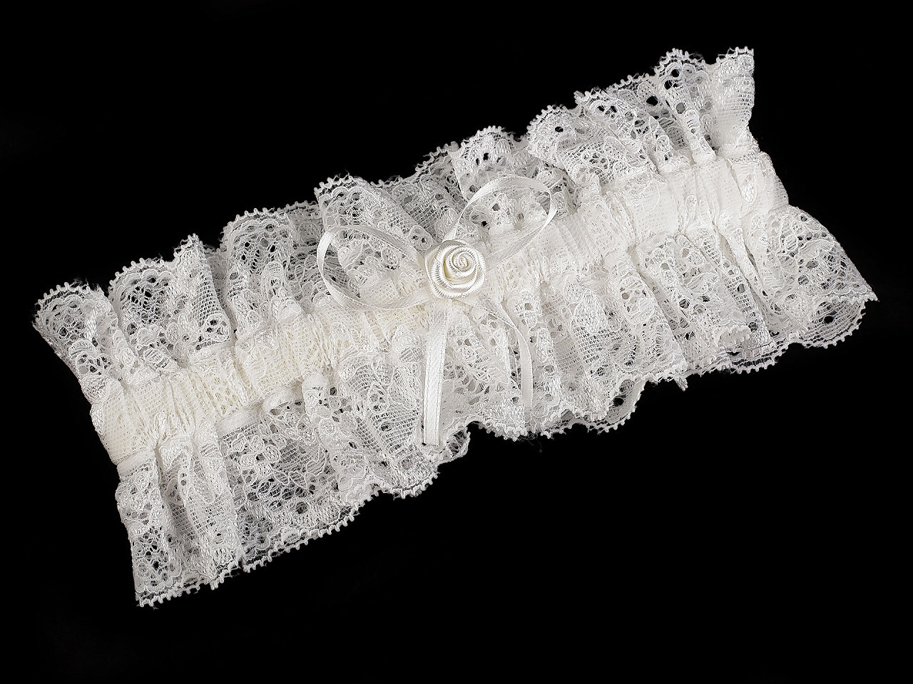 Krajkový svatební podvazek – romantický doplněk pro nevěstu. Dodejte svému svatebnímu dni nádech elegance a tradice s tímto luxusním krajkovým svatebním podvazkem. Jemná krajka v kombinaci s kvalitním saténem zajišťuje pohodlné nošení po celý den, zatímco saténová růžička s mašlí dodává podvazku jedinečný půvab.