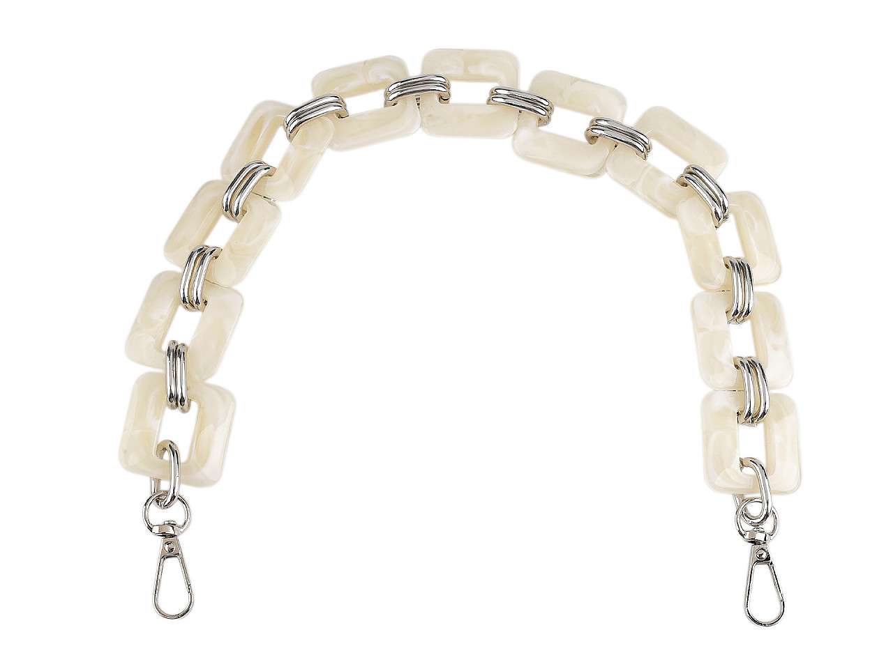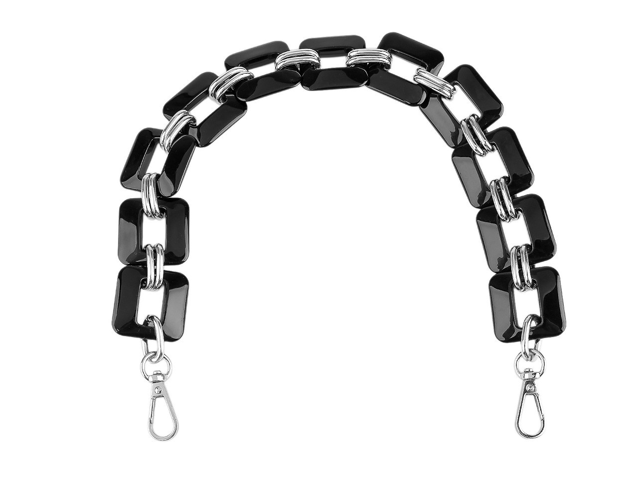 Designový řetěz na kabelku s karabinami – stylové ucho i módní ozdoba. Dodejte své kabelce jedinečný vzhled s tímto elegantním designovým řetězem. Tento výrazný módní doplněk můžete použít jako náhradu klasického ucha nebo jako originální ozdobu, která přitáhne pozornost. Díky praktickým karabinám jej snadno a rychle připevníte k jakékoli kabelce. Řetěz je ideální pro ty, kteří chtějí spojit styl, funkčnost a originalitu v jednom módním detailu.
