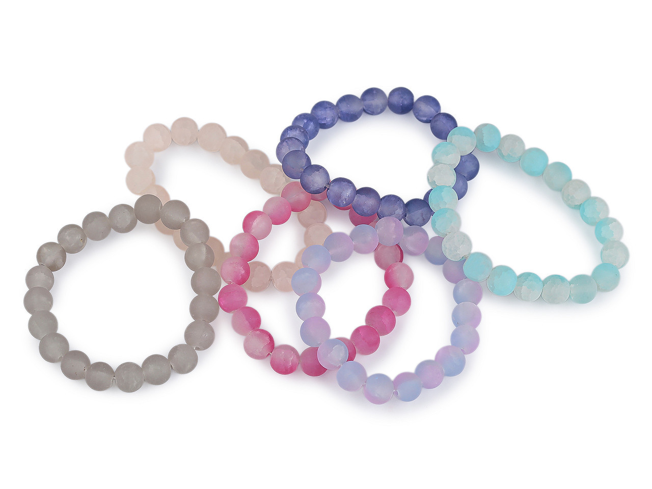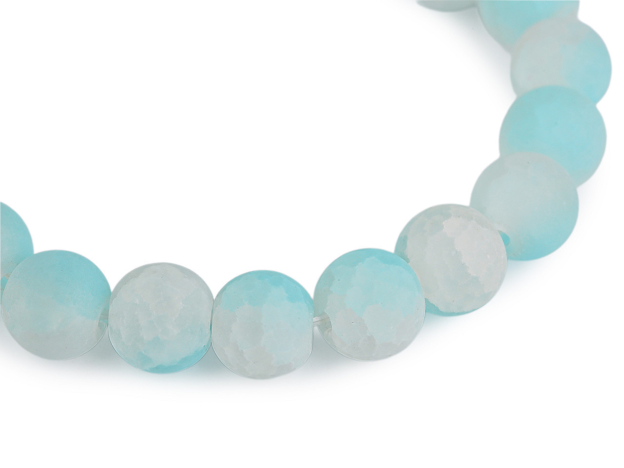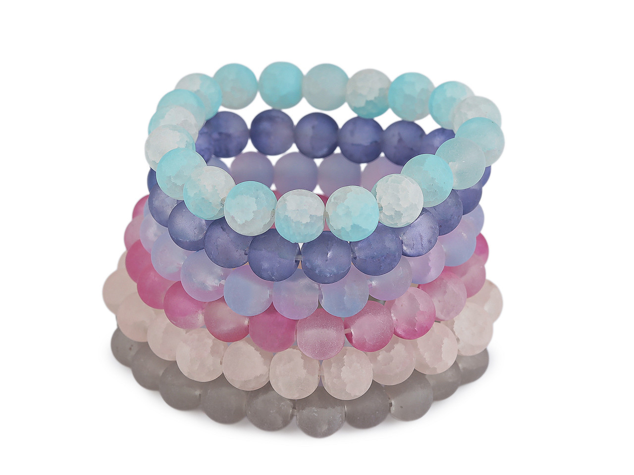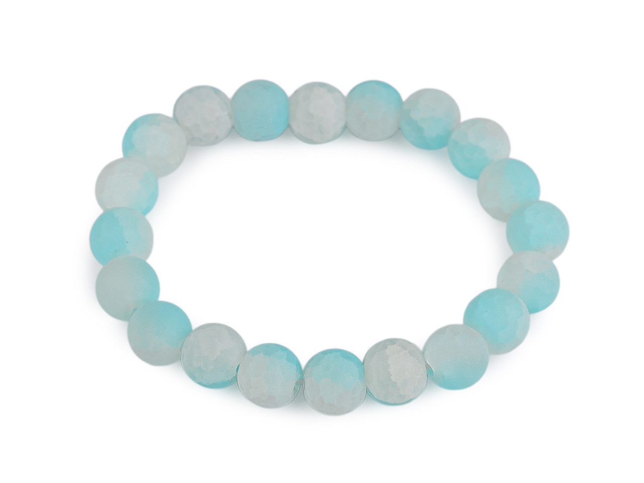 Elegantní pružný náramek ze skleněných korálků s ledovým efektem. Dopřejte si šperk, který podtrhne váš styl. Tento pružný náramek je vyroben z kvalitních skleněných transparentních korálků s originální úpravou ledového efektu a jemným popraskaným žilkováním uvnitř. Díky elastickému provedení má univerzální velikost, která se přizpůsobí každé ruce – pohodlně a bez zapínání.