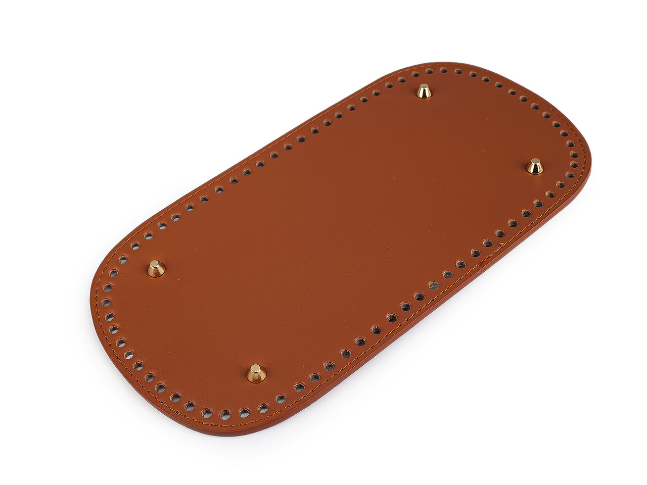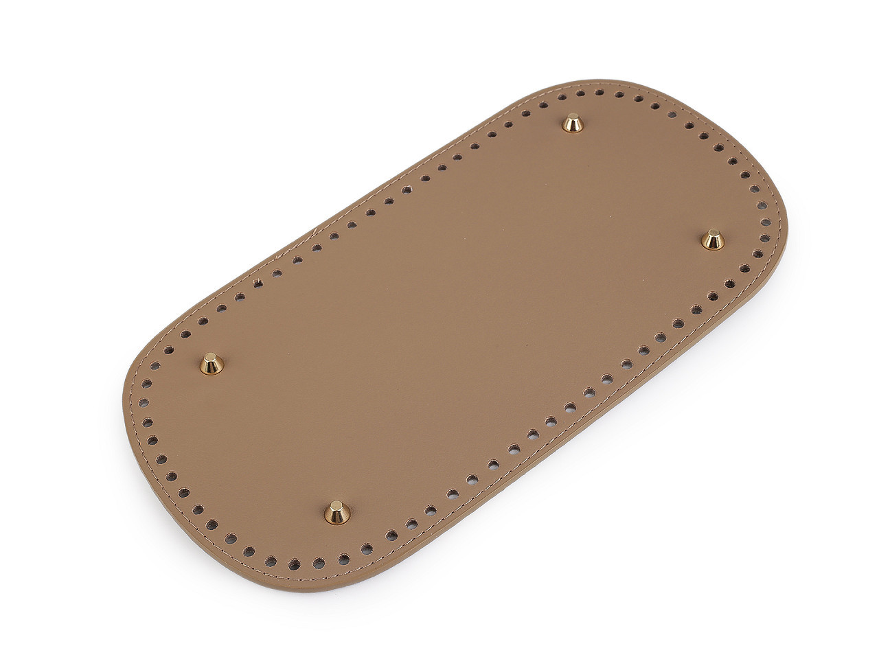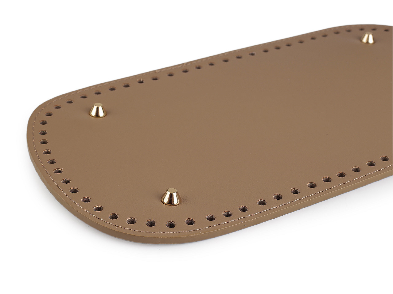 Praktické dno na kabelku s kovovými nožičkami z kvalitní eko kůže je ideální pro výrobu kabelek, tašek i batohů. Díky malým kruhovým otvorům (Ø 5 mm) a celkovému počtu 76 děr je montáž snadná a přesná – perfektně se hodí pro háčkované i šité projekty. Pevná konstrukce s prošitím poskytuje nejen estetický vzhled, ale i dlouhou životnost. Kovové nožičky (výška 6 mm) chrání spodní část kabelky před opotřebením a zároveň dodávají stabilitu.