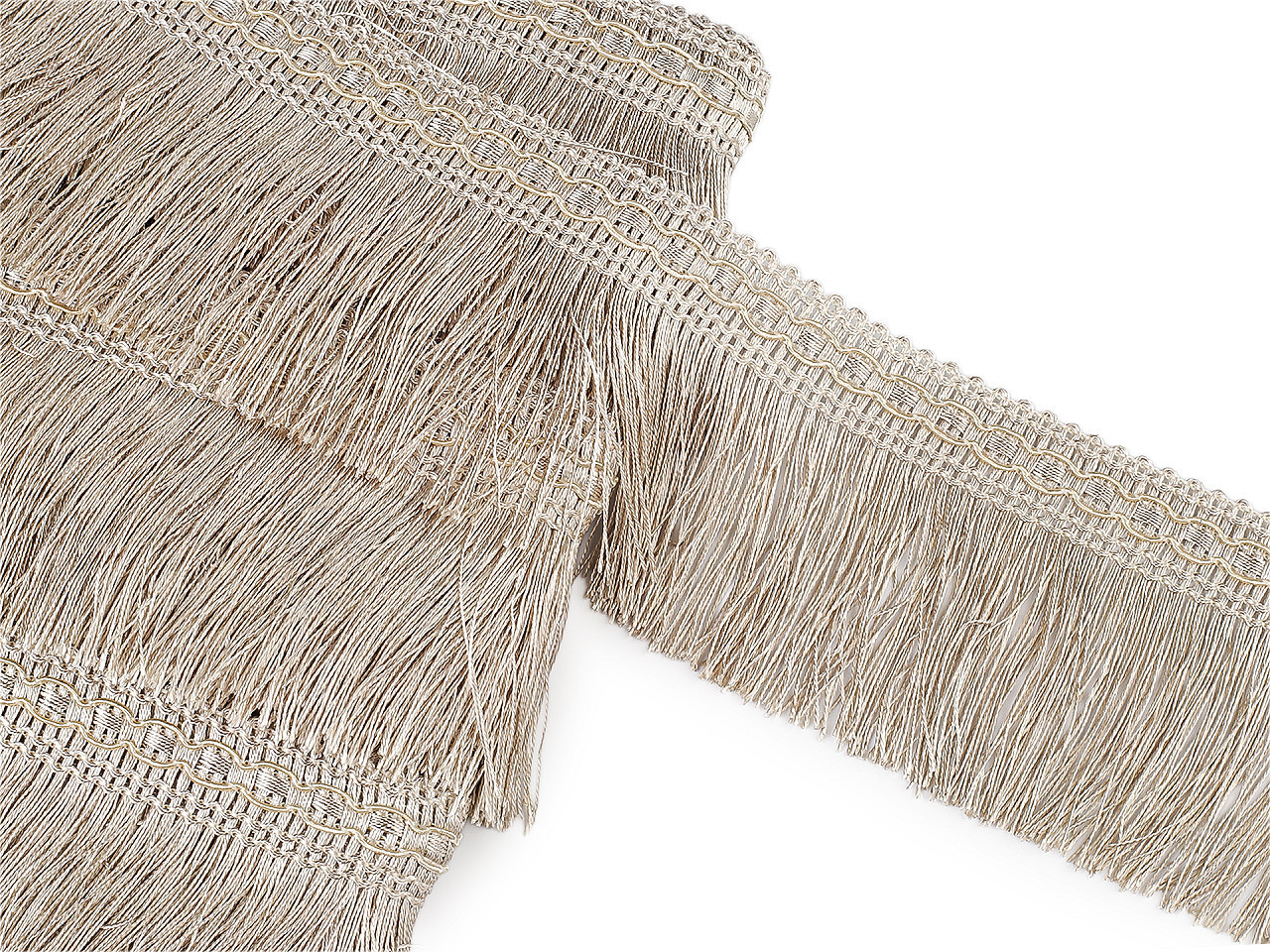 Dodajte svému interiéru luxusní nádech pomocí kvalitního prýmku s třásněmi. Tento dekorativní prýmek s jemným hedvábným leskem je ideální pro ozdobení závěsů, dekoračních polštářů, křesel či jiných bytových doplňků. Lesklé třásně působí sofistikovaně a dodají každému projektu osobitý styl. Perfektní volba pro kreativní dekorace i renovace nábytku.