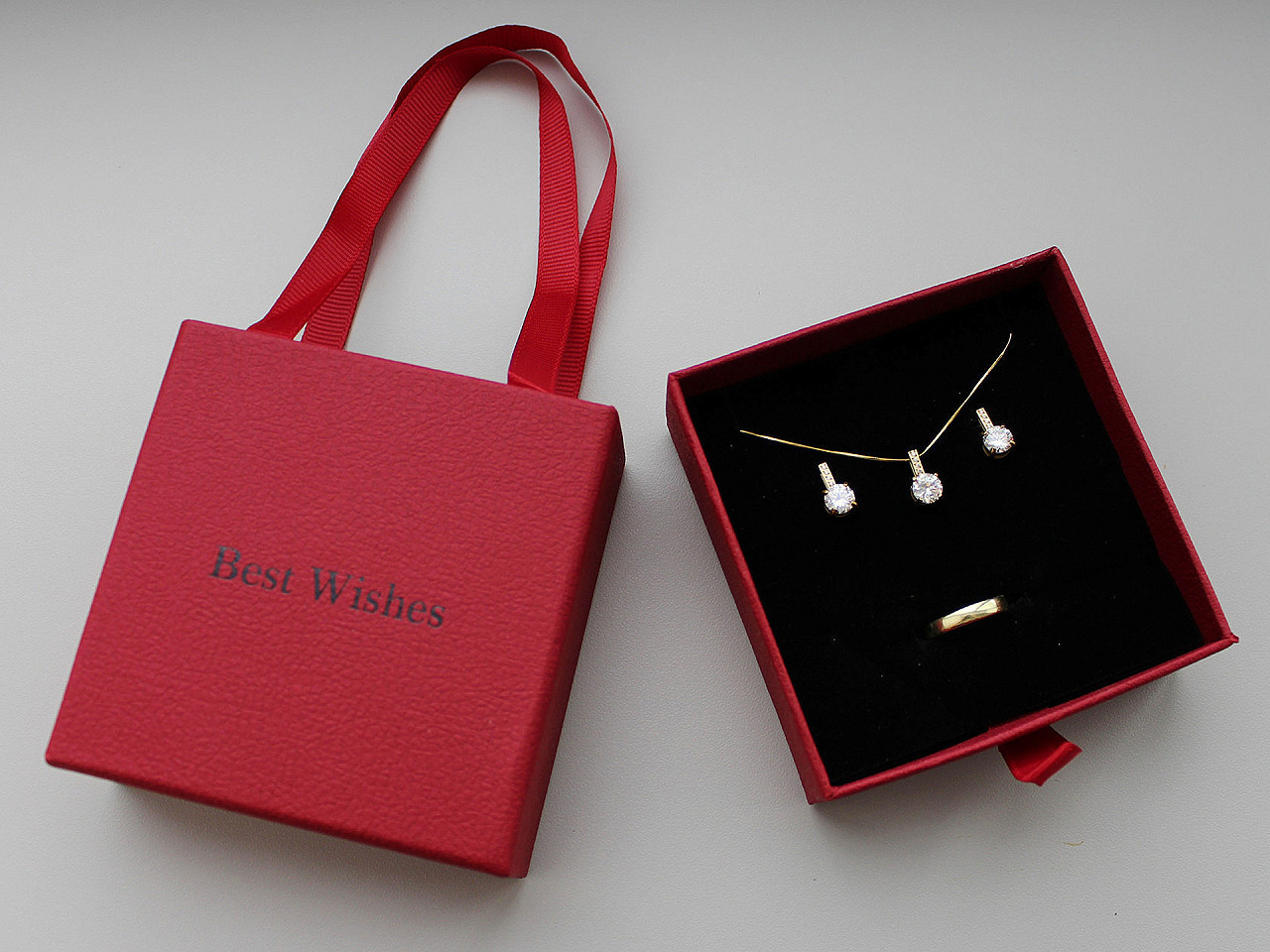 Elegantní krabička na šperky s uchem – dokonalé dárkové balení. Dodáte svým šperkům punc výjimečnosti s touto stylovou krabičkou na šperky s praktickým uchem. Je ideální pro slavnostní příležitosti – narozeniny, výročí, svatby či jiné významné události. Díky oboustrannému provedení a nápisu Best Wishes působí luxusně a přitom univerzálně.