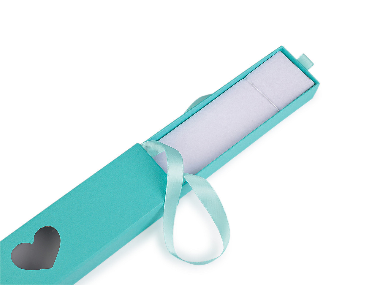 Elegantní krabička na šperky s průhledem ve tvaru srdce a saténovým uchem. Dodejte svému dárku jedinečný vzhled! Tato luxusní krabička na šperky s romantickým průhledem ve tvaru srdce je ideální pro náramky, hodinky či jiné podlouhlé dárky. Transparentní fólie odhalí obsah už při prvním pohledu, zatímco pevná konstrukce z kvalitního materiálu zajistí bezpečné uložení.