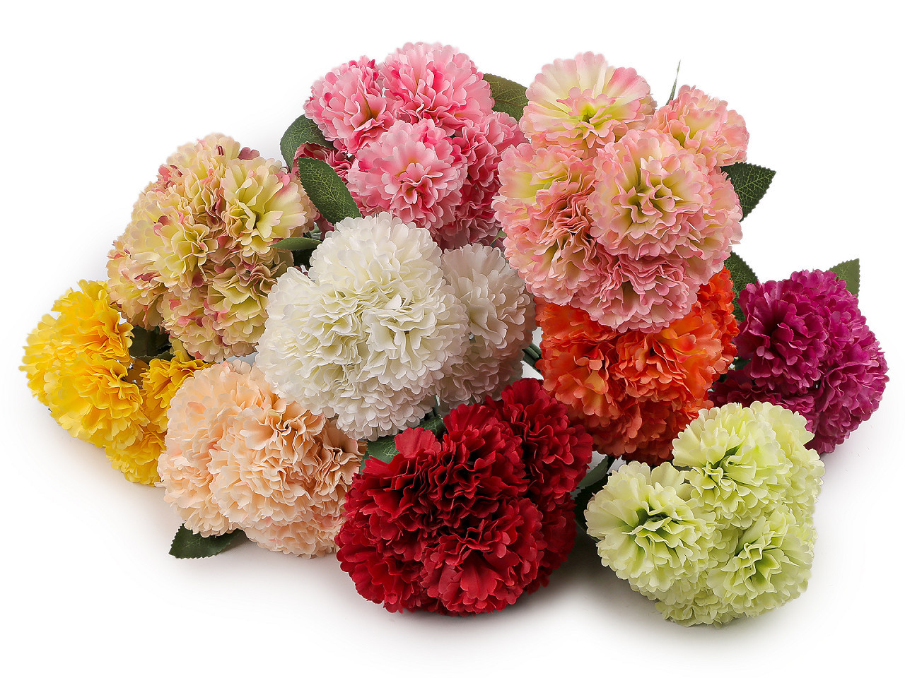 Umělá kytice mini karafiátů – 7 kusů v pevném svazku. Elegantní umělá kytice mini karafiátů je ideální volbou pro každého, kdo chce do svého domova vnést krásu květin bez nutnosti pravidelné péče. Díky realistickému provedení a detailně zpracovaným květům se skvěle hodí do vázy, květinových vazeb, dekorativních aranžmá i věnců.